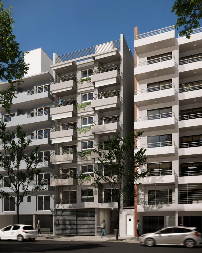 Edificio: Se compone de 13 unidades tipo semipisos de uno, tres y cuatro ambientes, a lo largo de 6 plantas y 6 cocheras en planta baja y subsuelo. Cuenta con un parrillero en la terraza y solarium.