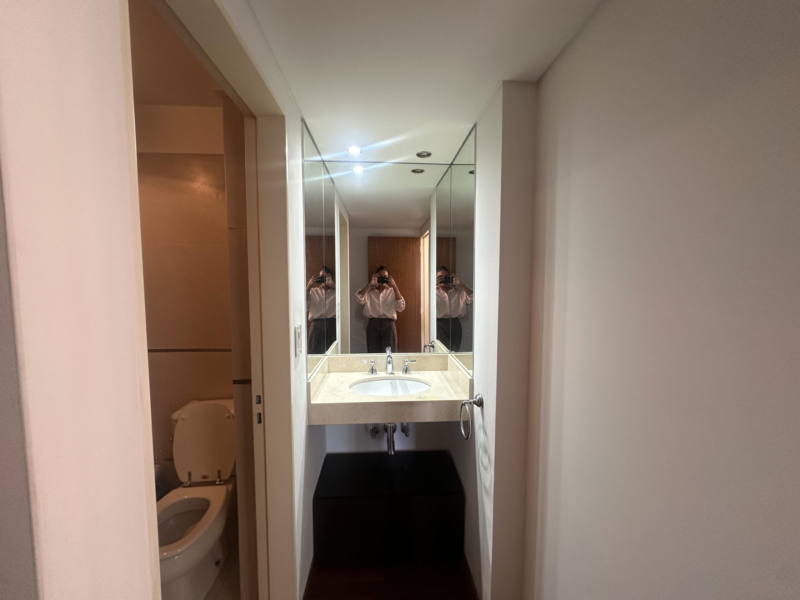 Ingresando por la entrada de servicio nos encontramos con una cocina comedor de grandes dimensiones y un lavadero que da al contrafrente. El living tiene salida al balcón con vista a la Plaza Lopez. A la derecha nos encontramos con un baño completo y un pasillo donde se encuentra el íntimo.