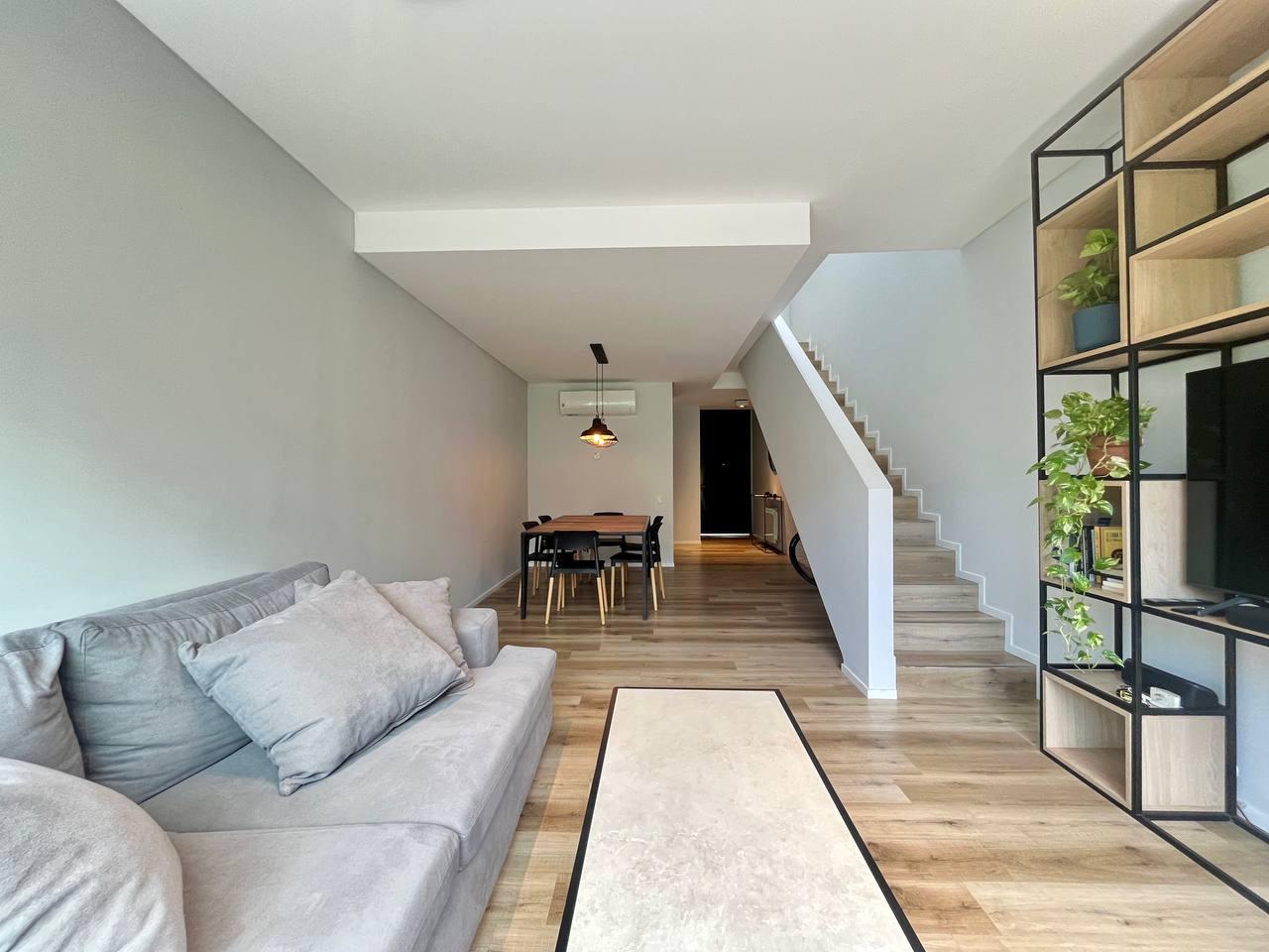 Descripción: Casa tipo dúplex en un predio de jardín parquizado. Cocina y living comedor en planta baja y dormitorios en planta alta. Cocina integrada, toilette de recepción, un baño completo, y la habitación principal en suite con el segundo baño. Posee un vestidor y ambos dormitorios cuentan con placares empotrados y puertas corredizas. Además dispone de terraza exclusiva y parrillero. Calefaccionado con radiadores y/o aires split. Ambientes muy luminosos. Con y sin vista parcial al rio. Cocheras disponibles.