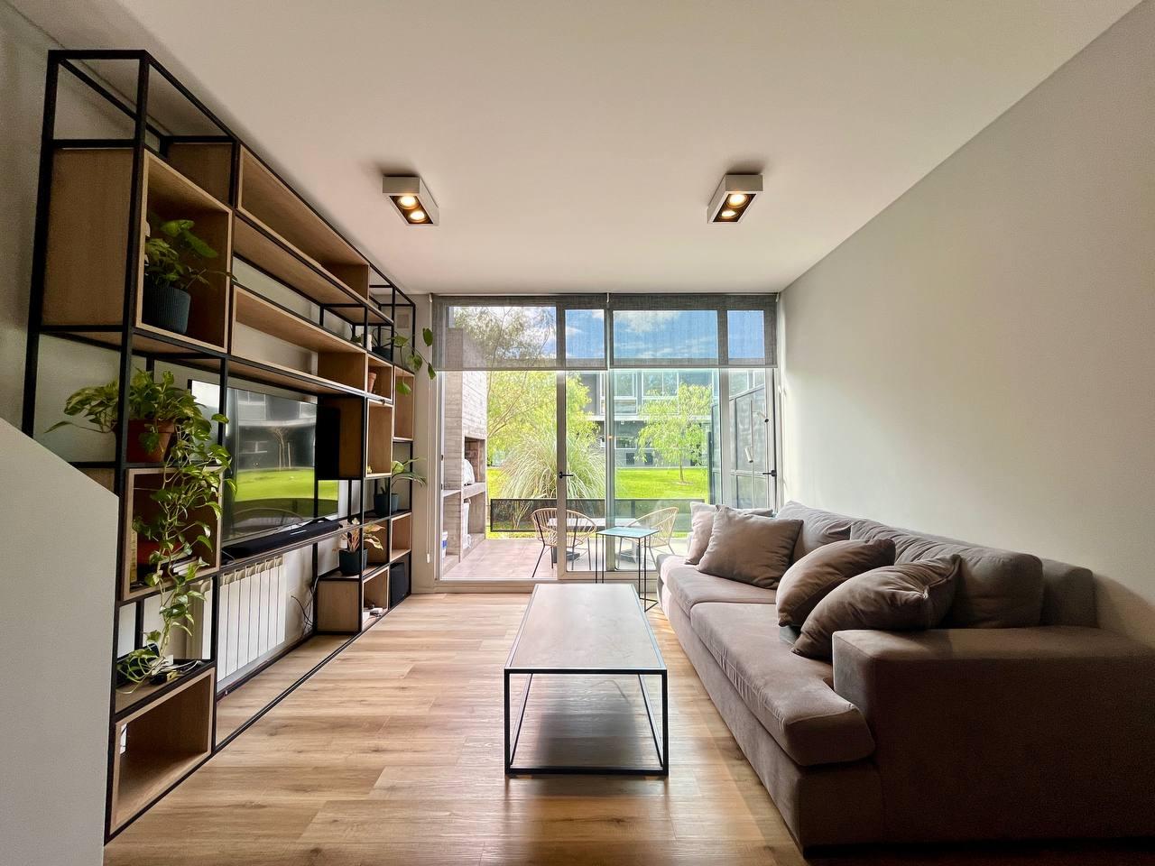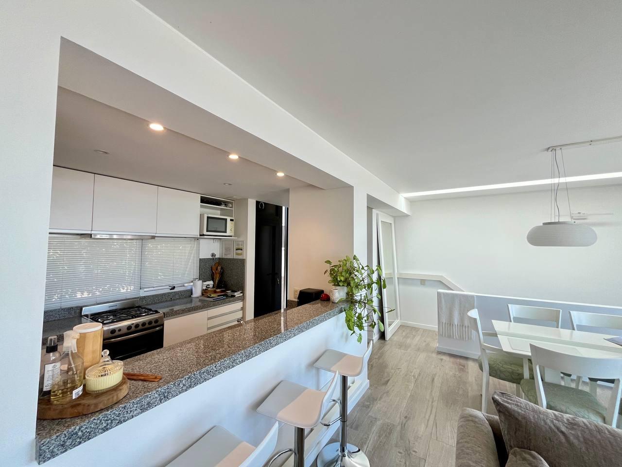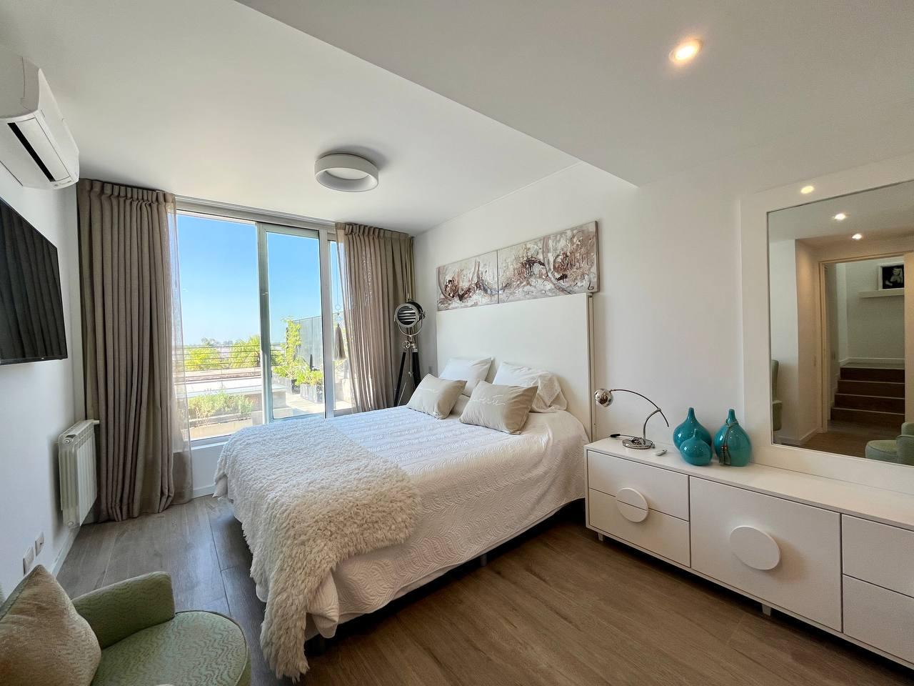 Descripción: Casa tipo dúplex en un predio de jardín parquizado. Cocina y living comedor en planta baja y dormitorios en planta alta. Cocina integrada, toilette de recepción, un baño completo, y la habitación principal en suite con el segundo baño. Posee un vestidor y ambos dormitorios cuentan con placares empotrados y puertas corredizas. Además ambas plantas disponen de terraza exclusiva y parrillero. Calefaccionado con radiadores y/o aires split. Ambientes muy luminosos. Con vista franca o parcial al rio. La unidad tiene dos cocheras.