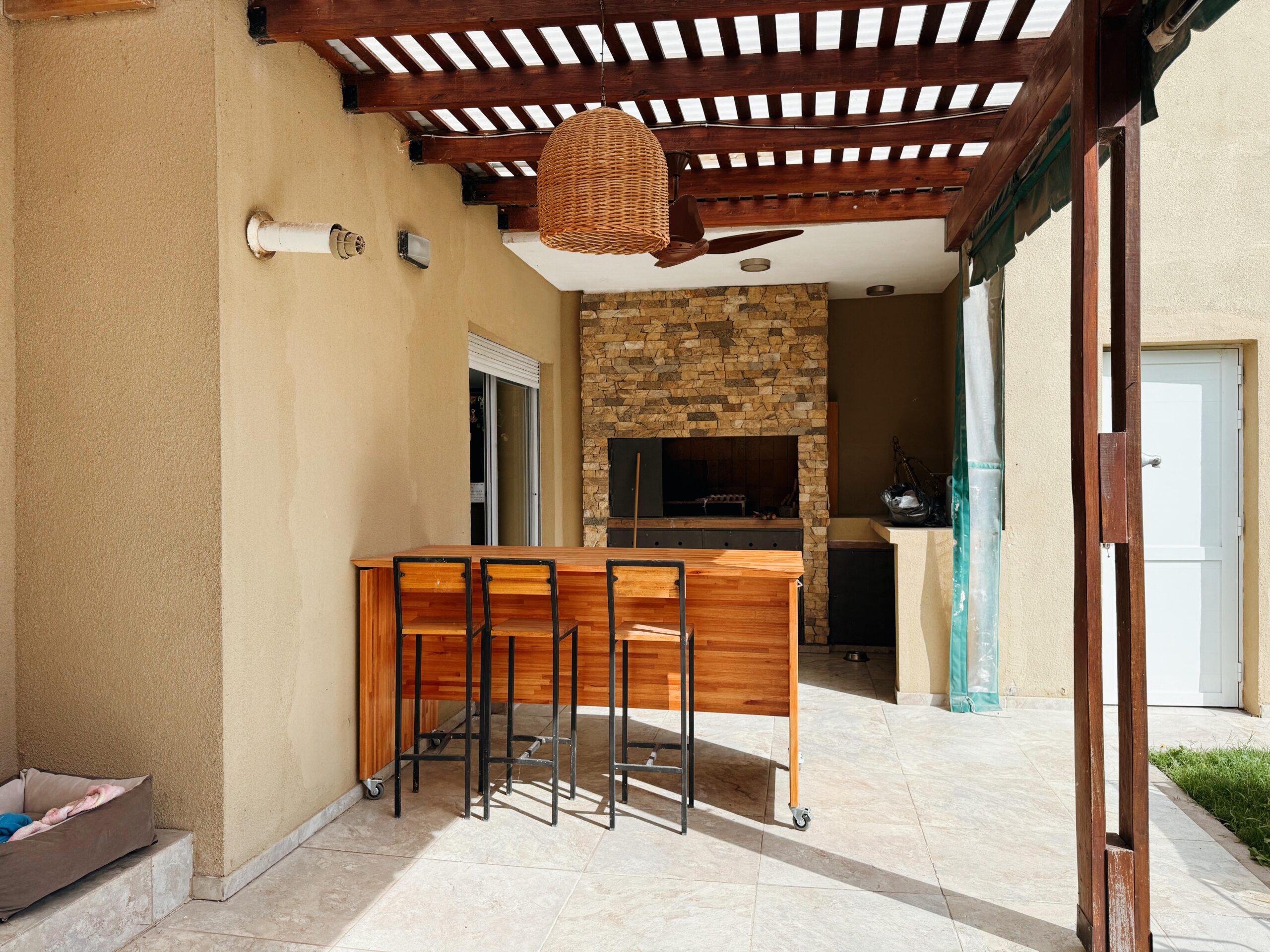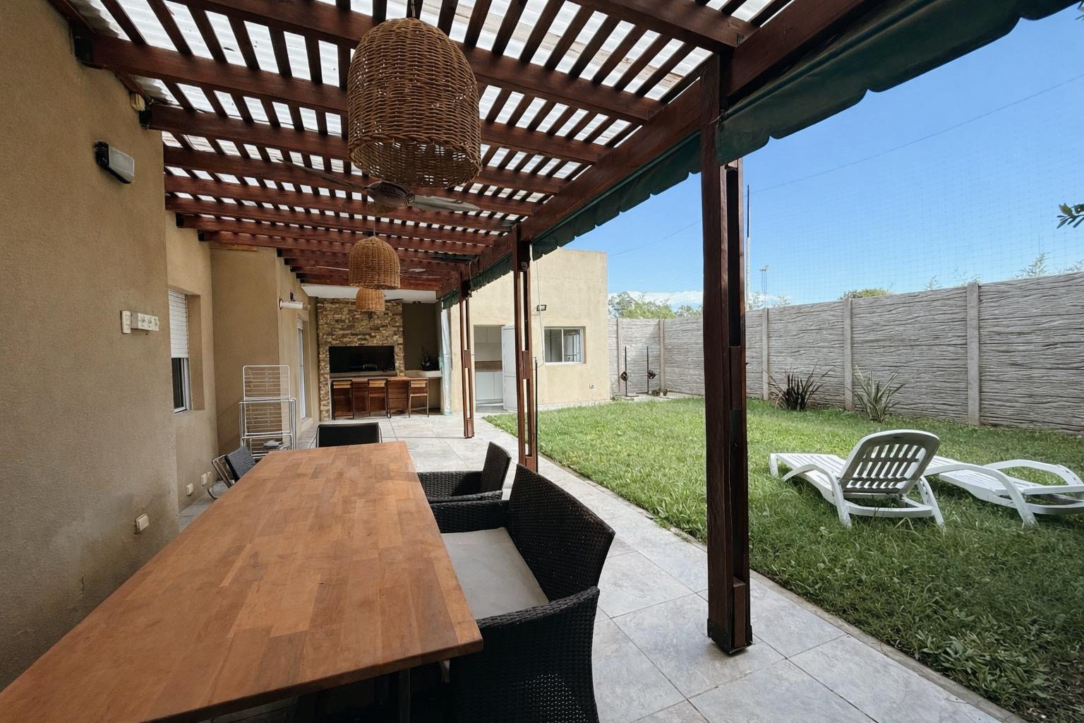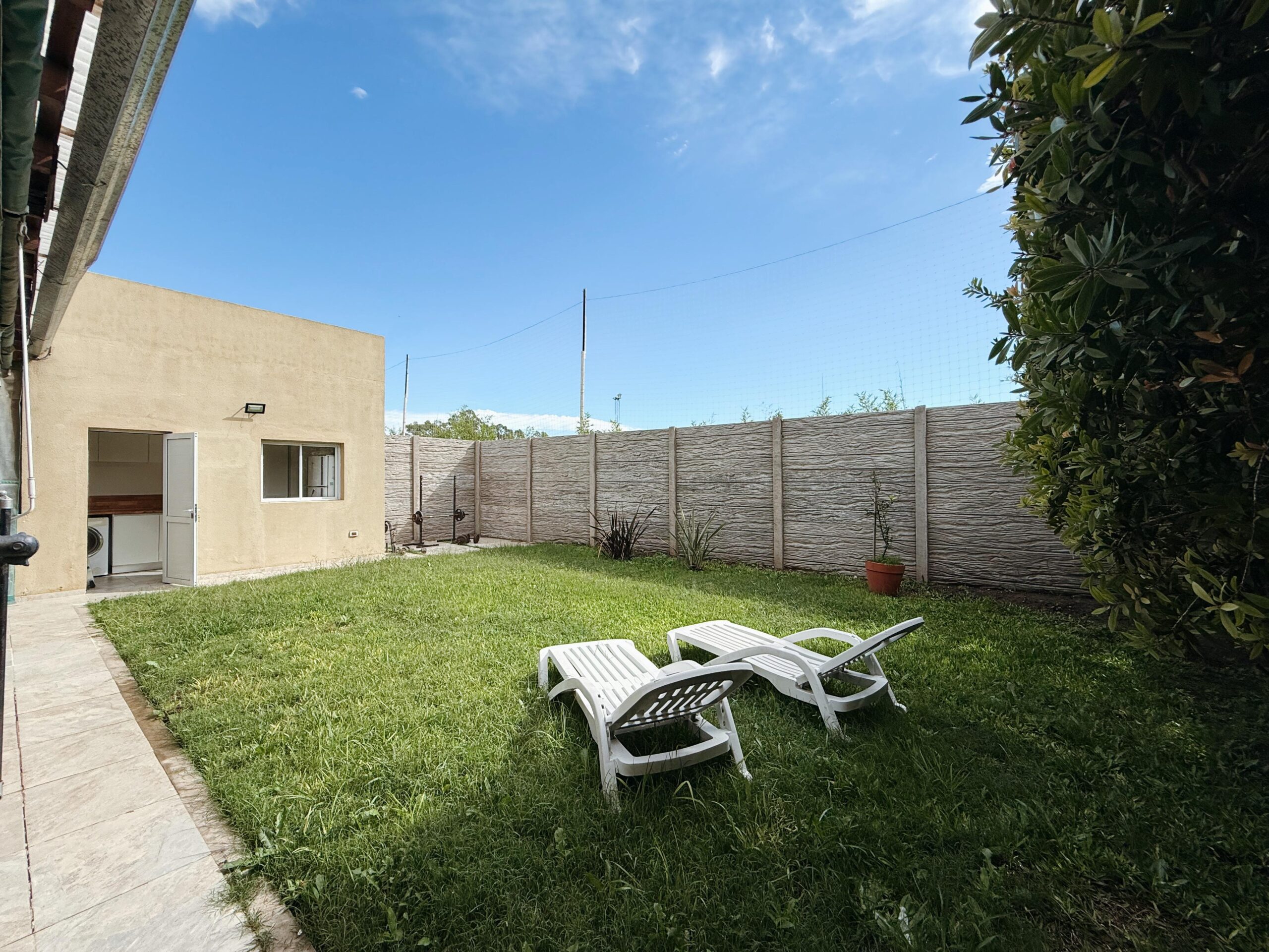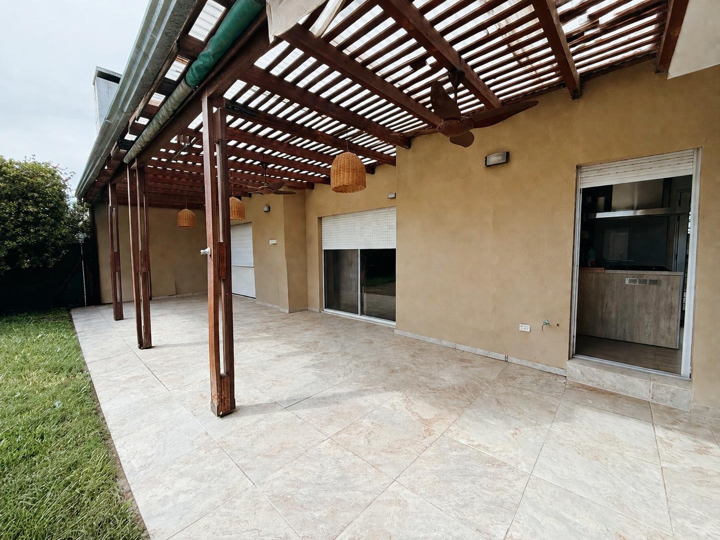 El exterior ofrece una agradable galería con parrillero techado, perfecta para encuentros al aire libre, acompañada de un amplio jardín que aporta verde y privacidad. Además, dispone de patio, sector de lavadero con conexión para lavarropas, sistema de alarma, calefacción y aire acondicionado.