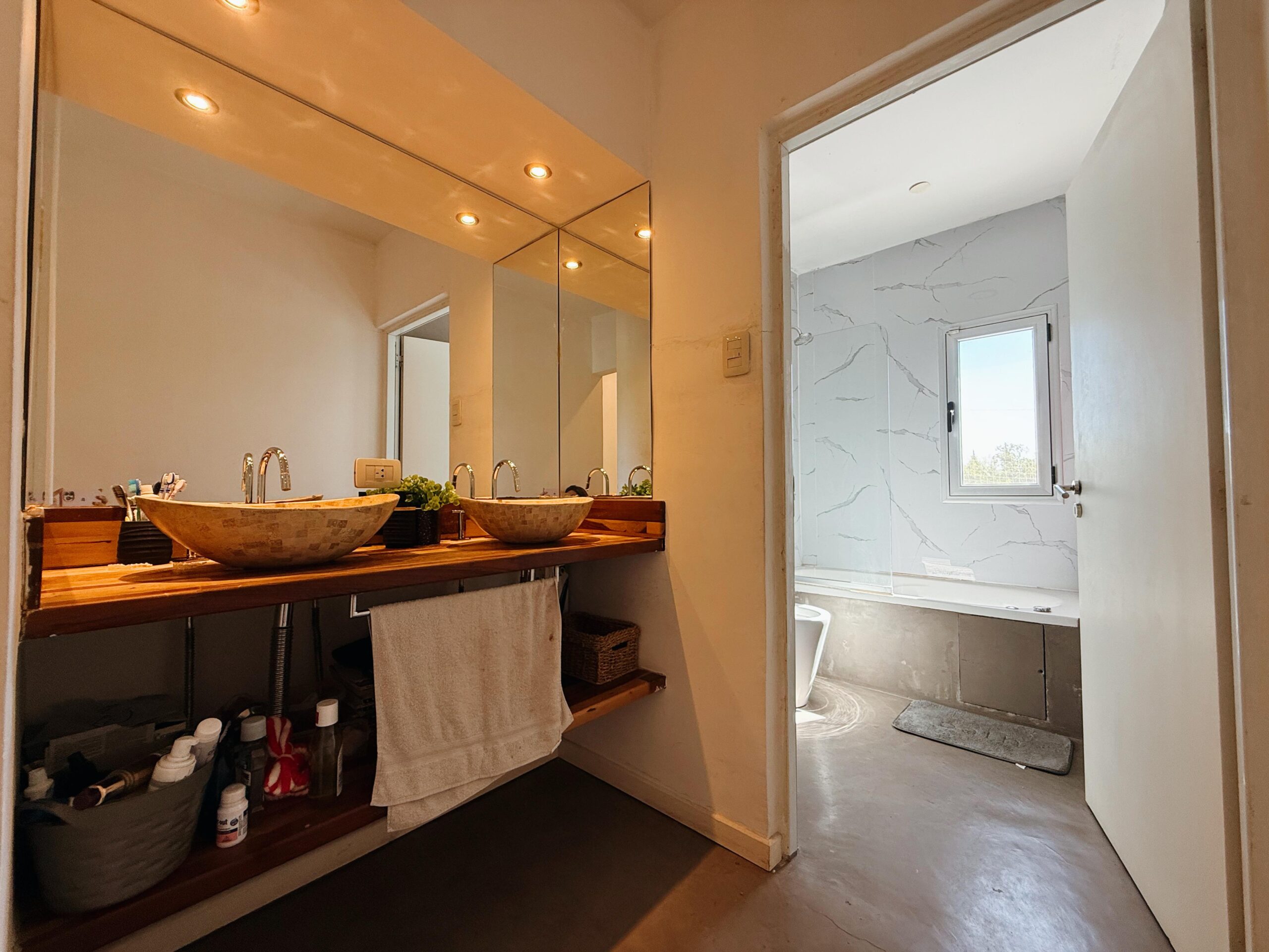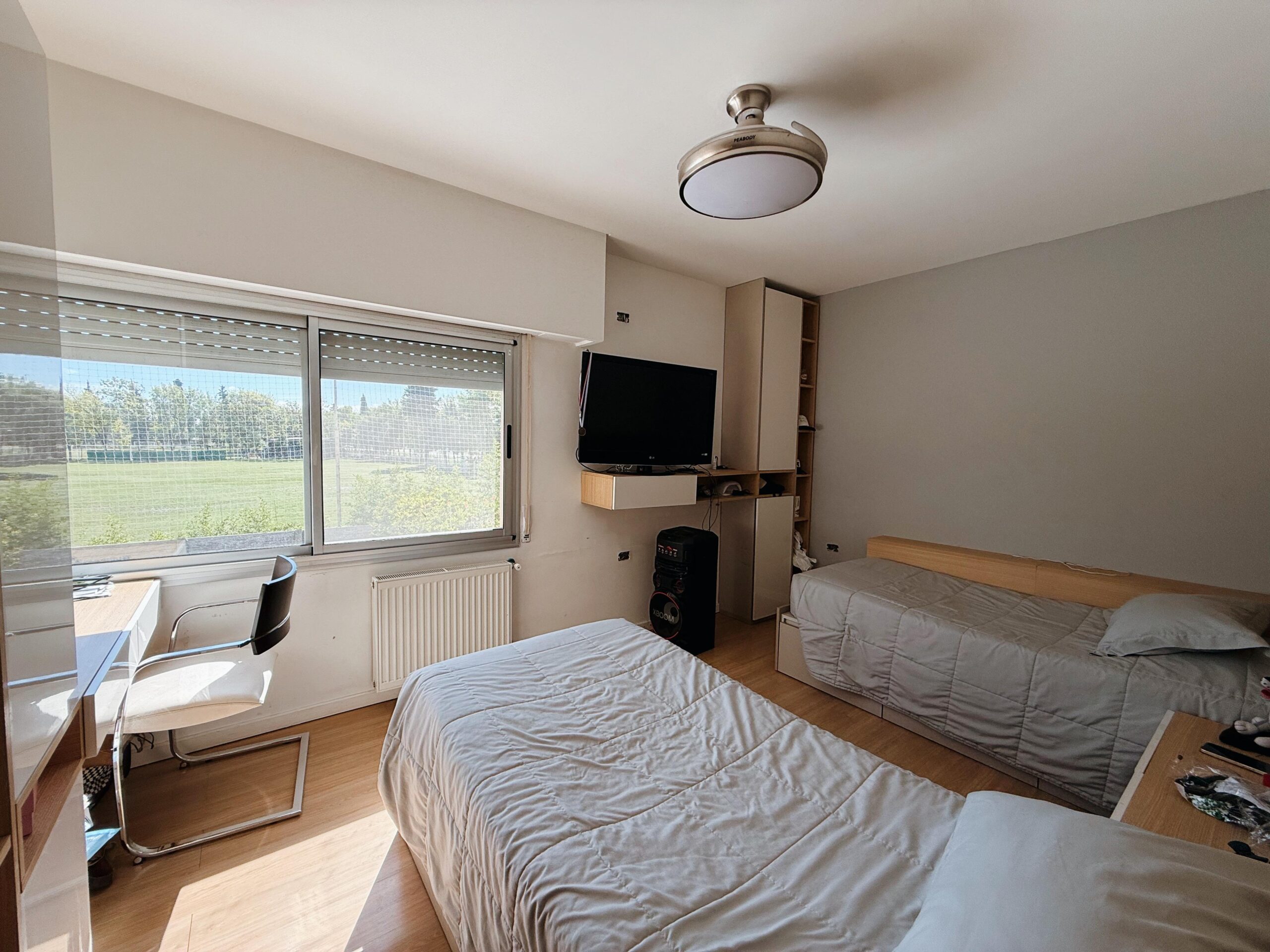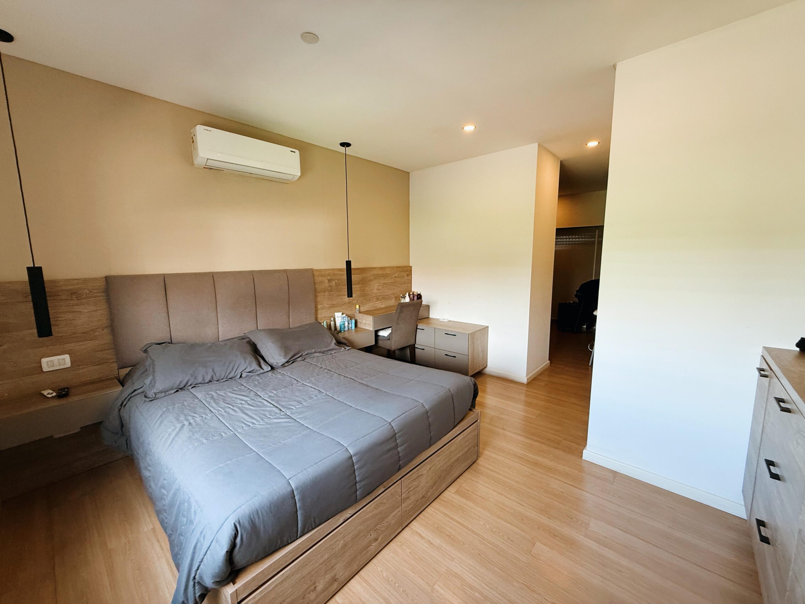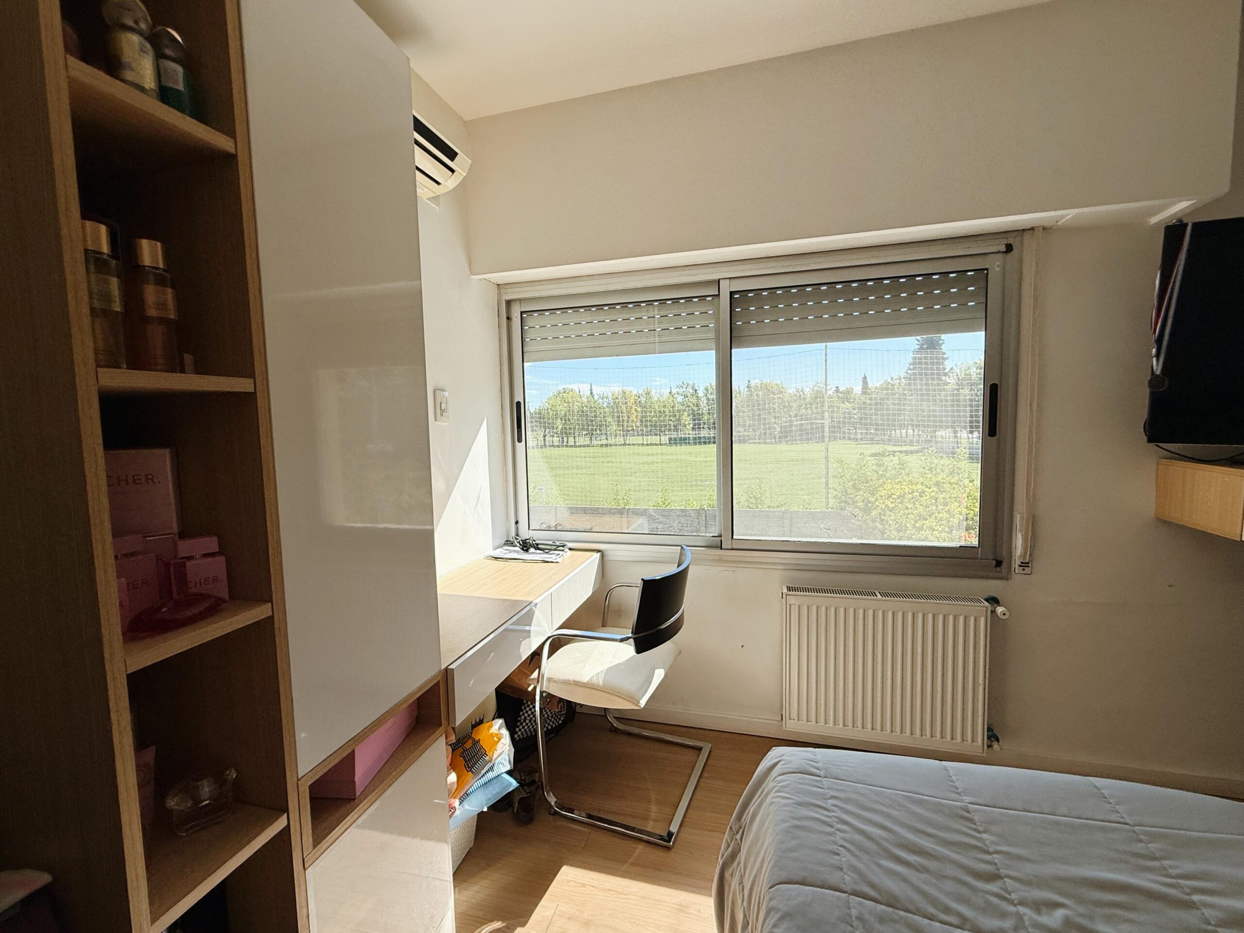 El sector íntimo se desarrolla en planta alta y está compuesto por tres dormitorios: una suite principal de excelente categoría y dos habitaciones adicionales, ambas con vestidor propio, que comparten un baño completo.
