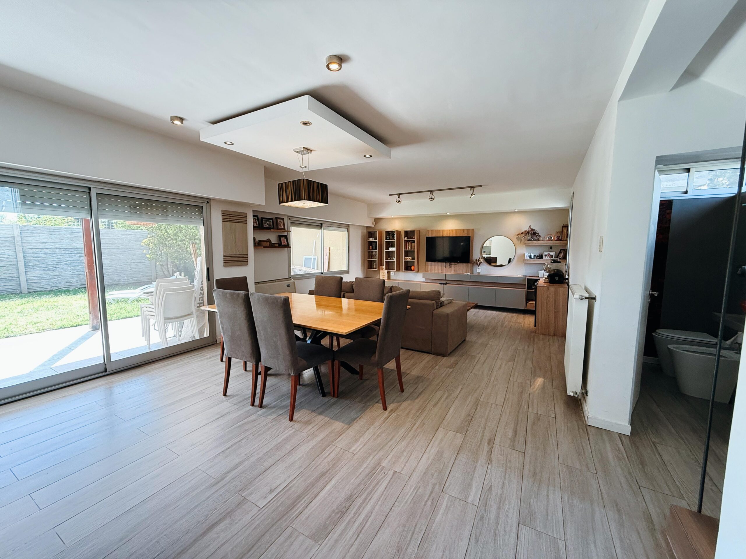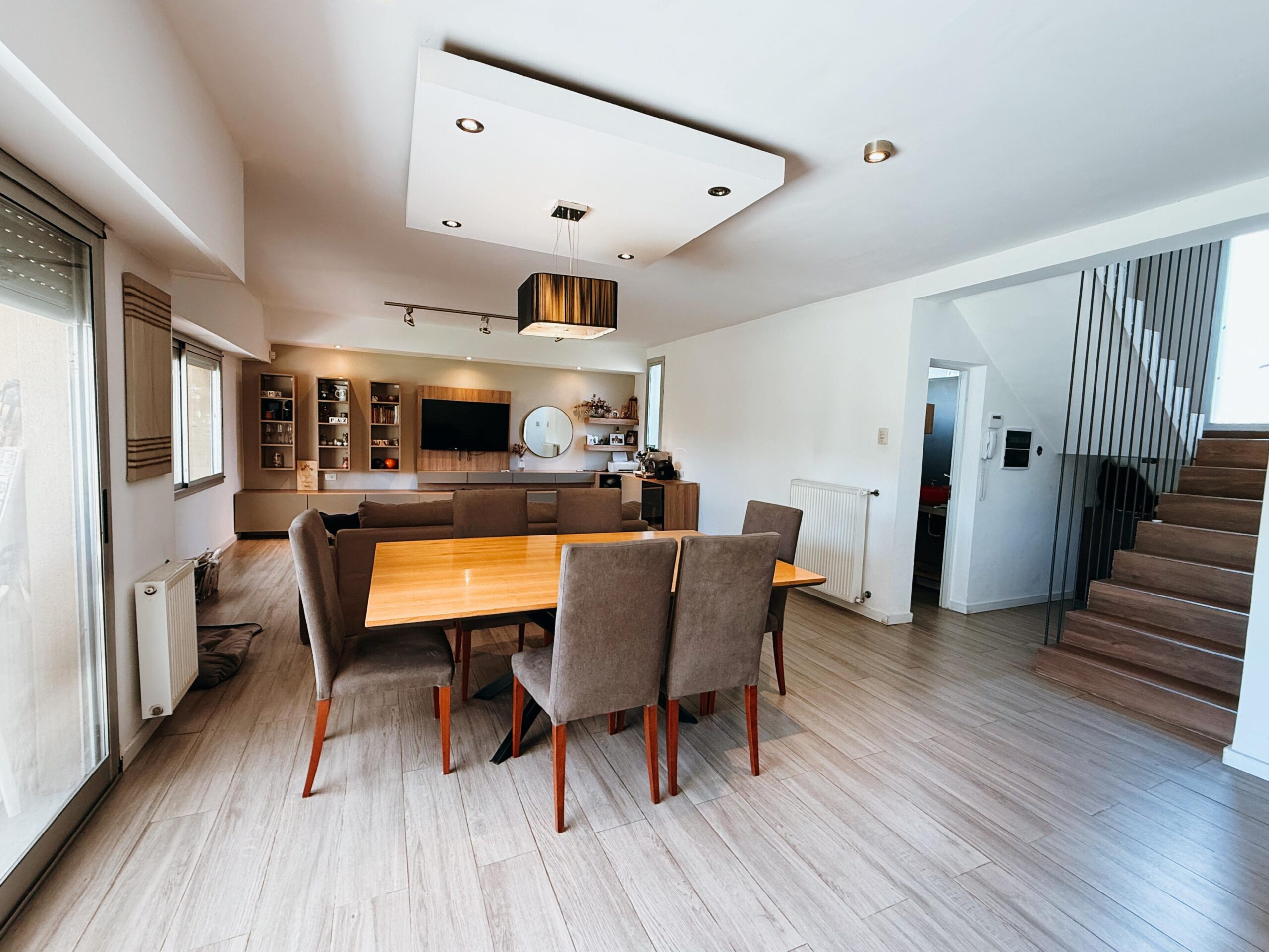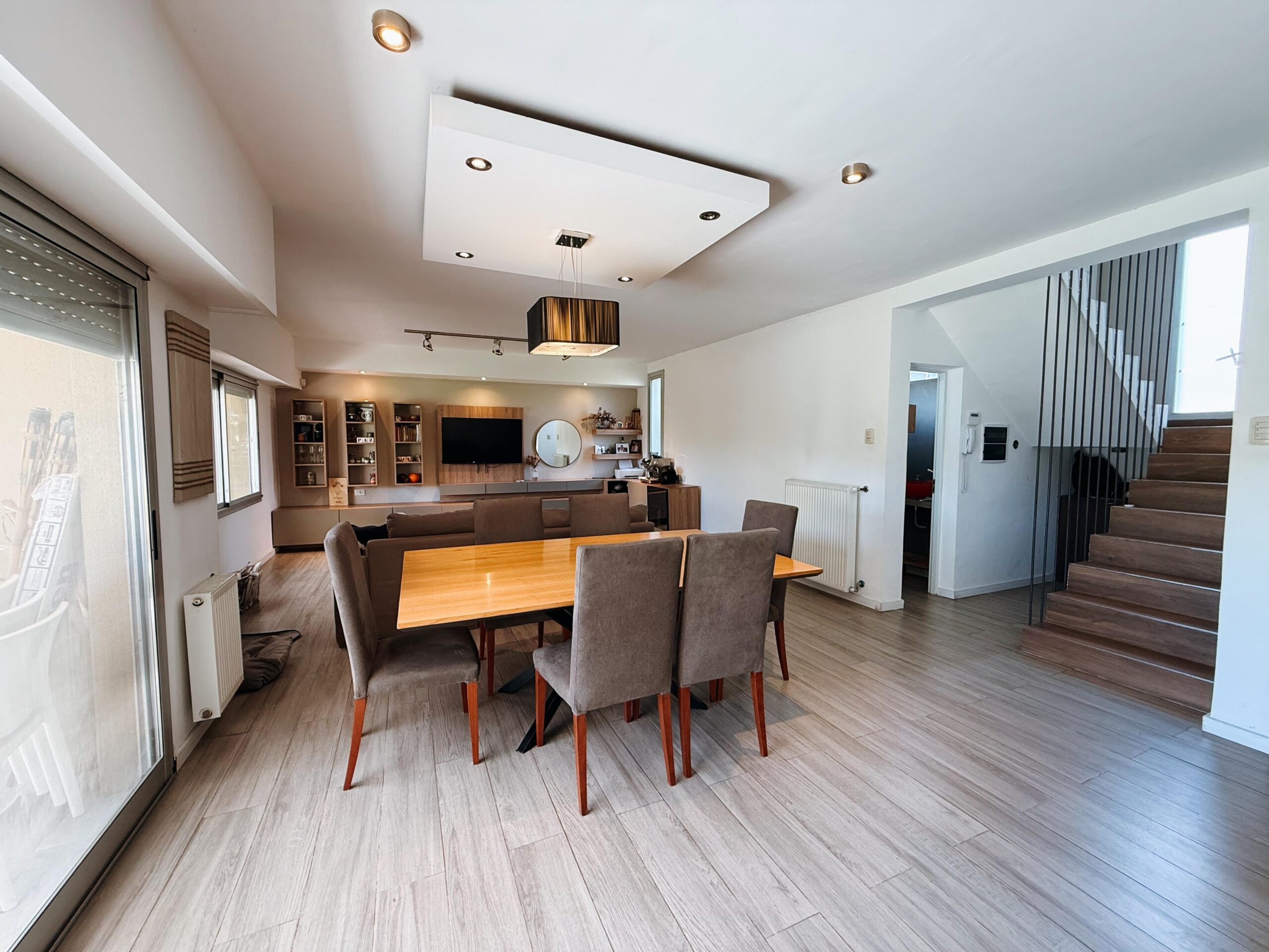 Al ingresar, nos recibe un amplio y luminoso living-comedor de generosas dimensiones, ideal para disfrutar de reuniones sociales y momentos en familia. La cocina, completamente independiente, se destaca por su diseño contemporáneo y funcionalidad, incorporando un práctico comedor diario. En esta planta también cuenta con toilette de recepción.