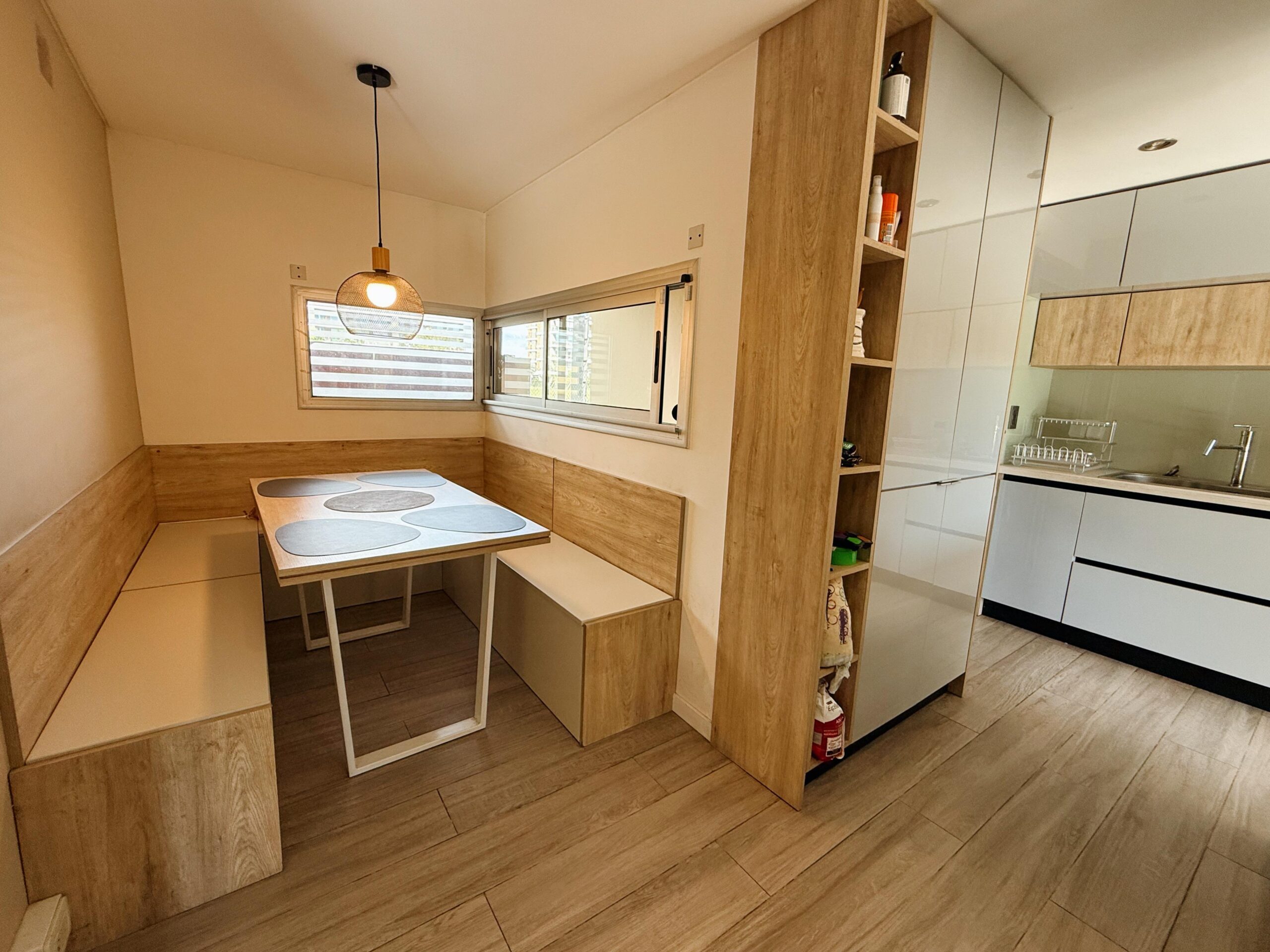 Gracias a su orientación sur, la vivienda cuenta con una muy buena iluminación natural a lo largo del día, generando ambientes cálidos y agradables.