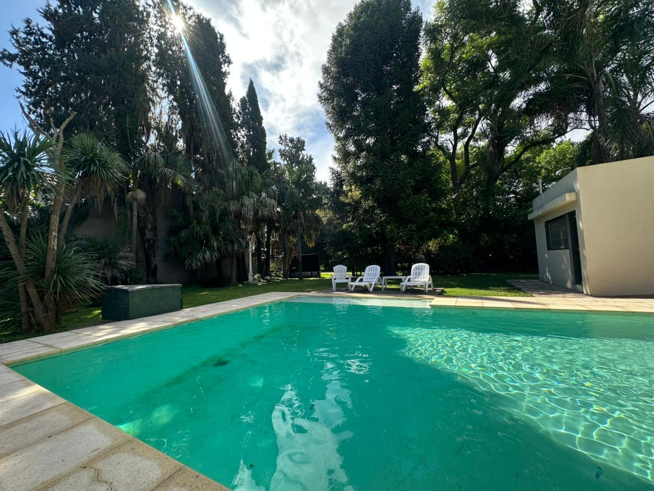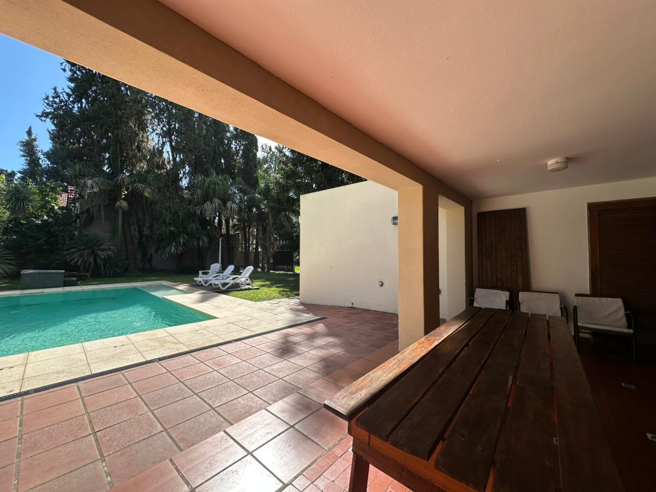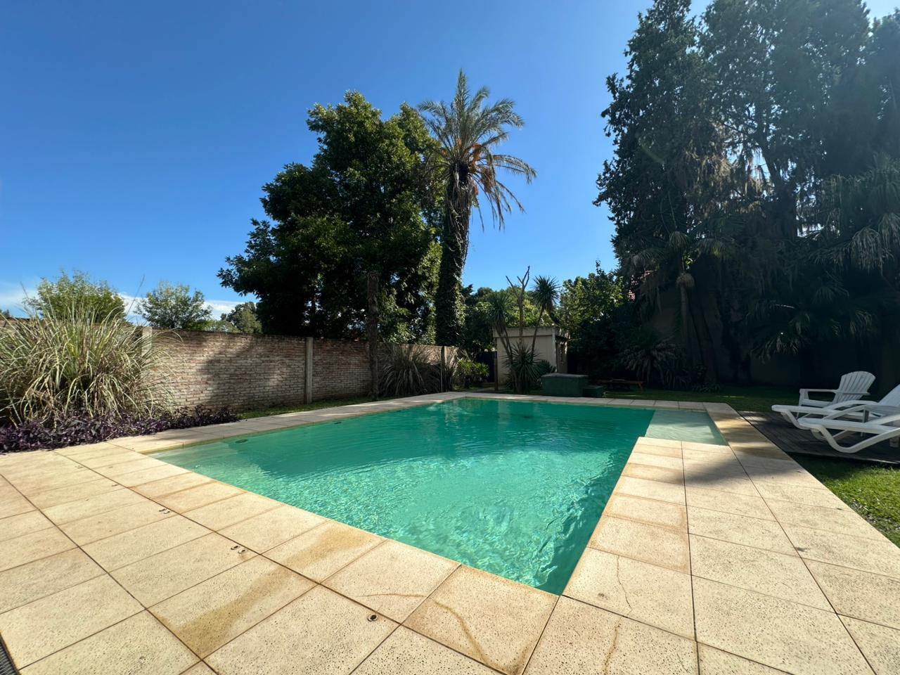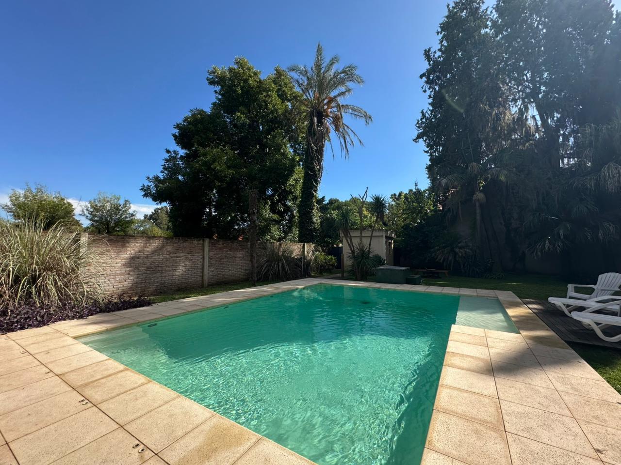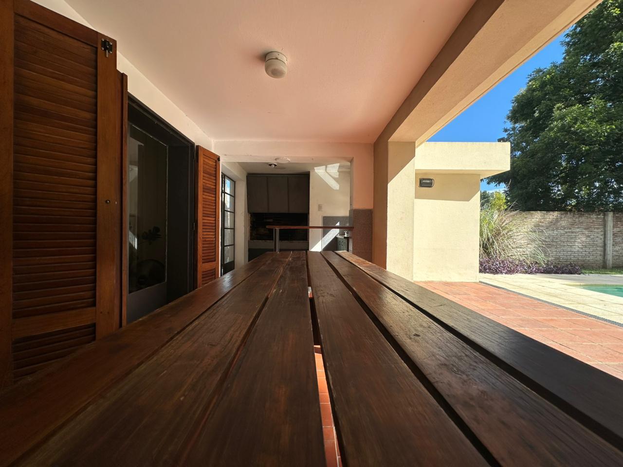 Al ingresar, la casa transmite una sensación de amplitud y calma, rodeada por un gran jardín verde que se convierte en uno de sus principales atractivos. La galería semicubierta se destaca como espacio protagonista: amplia, fresca y versátil, perfecta para reuniones, comidas al aire libre o momentos de descanso, siempre con vista a la pileta.