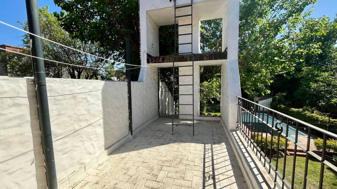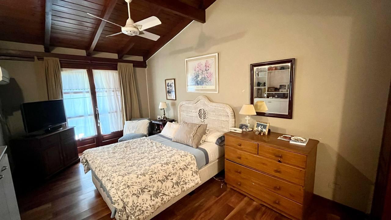 Descripción: El ingreso principal es hacia el living en doble altura. En planta baja encontramos el comedor diario sectorizado, semi integrado a la cocina con vistas al jardín, lavadero independiente con baño de servicio y salida hacia el exterior. Posee baño, toilette y sala de escritorio. En planta alta, tenemos tres dormitorios, uno de ellos en suite con vestidor y baño de gran amplitud. También dispone de un baño y ante baño de uso común para los otros dos dormitorios. Desde uno de los dormitorios podemos acceder hacia una terraza con vista al parque y acceso a los tanques de agua. Gran jardín con pileta, cuenta con bomba y filtro funcionando.