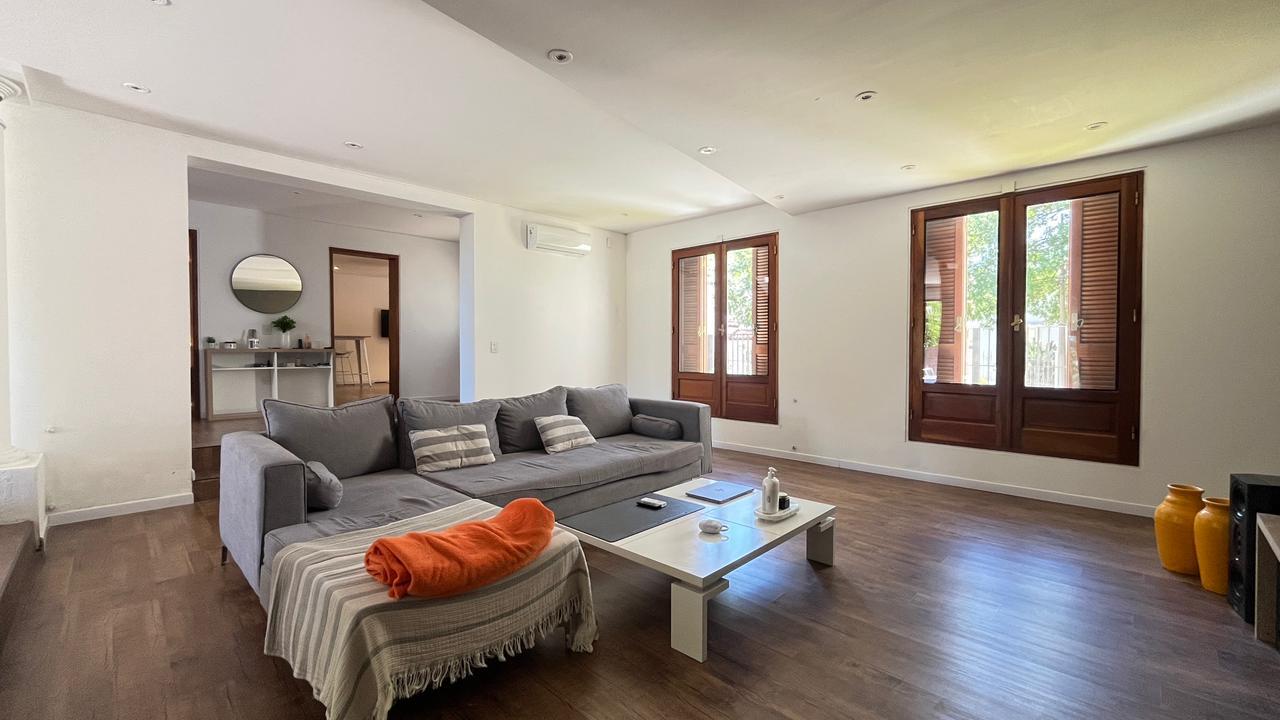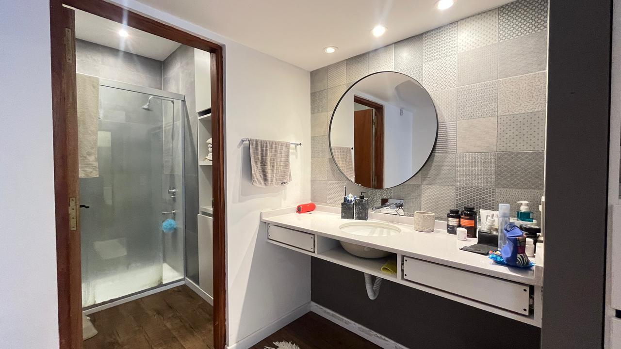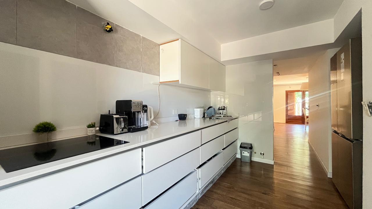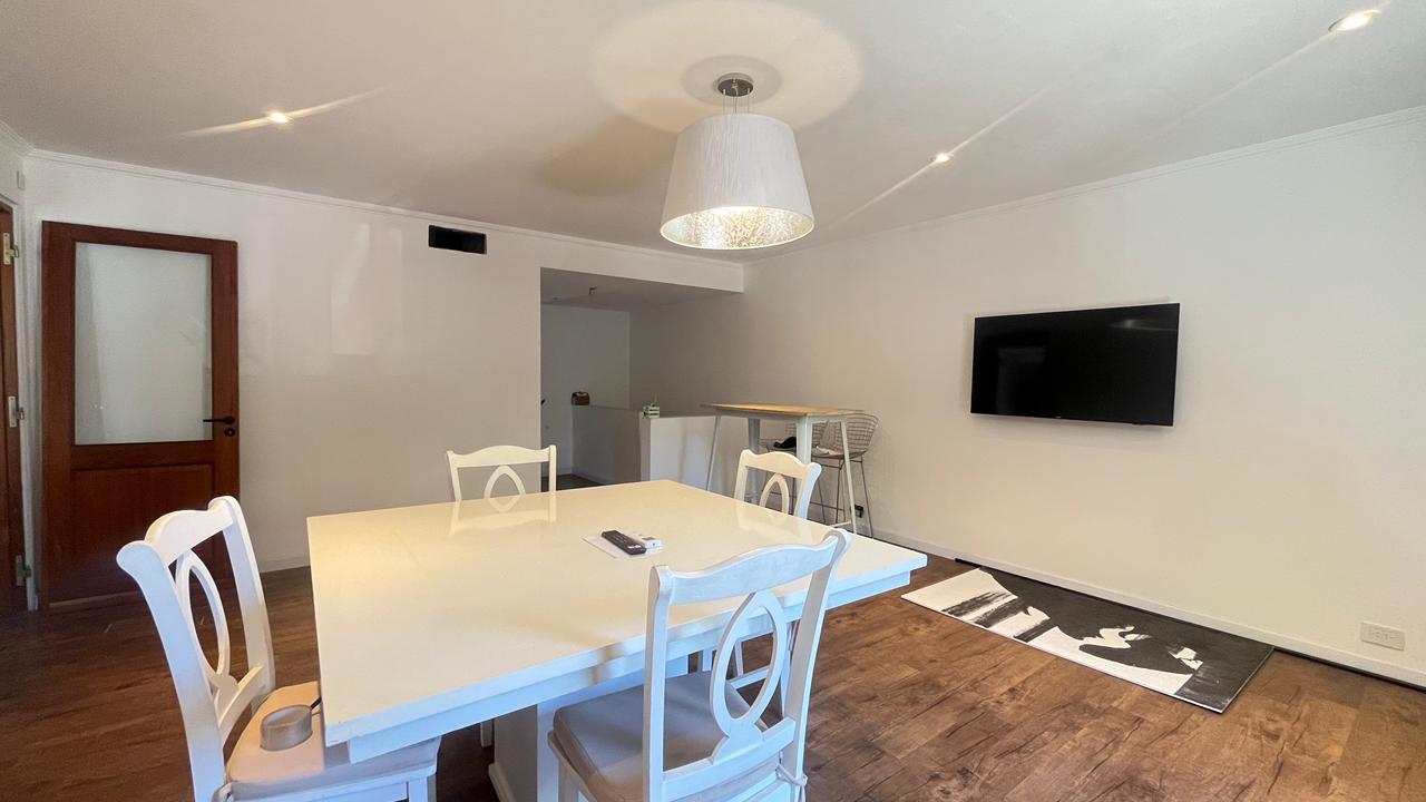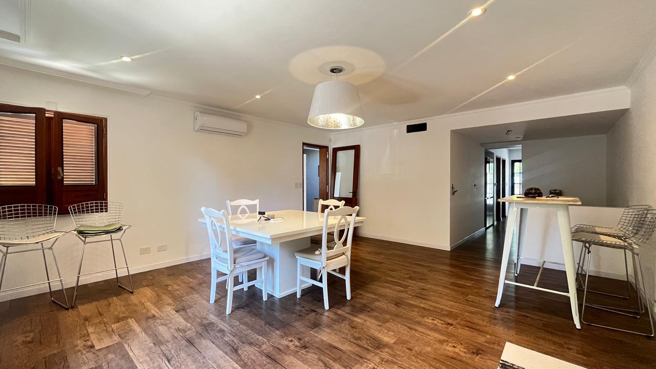 Descripción: Casa desarrollada en dos plantas. Planta baja con hall de recepción, living principal con ventanal al jardín, cocina con lavadero separado y con salida al jardín, baño completo, dormitorio/escritorio, y cochera lateral en el subsuelo. Planta alta cinco dormitorios amplios: mastersuite con vestidor y baño en suite (falta terminar), cuatro dormitorios secundarios con placares empotrados, más un baño completo con ventilación natural. Exterior con jardín.