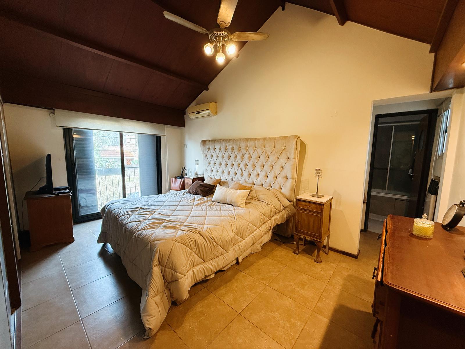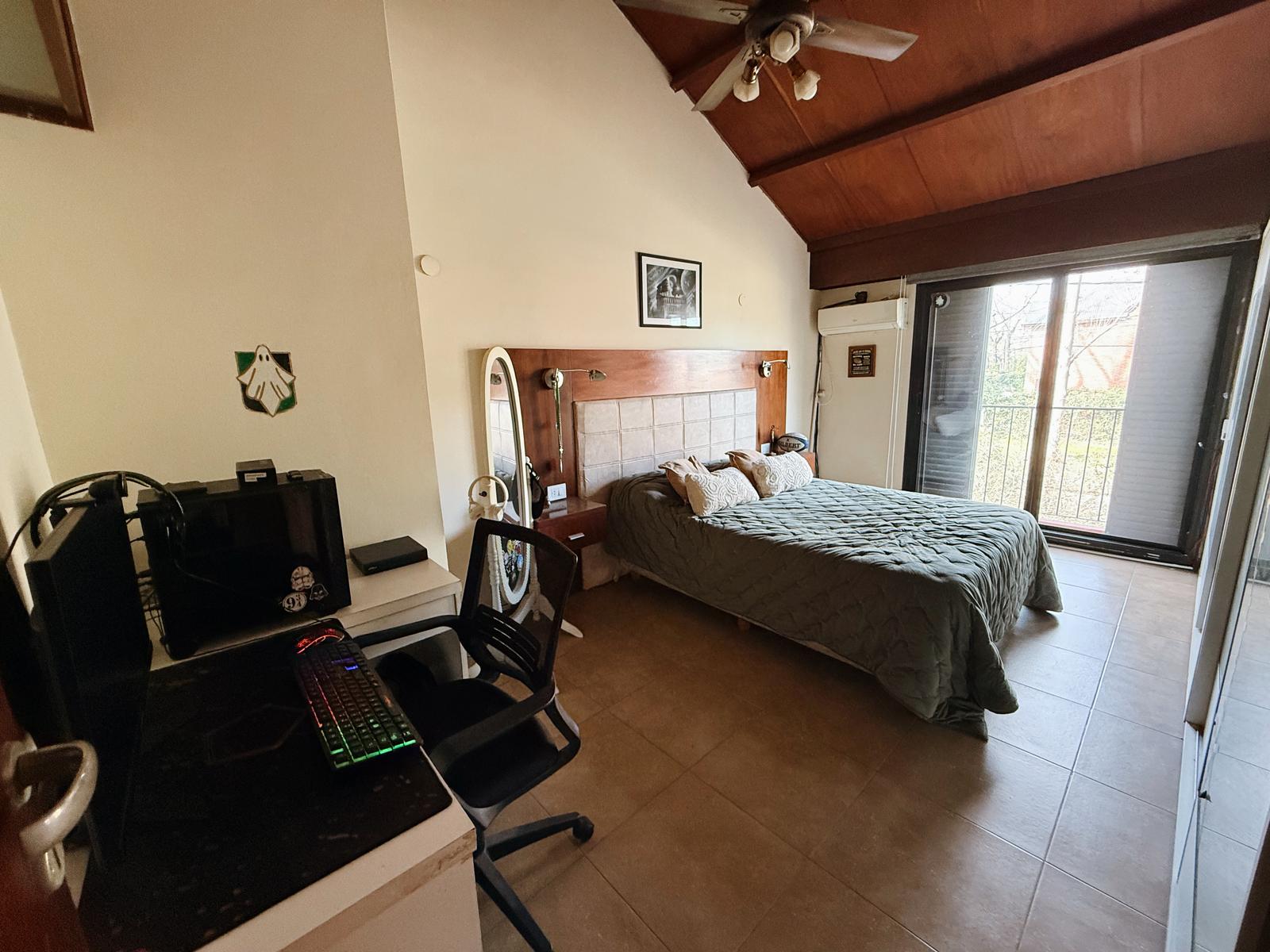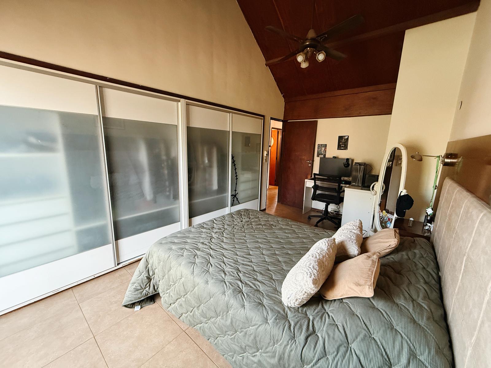 La planta alta se organiza a través de un distribuidor que da acceso al dormitorio principal en suite, con antebaño, baño completo, vestidor y balcón aL frente. Se suman dos dormitorios adicionales, ambos con placares y salida a una amplia terraza, además de un baño completo con antebaño y ventilación natural.