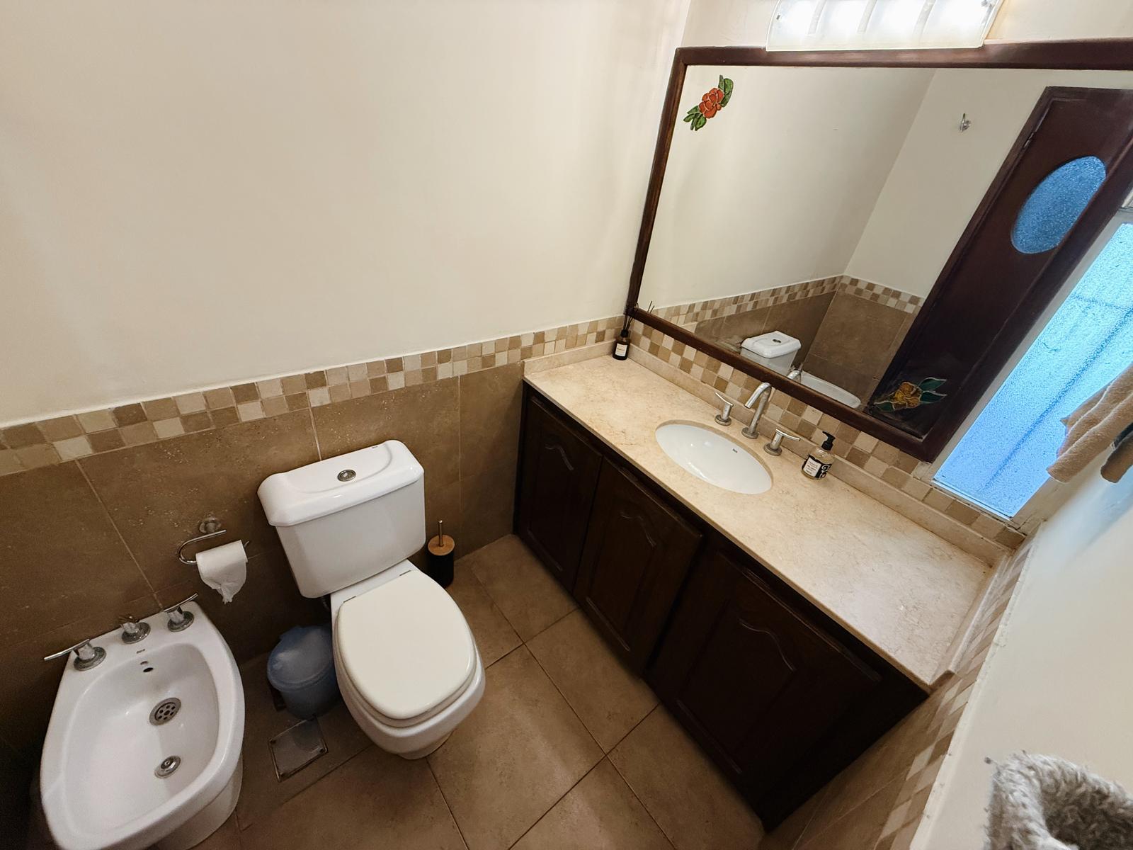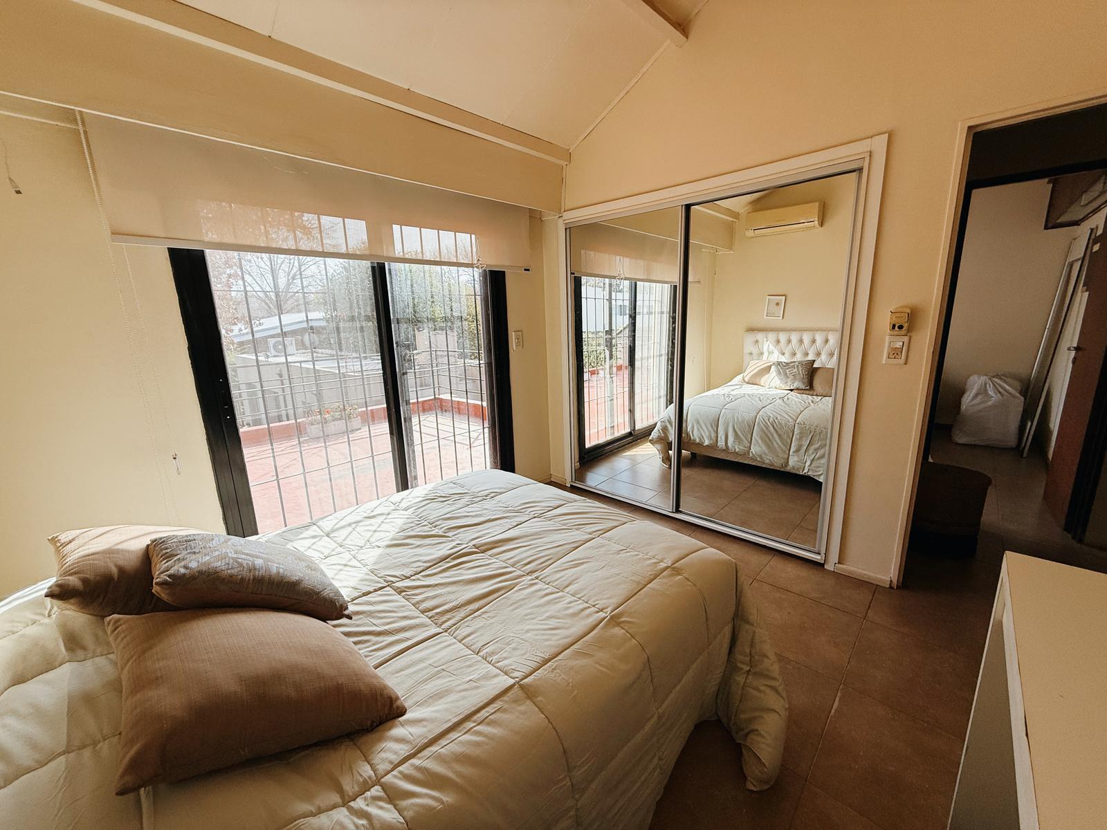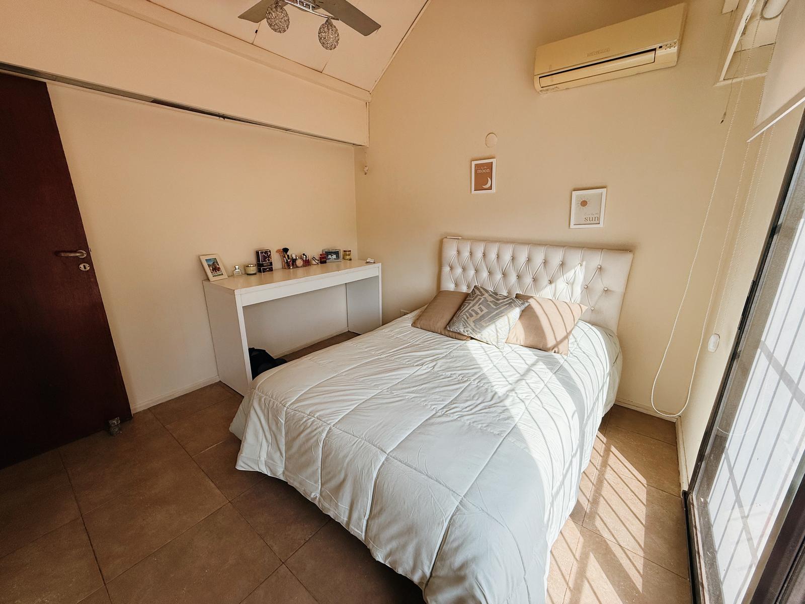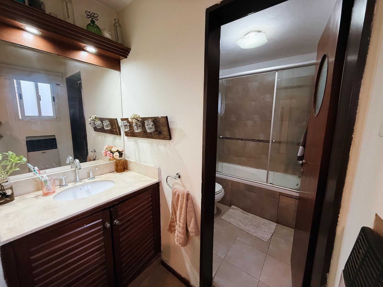 La planta alta se organiza a través de un distribuidor que da acceso al dormitorio principal en suite, con antebaño, baño completo, vestidor y balcón aL frente. Se suman dos dormitorios adicionales, ambos con placares y salida a una amplia terraza, además de un baño completo con antebaño y ventilación natural.