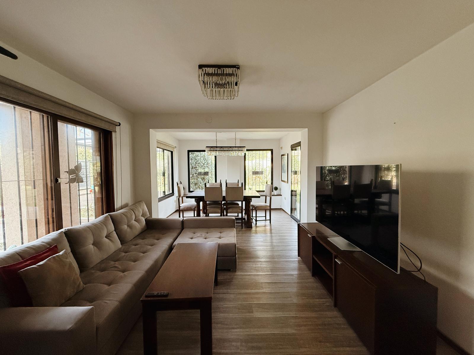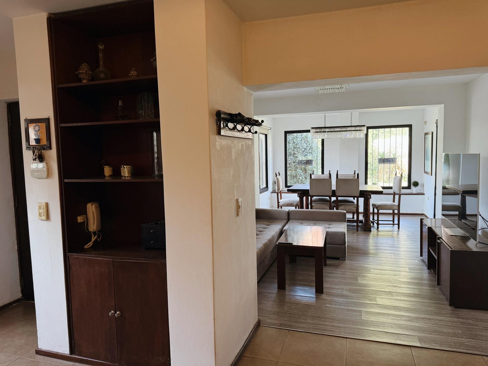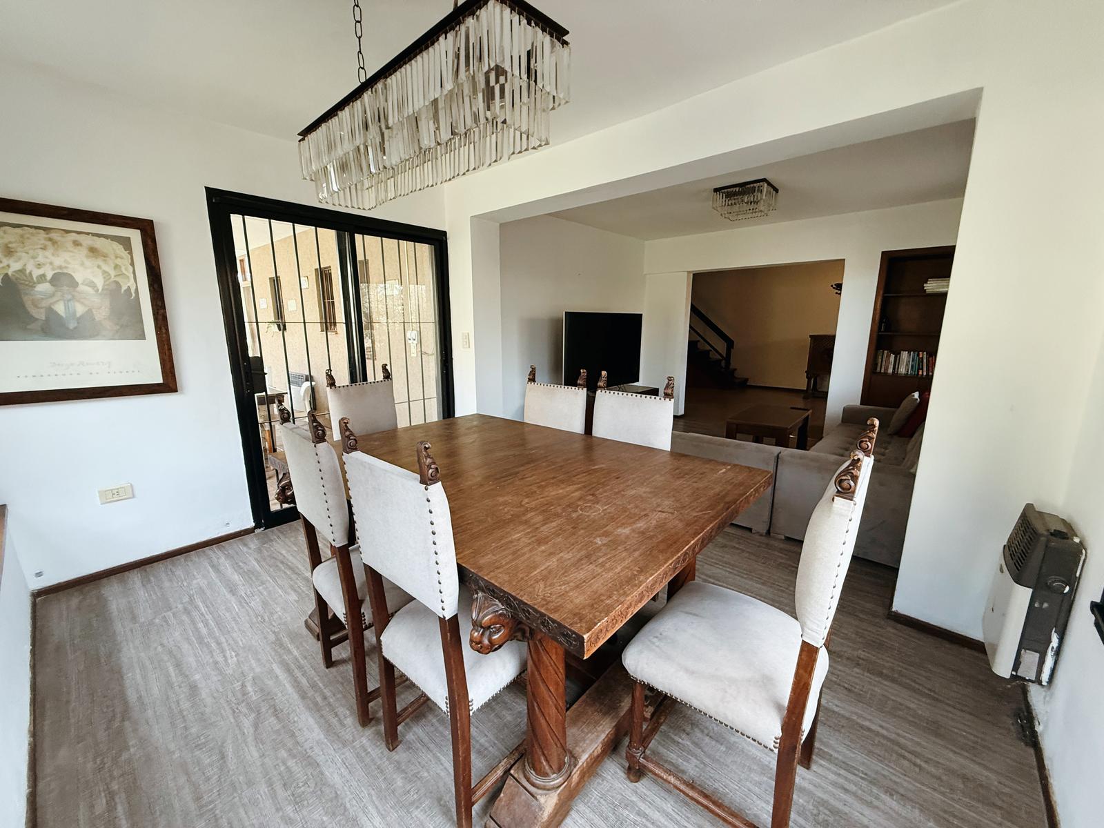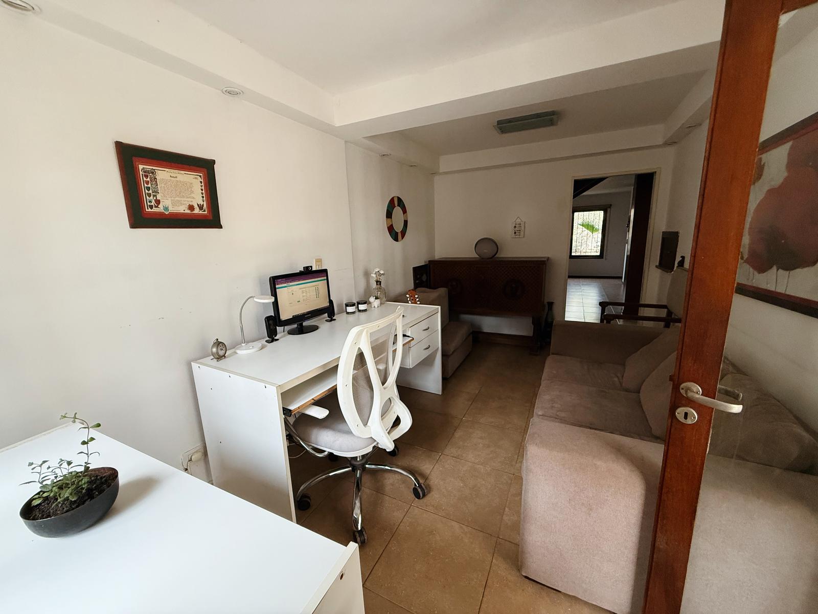 Descripción: Se accede por un doble ingreso, tanto vehicular como peatonal, que conduce a un amplio hall de recepción. Desde allí se integra un luminoso living-comedor con grandes ventanales hacia el jardín, un toilette de cortesía y un escritorio o dormitorio con conexión directa a la cocina. La cocina se encuentra totalmente equipada con alacenas, bajo mesada, mesada de granito, horno y campana, y se complementa con un comedor diario. En esta planta también se ubican un lavadero independiente, un quincho cerrado con baño completo y una galería cubierta de generosas dimensiones que conecta con el parque. El sector exterior dispone de parrillero, cuarto de guardado, sala de máquinas, un extenso jardín parquizado y piscina con solárium.