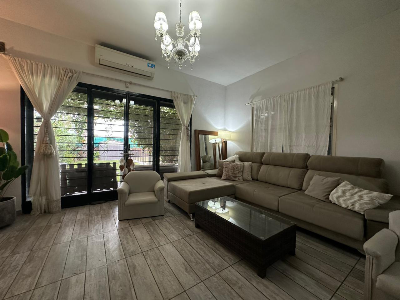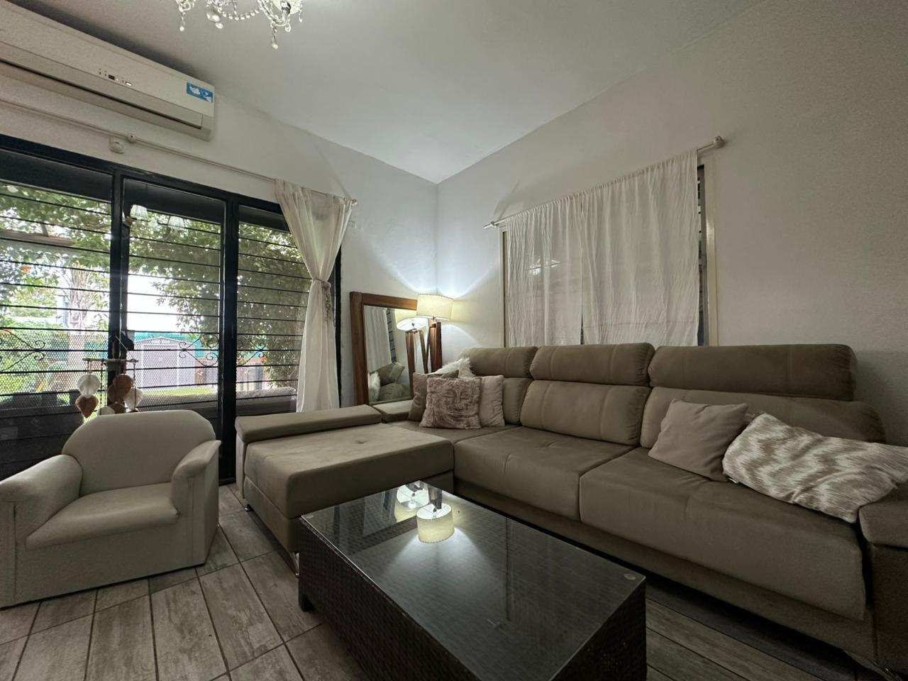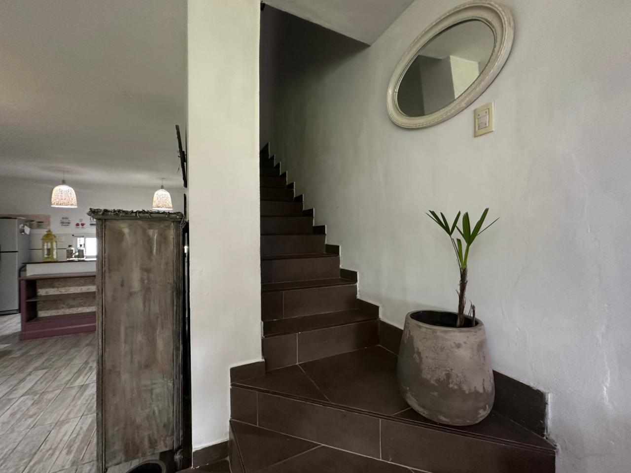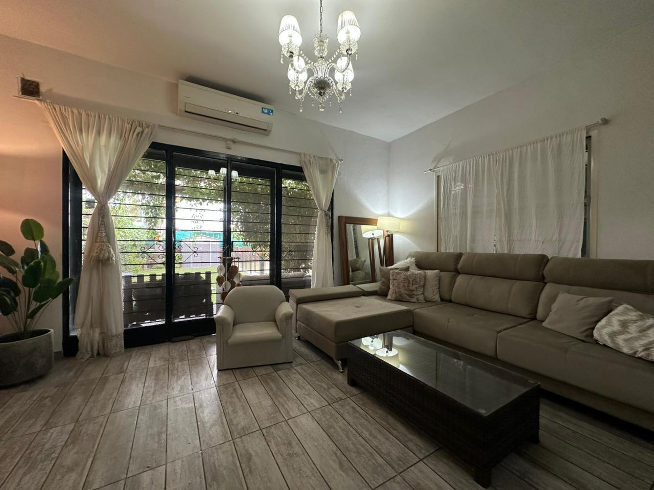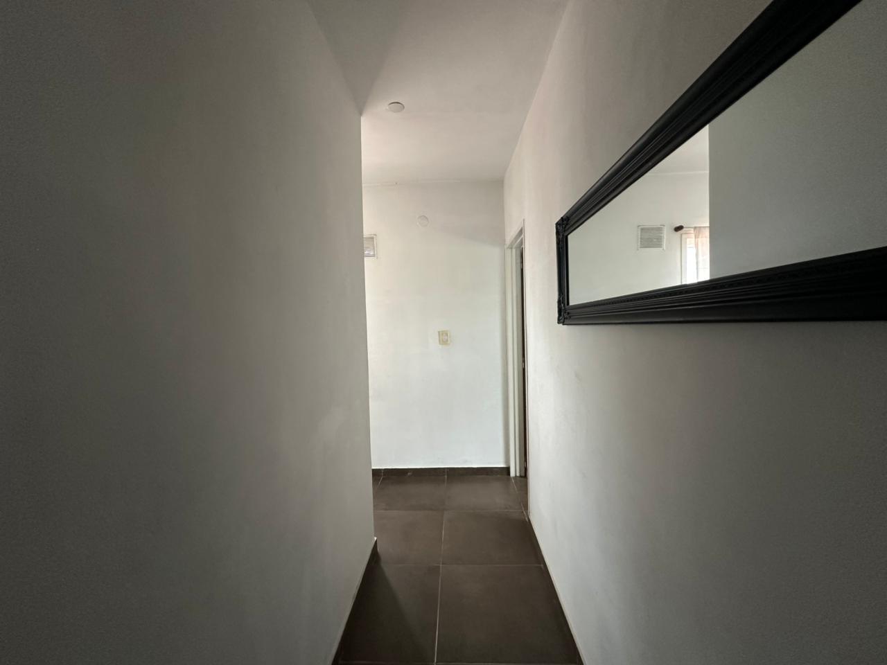 Una escalera conduce a la planta alta, donde un pasillo distribuidor conecta los dos dormitorios. El primero, con placares completos, ofrece espacio cómodo para cama doble o dos camas individuales y escritorio, con ventana al frente equipada con rejas y mosquiteros. El segundo dormitorio, de mayores dimensiones, se destaca por su gran ventanal con vistas abiertas al jardín y la piscina, brindando excelente luz natural. Ambos cuentan con aire acondicionado frío/calor.