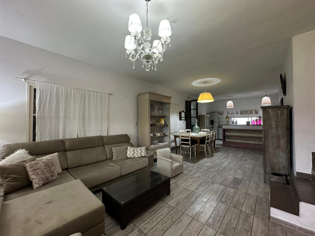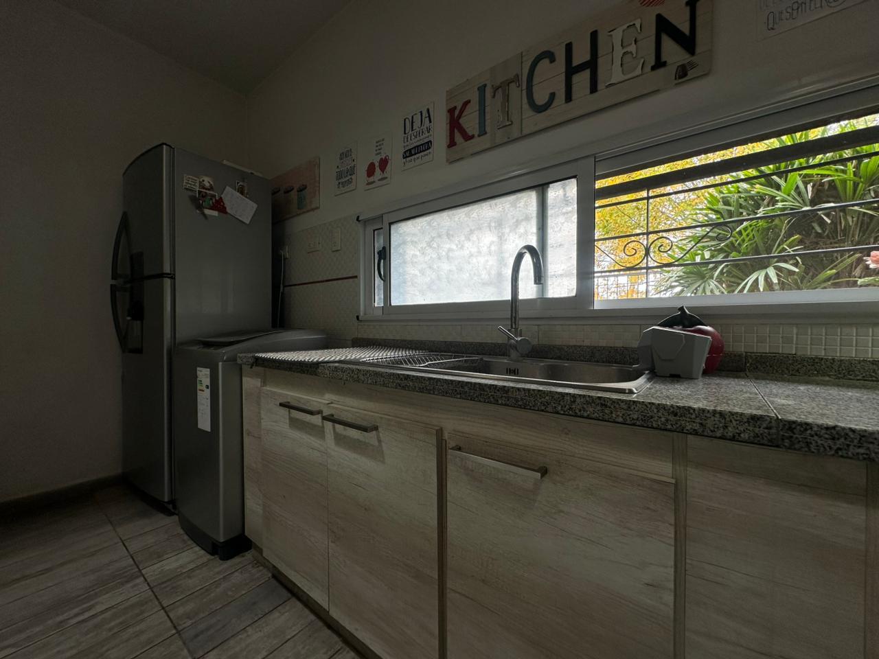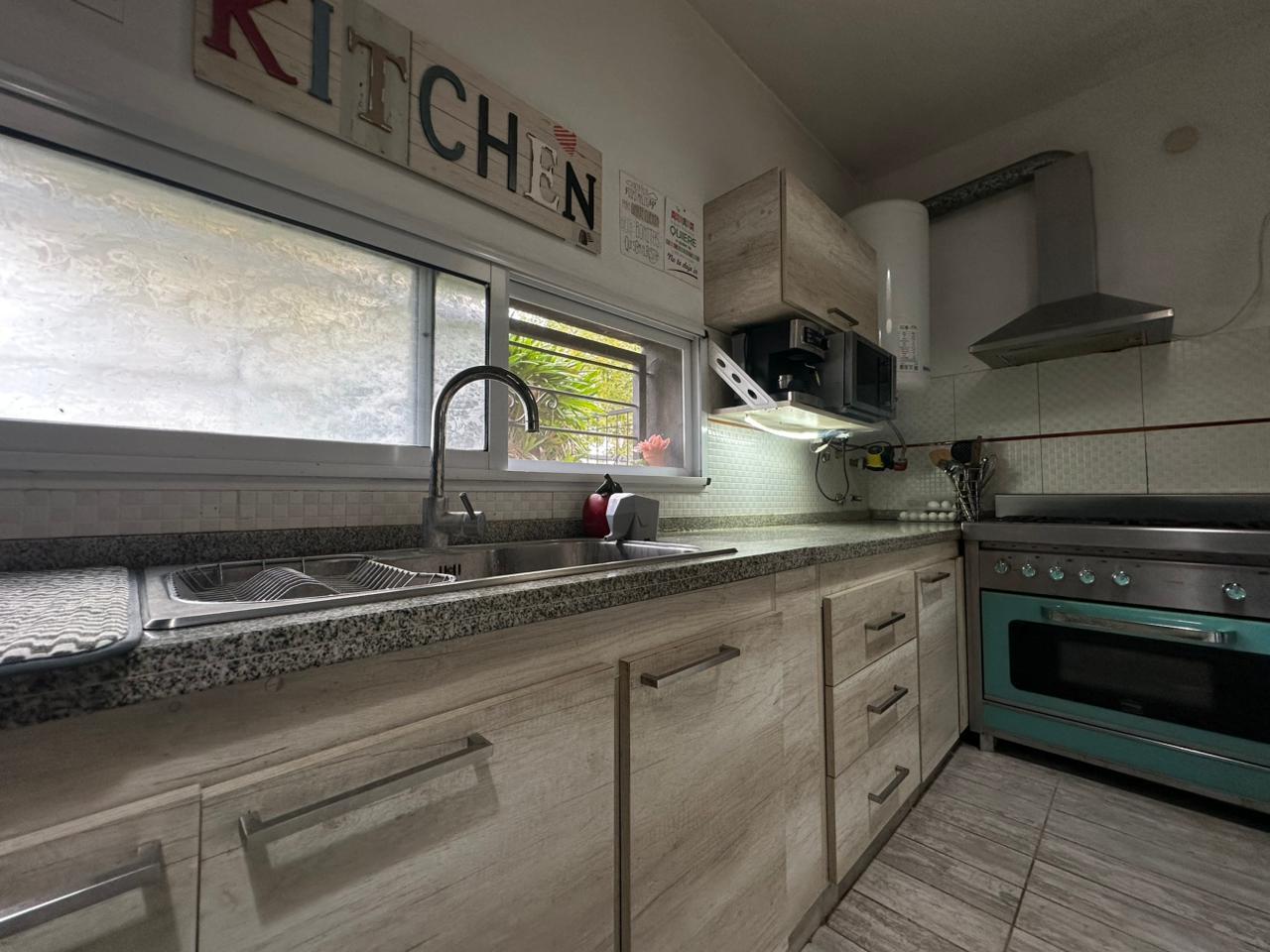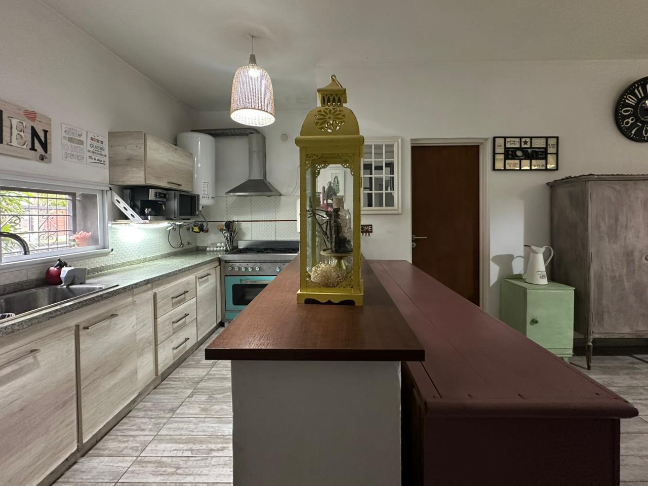 Al ingresar a la vivienda, se destaca un amplio living-comedor de generosas dimensiones, con excelente luminosidad gracias a sus grandes ventanales con vistas al jardín. La cocina se encuentra integrada, separada por una barra desayunadora, con abundante mobiliario (alacenas y bajo mesada en ambos laterales) y equipada con cocina industrial eléctrica de seis hornallas. Todo el ambiente cuenta con ventilación cruzada, logrando espacios frescos, luminosos y confortables.