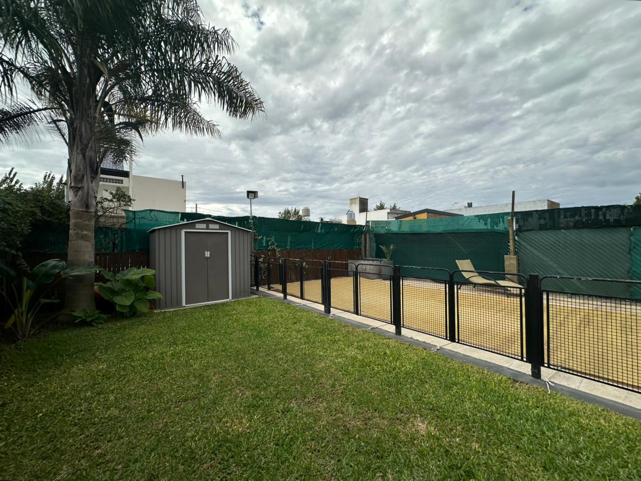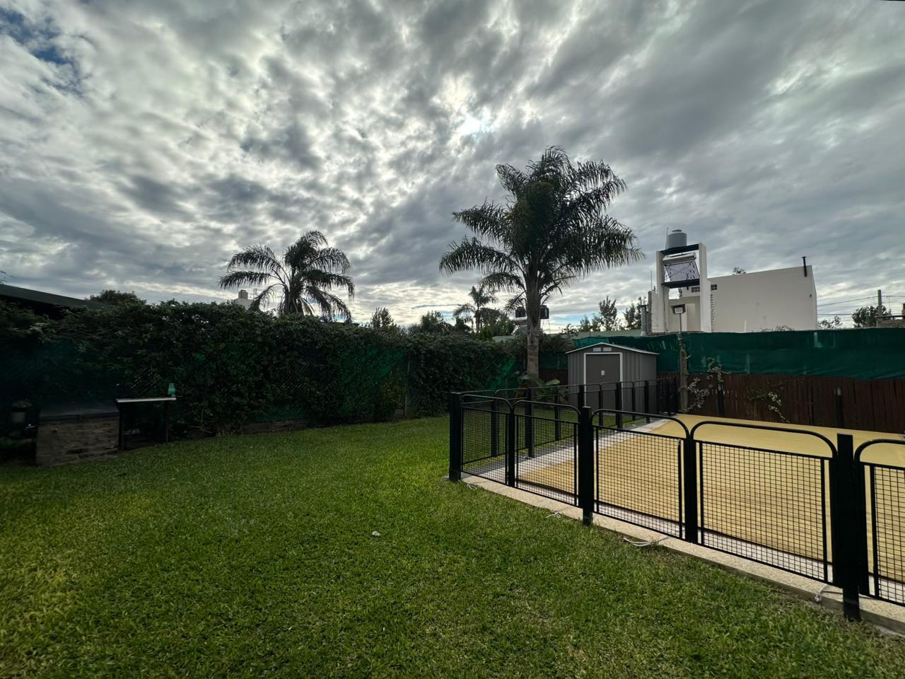 En el exterior, la propiedad cuenta con un gran jardín parquizado que enmarca la piscina, la cual dispone de cerramiento de seguridad, sistema completo de filtrado, barrefondo, desagote y cobertor protector, garantizando mantenimiento y uso durante todo el año. Se suma también un espacio de guardado exterior.