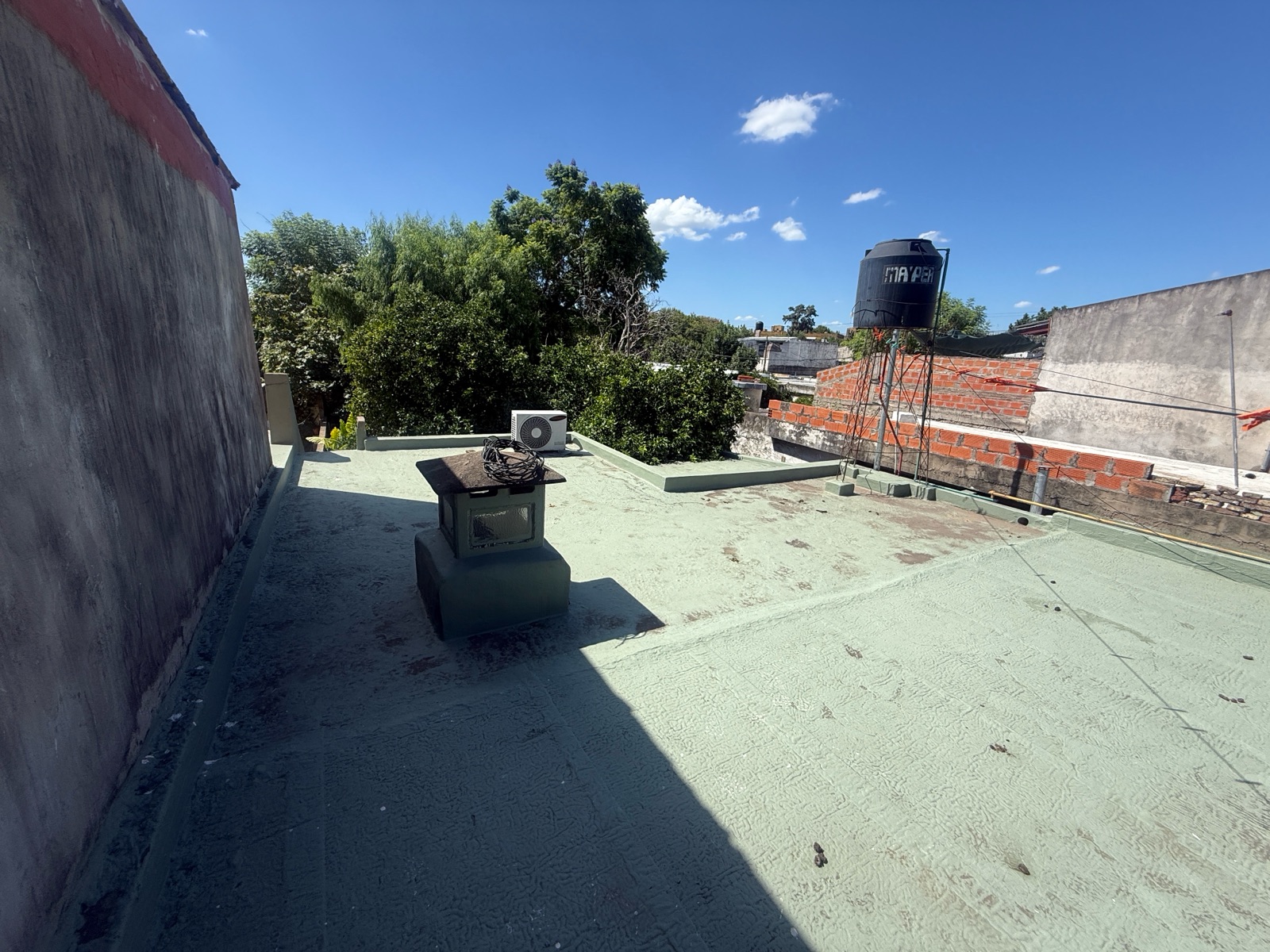 Descripción: Ingresamos a la casa y vemos un amplio living comedor con espacio para mesas y sillas con pisos de porcelanato simil madera. A la derecha tenemos un pequeño pulmón de jardín que permite entrada de luz natural y genera ventilación cruzada. A continuación encontramos la cocina con todo el amoblamiento nuevo, mesada de mármol y una ventana arriba de la bacha. La misma tiene espacio para poner una mesa con sillas o bien un segundo comedor diario con espacio para sillones. Al llegar al final de la parte techada salimos al patio que tiene gran parte con vegetación y al costado nos da acceso al lavadero. Siguiendo la escalera al costado del patio nos lleva a la terraza que se encuentra totalmente despejada e impermeabilizada. Siguiendo por el interior de la casa entre la cocina y el comedor tenemos acceso al baño y a los dormitorios que se encuentran enfrentados , uno da a la calle y el otro al patio. Los dos son amplios, tienen buena ventilación y cuentan con placares. El baño está reciclado a nuevo con pisos y paredes de porcelanato, mampara y griferís nuevas.