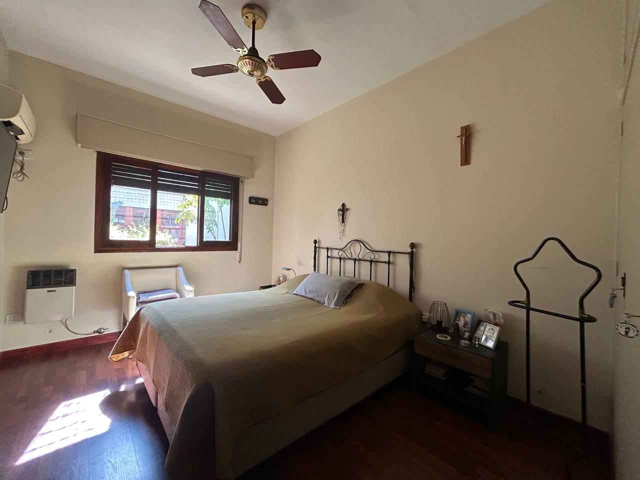 PB: Ingreso al living comedor muy amplio, con acceso a la cochera doble pasante, con posibilidad de destinar una a otro dormitorio, pasillo distribuidor con dos dormitorios con placares completos, uno con baño en suite y otro baño social completo, encontramos también un jardín interno que aporta luminosidad a los espacios, la cocina comedor es independiente de generosas dimensiones y muy equipada, dependencia de servicio en donde funciona el lavadero y baño de servicio. Salida al jardín verde con galería y parrillero.