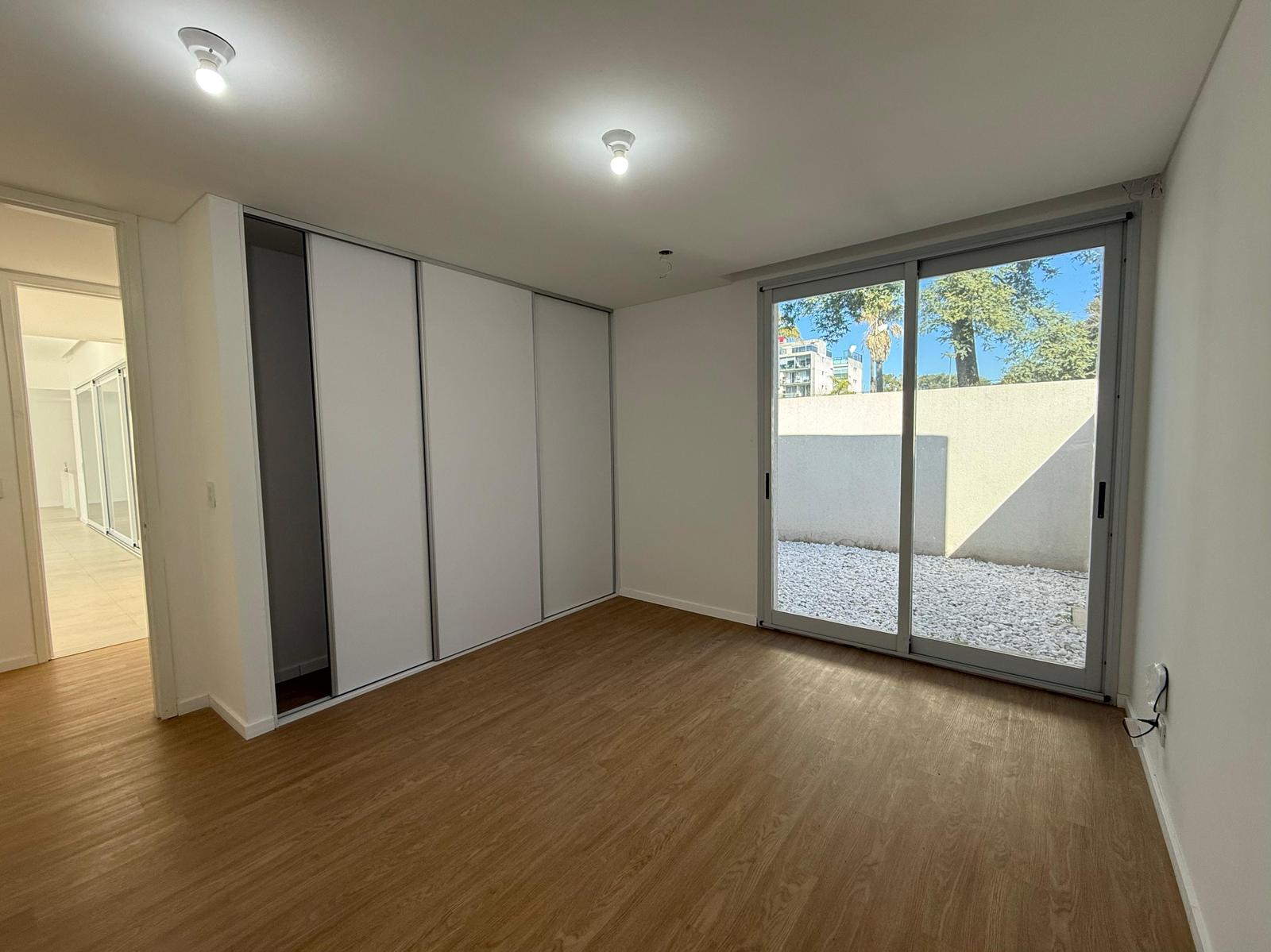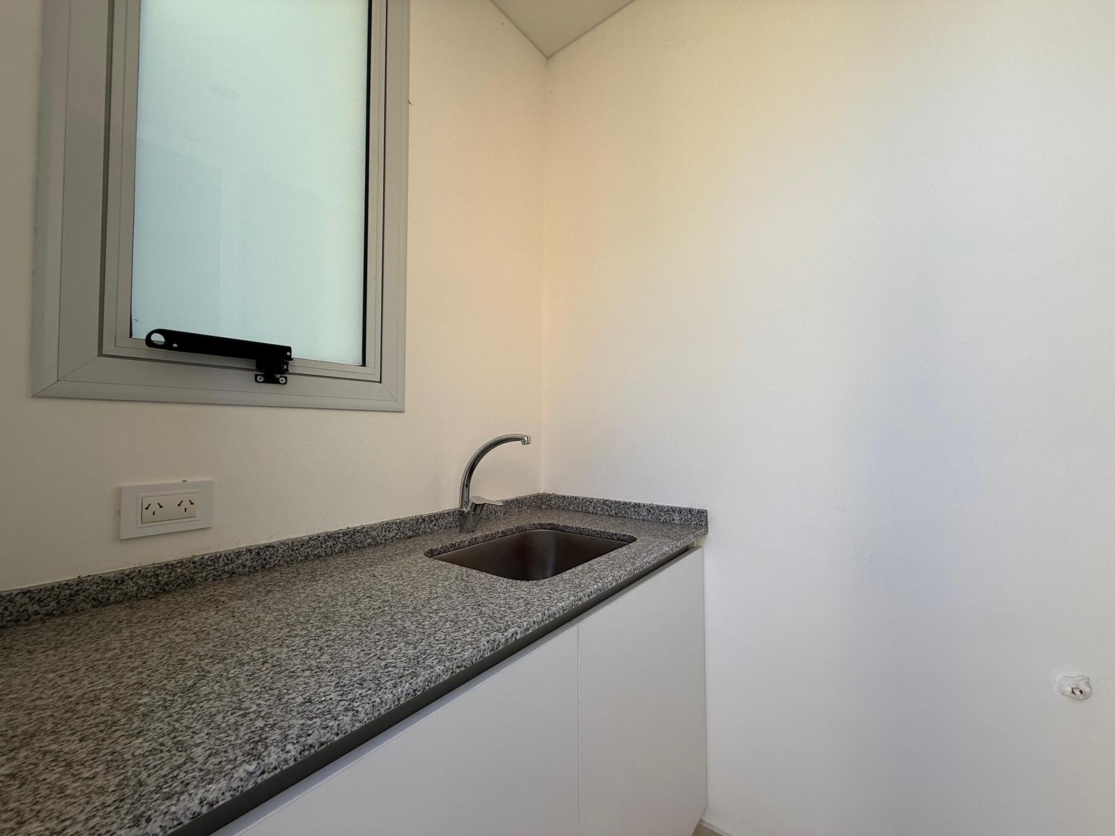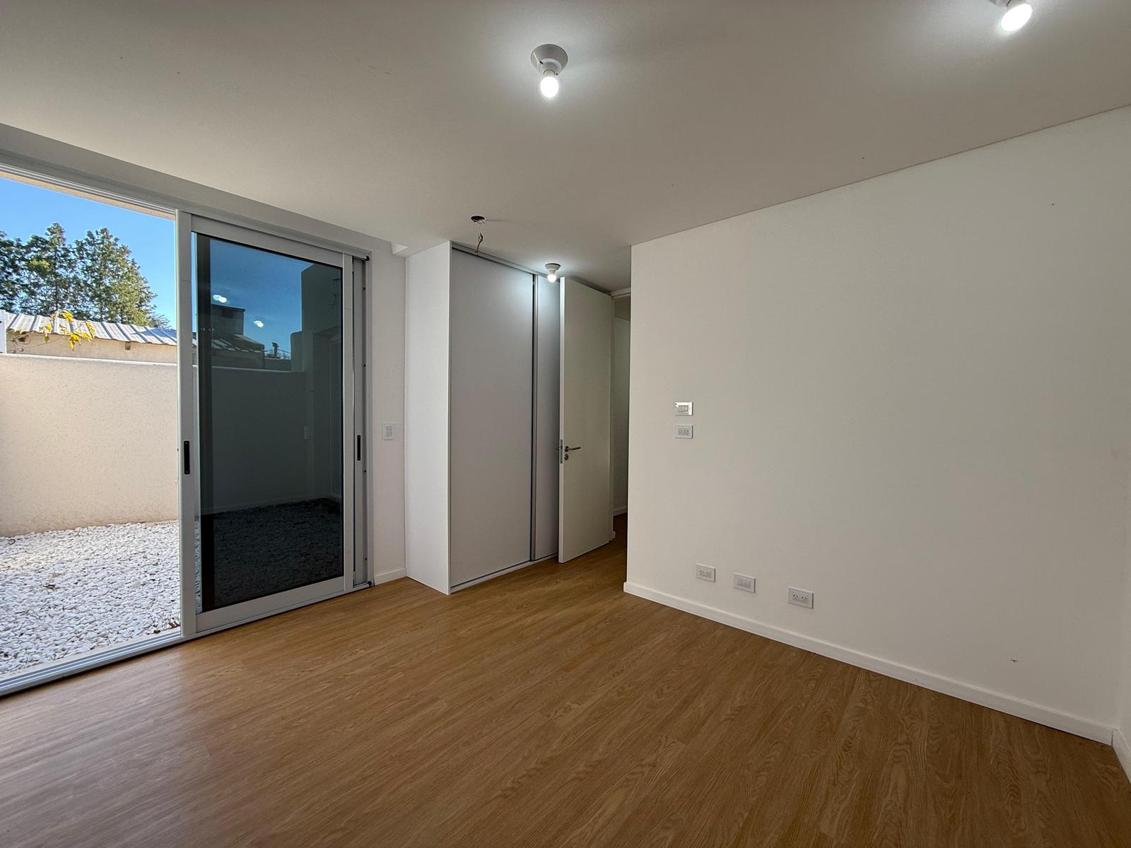 Descripción: Las viviendas del contrafrente se emplazan en una planta, donde se proyecta el comedor-cocina, lavadero, toilette, dos habitaciones, un baño, habitación principal con baño en suite y un extenso living con visuales hacia el exterior. Todas las tipologías se distribuyen a través de una apertura central, señalizada a través de una doble altura, que se utiliza para dotar de luz natural la parte central de este cuerpo y generar mayor esbeltez. Así mismo, todos los muros exteriores serán revestidos con material acrílico texturado y estarán compuestos por amplias aberturas con doble vidriado hermético (DVH).