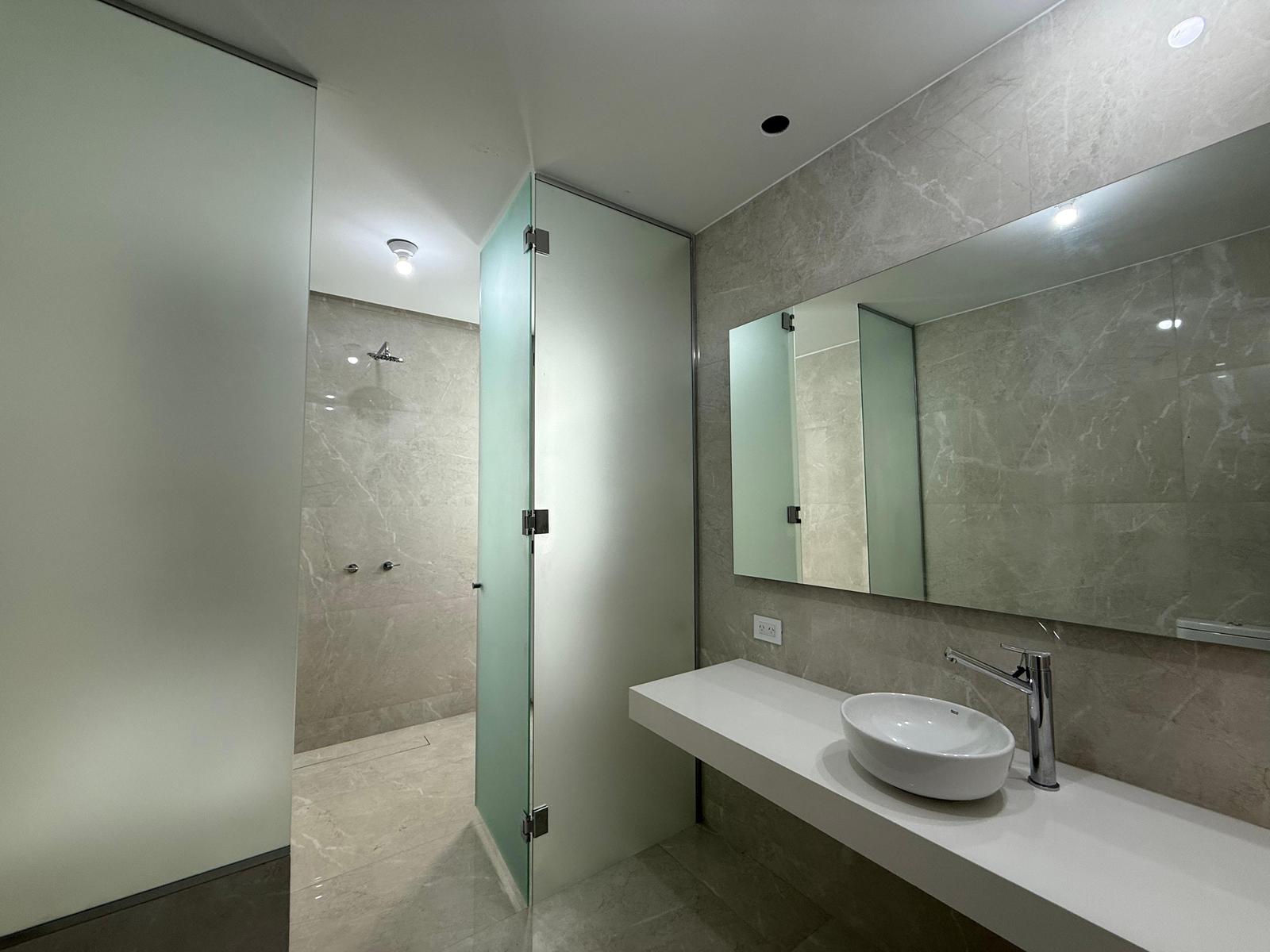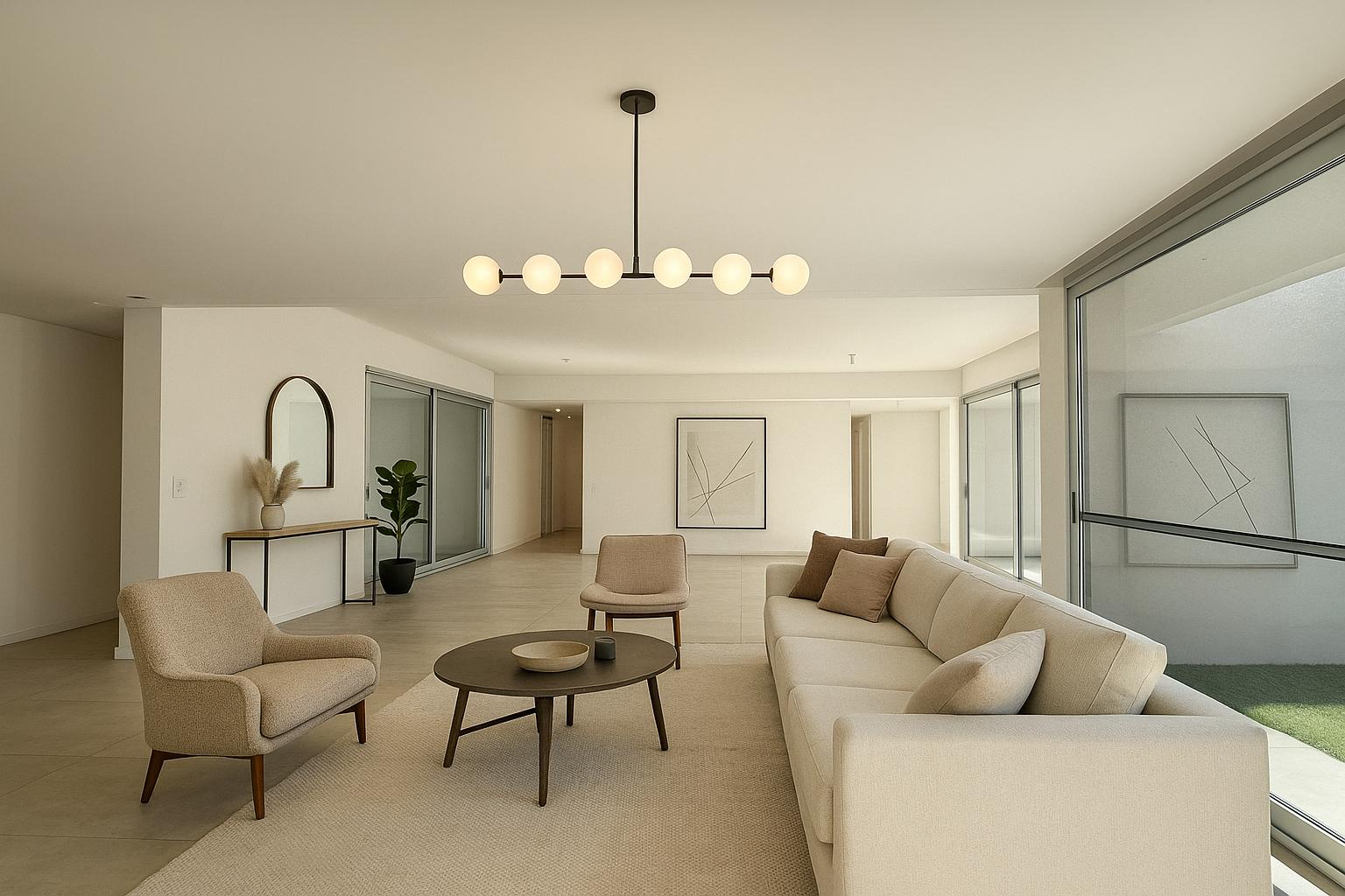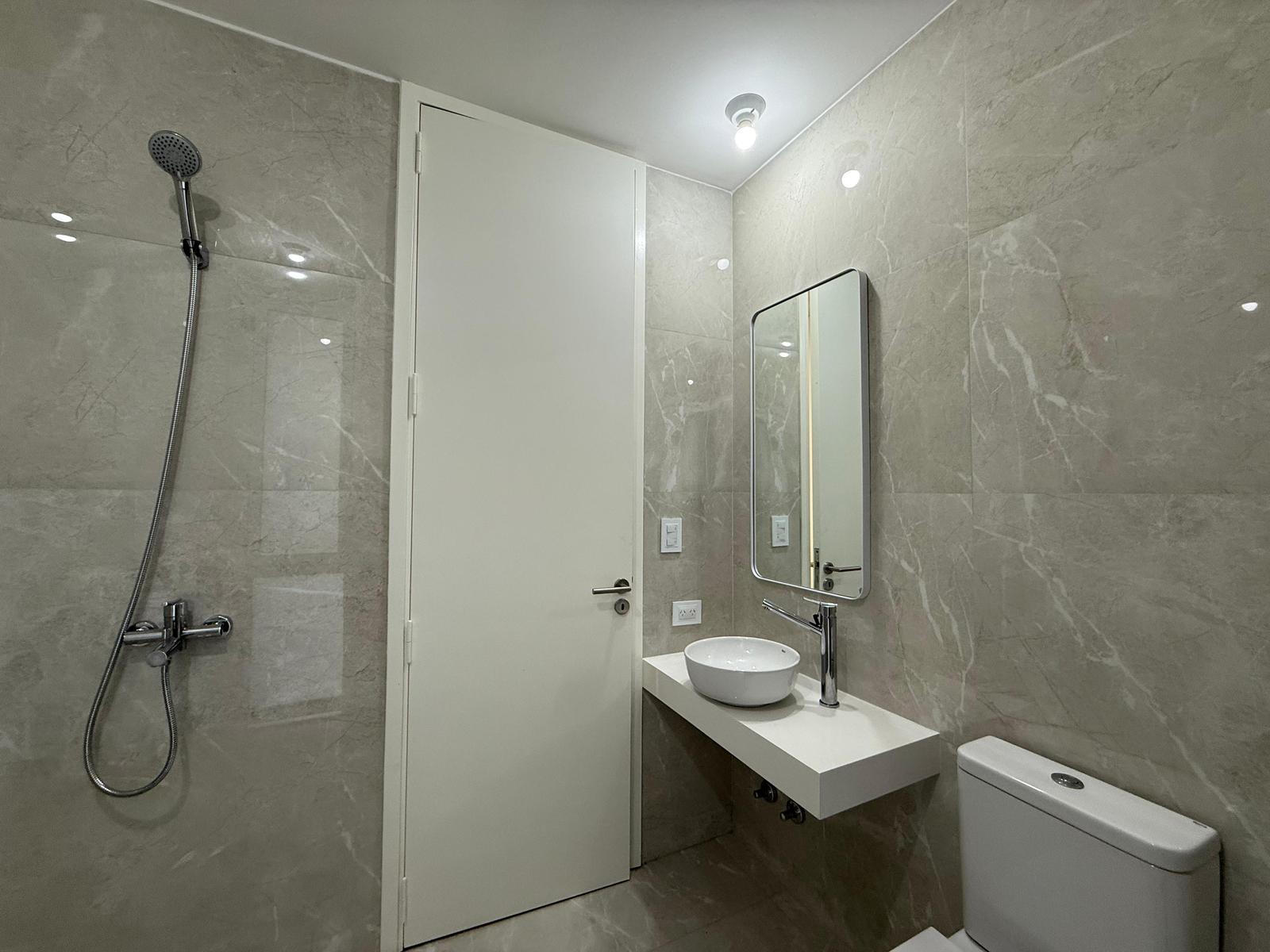 Descripción: Las viviendas del contrafrente se emplazan en una planta, donde se proyecta el comedor-cocina, lavadero, toilette, dos habitaciones, un baño, habitación principal con baño en suite y un extenso living con visuales hacia el exterior. Todas las tipologías se distribuyen a través de una apertura central, señalizada a través de una doble altura, que se utiliza para dotar de luz natural la parte central de este cuerpo y generar mayor esbeltez. Así mismo, todos los muros exteriores serán revestidos con material acrílico texturado y estarán compuestos por amplias aberturas con doble vidriado hermético (DVH).