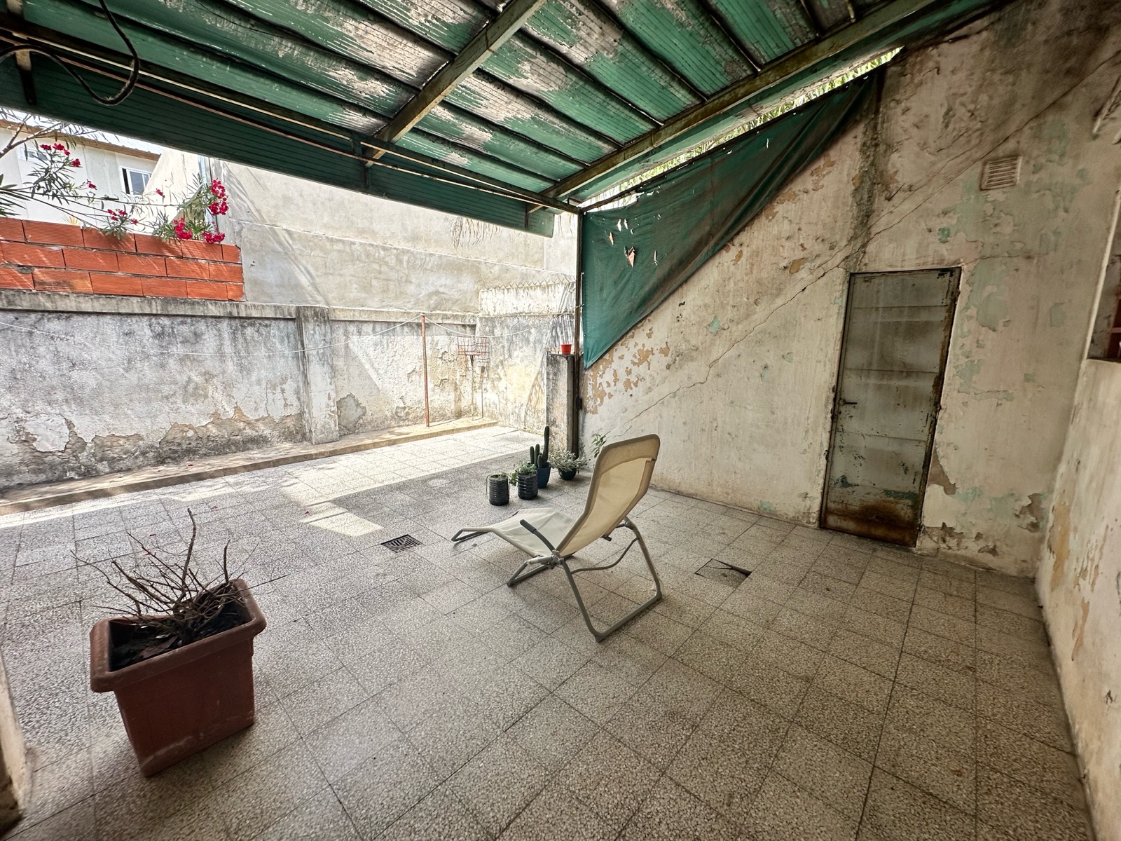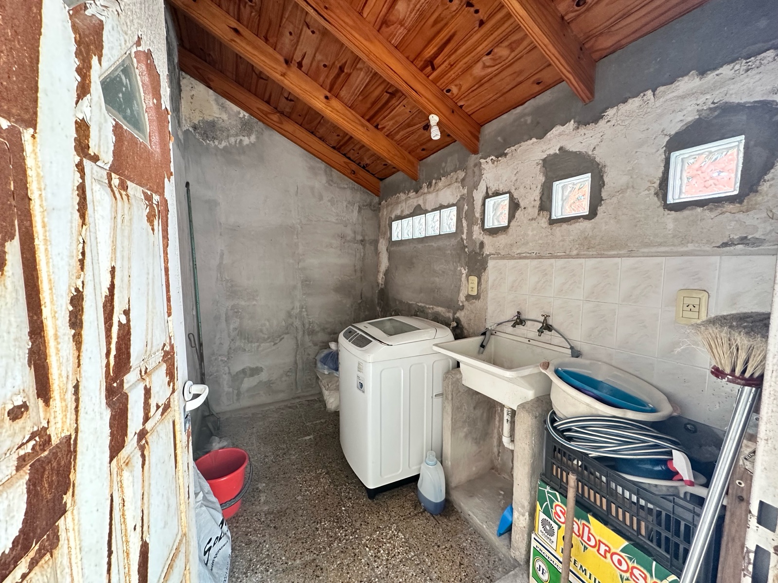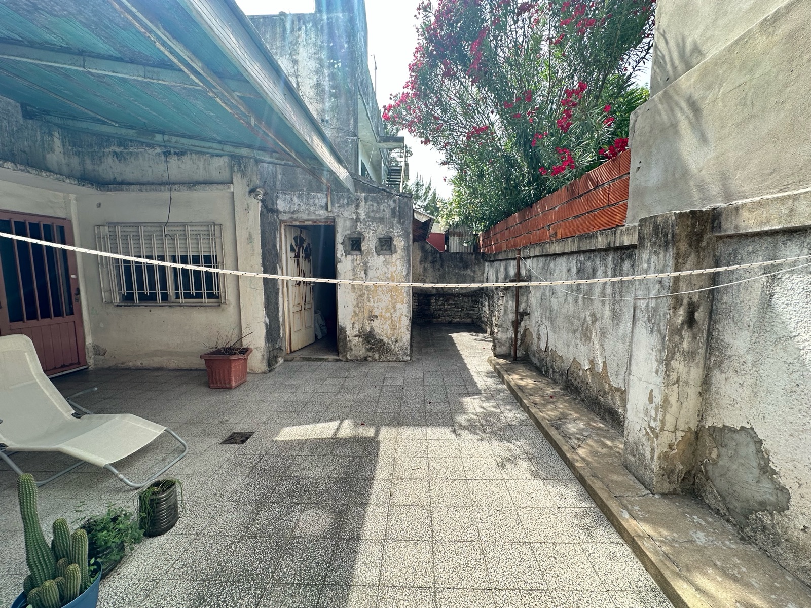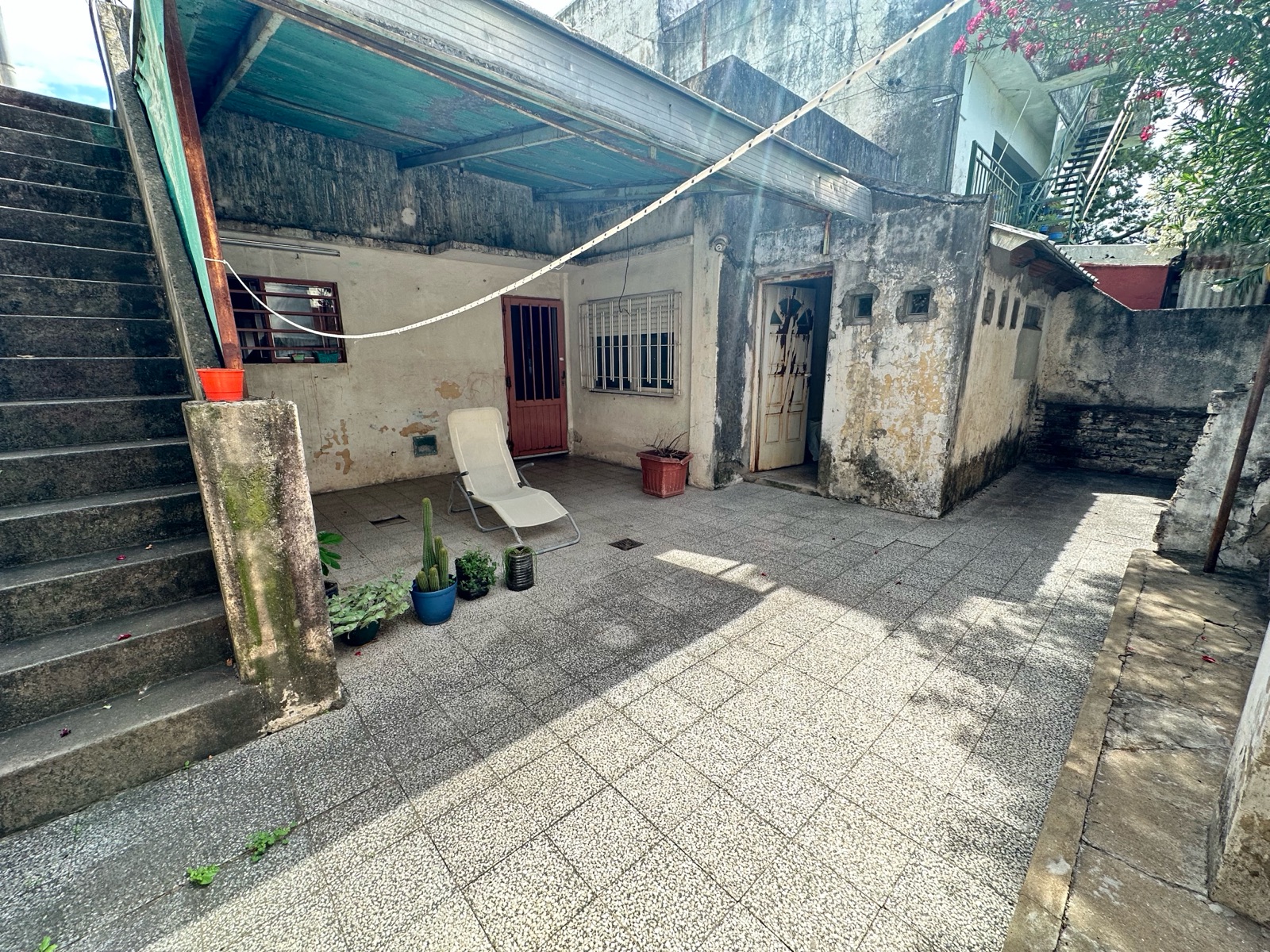 Cuenta con un amplio patio, en el cual se encuentra un lavadero y una escalera que da acceso a la terraza. Ideal para reciclar.