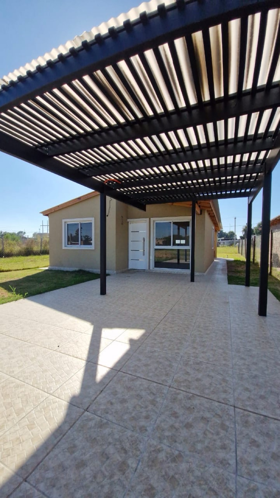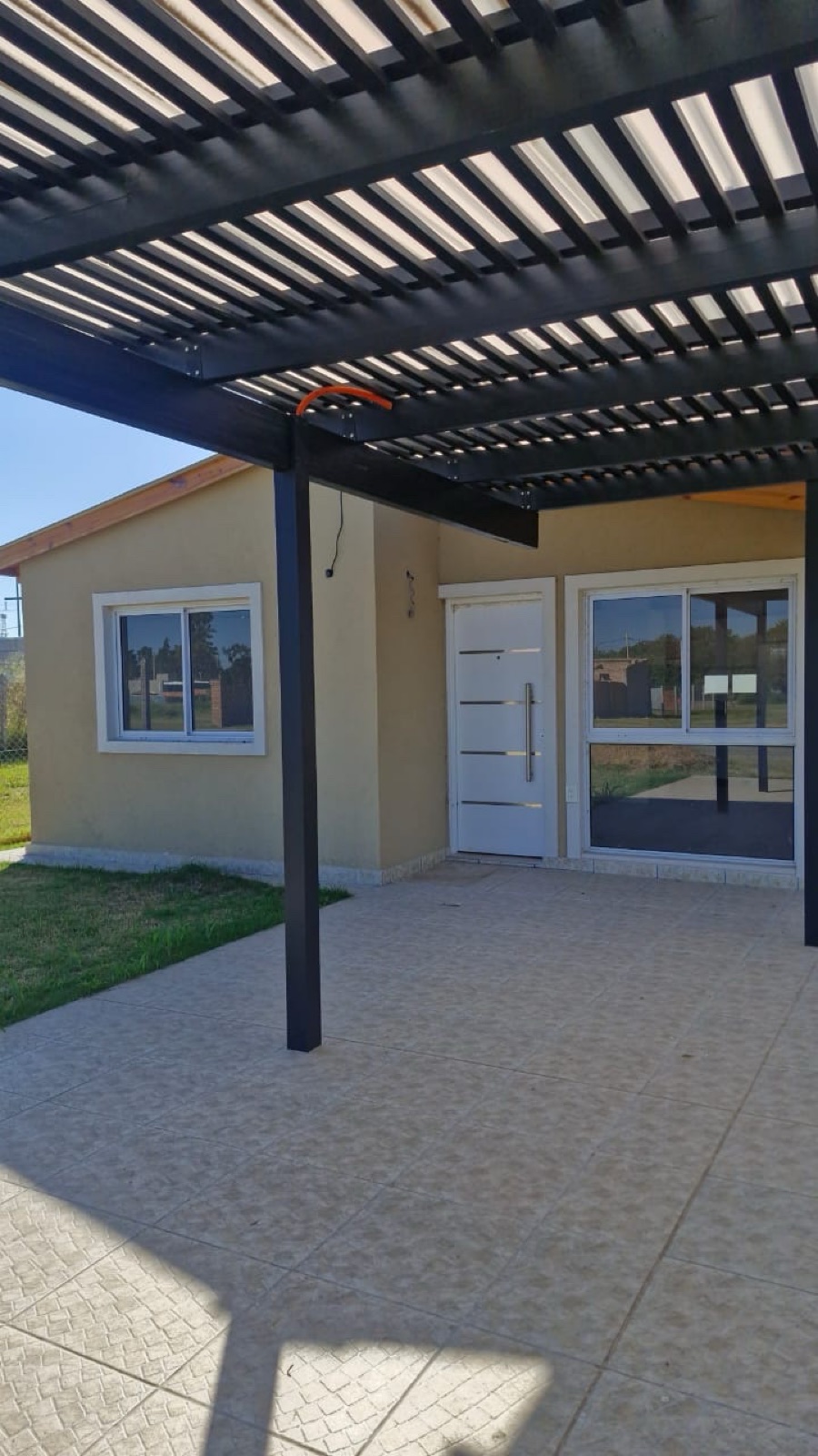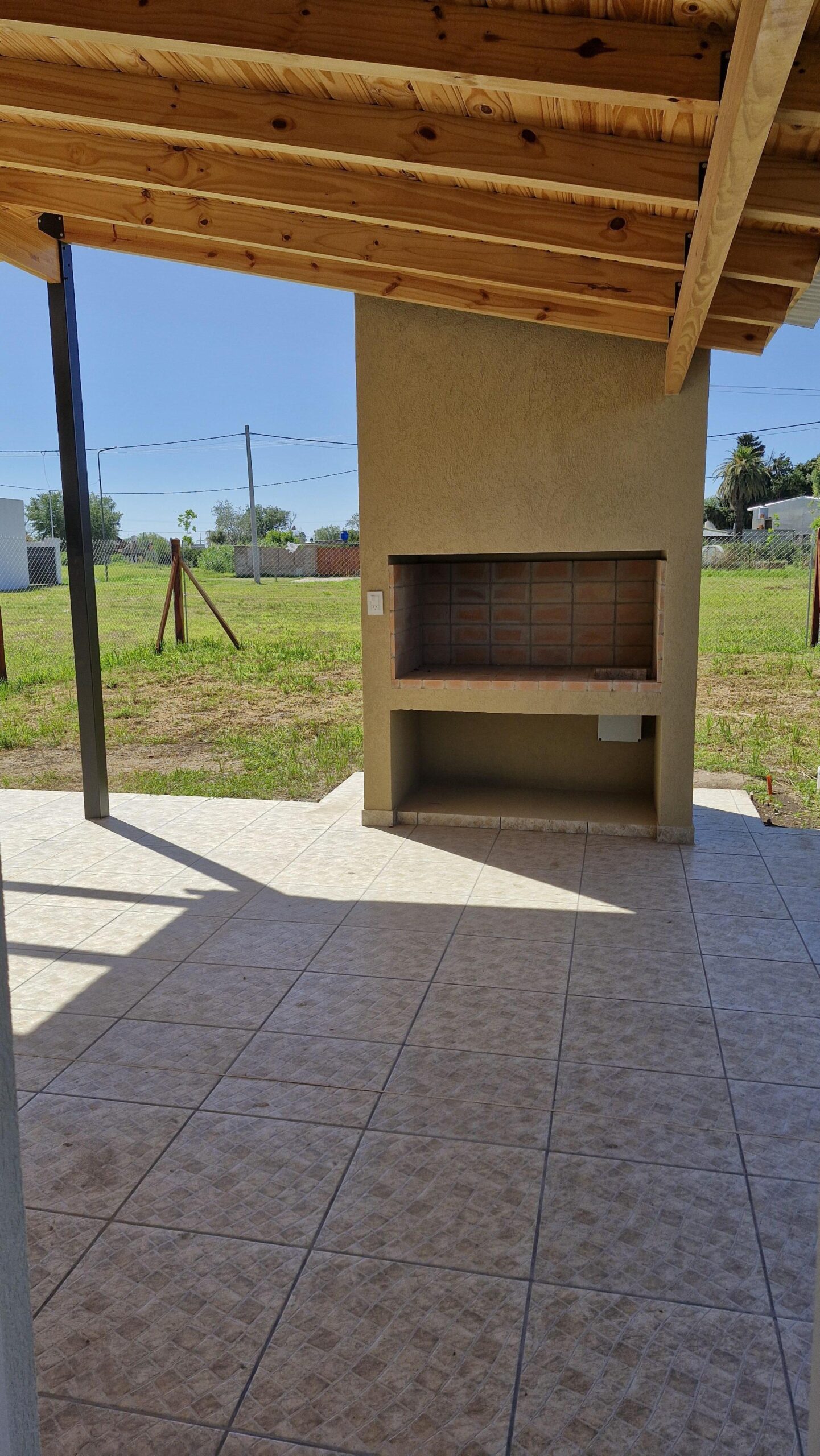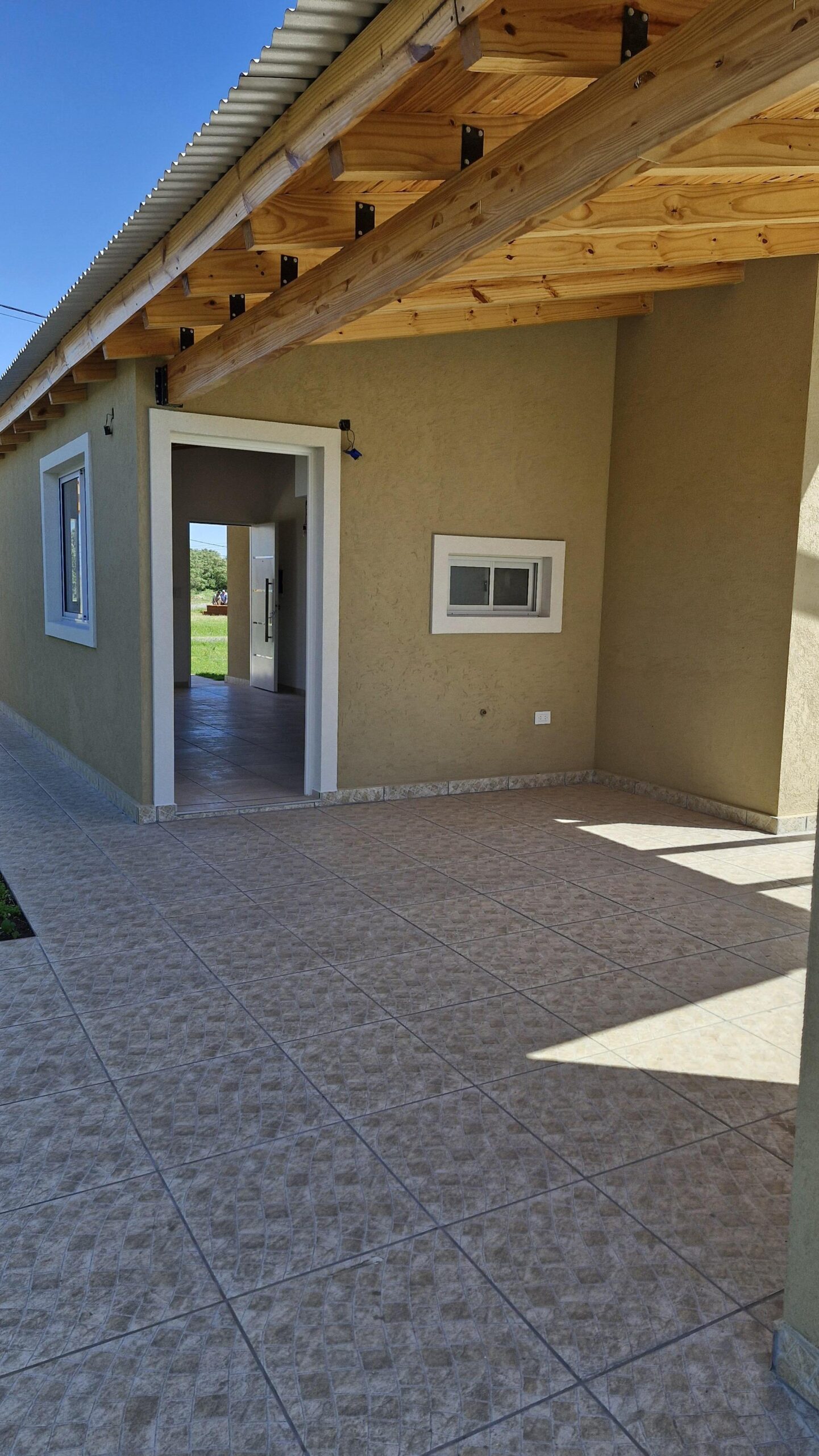 Descripción: Casa estilo chalet a estrenar desarrollada en una planta, con un diseño funcional y luminoso. Cuenta con dos dormitorios con espacio previsto para placares empotrados y un baño completo con receptáculo de ducha y ventilación natural, lo que garantiza buena iluminación y circulación de aire.