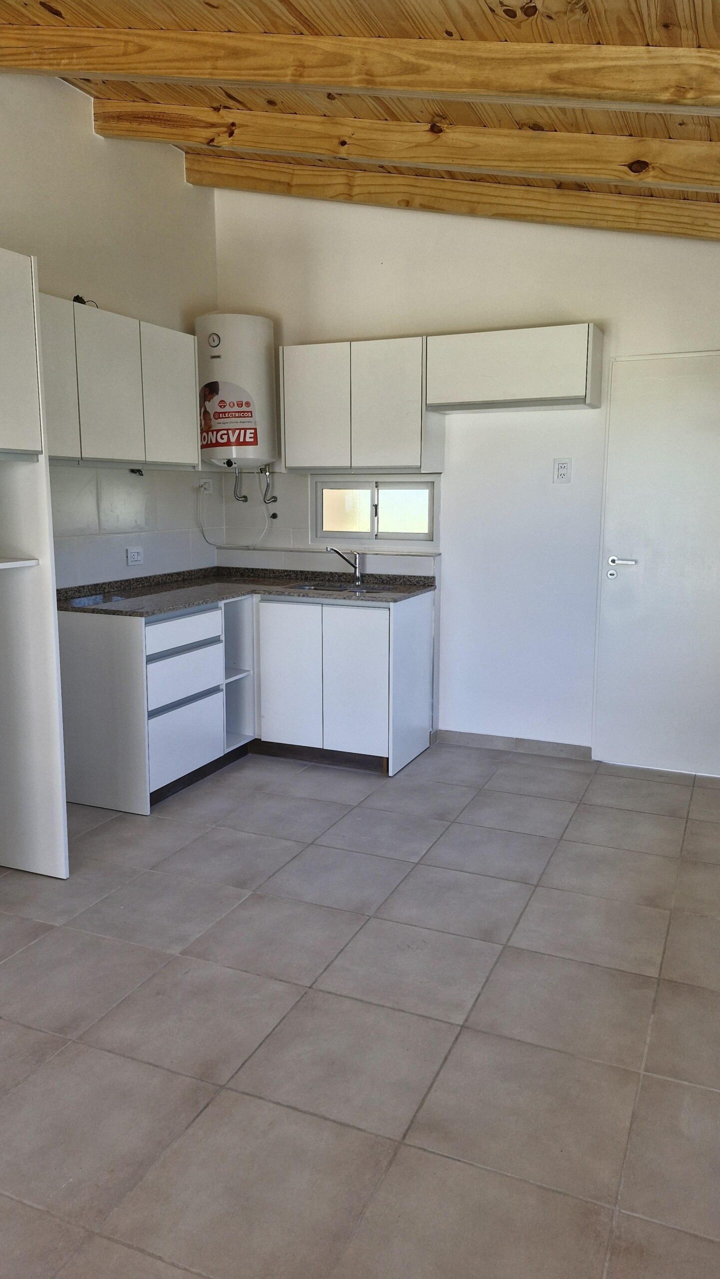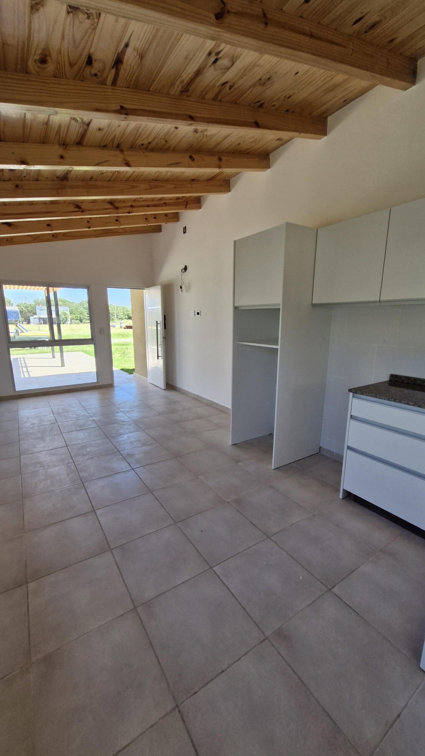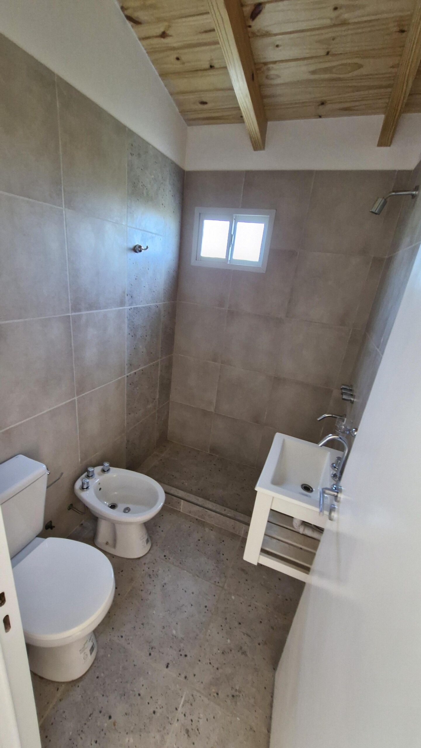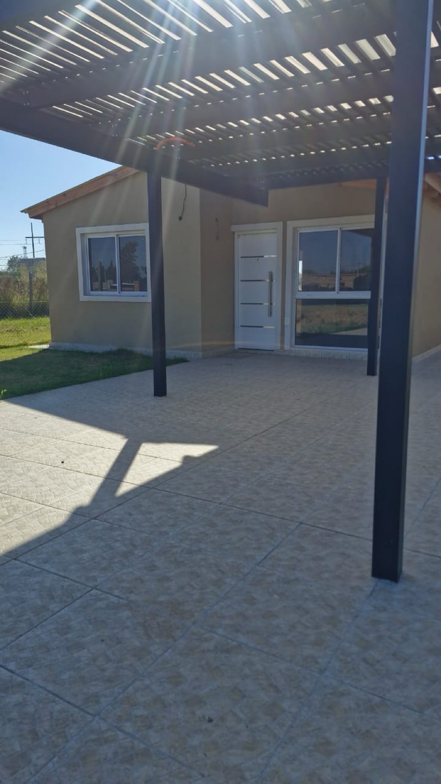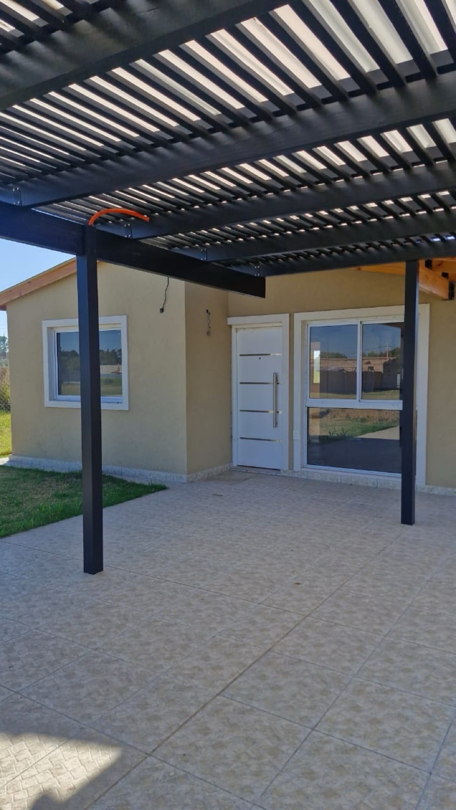 Descripción: Casa estilo chalet a estrenar desarrollada en una planta, con un diseño funcional y luminoso. Cuenta con dos dormitorios con espacio previsto para placares empotrados y un baño completo con receptáculo de ducha y ventilación natural, lo que garantiza buena iluminación y circulación de aire.