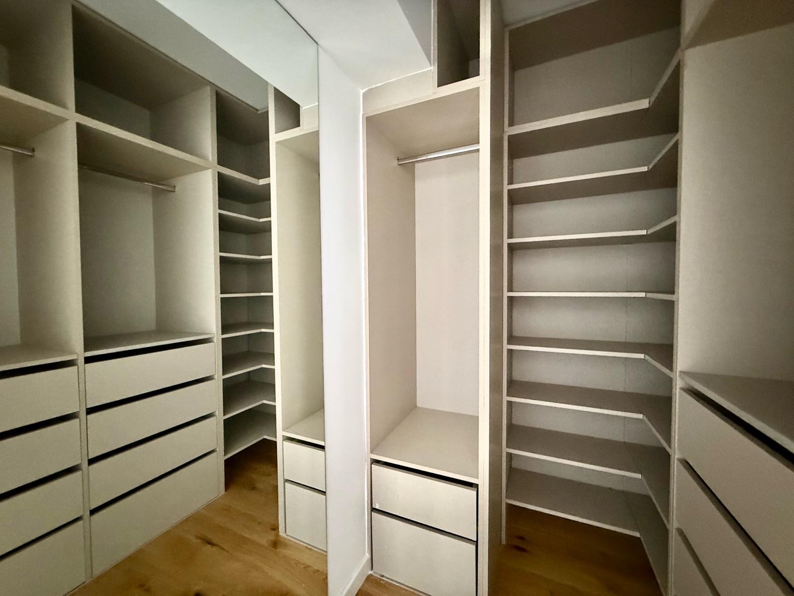 – Pisos flotantes de madera en espacios principales