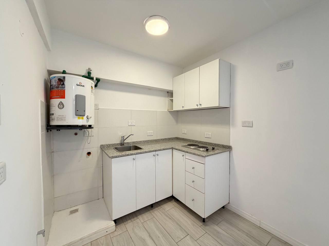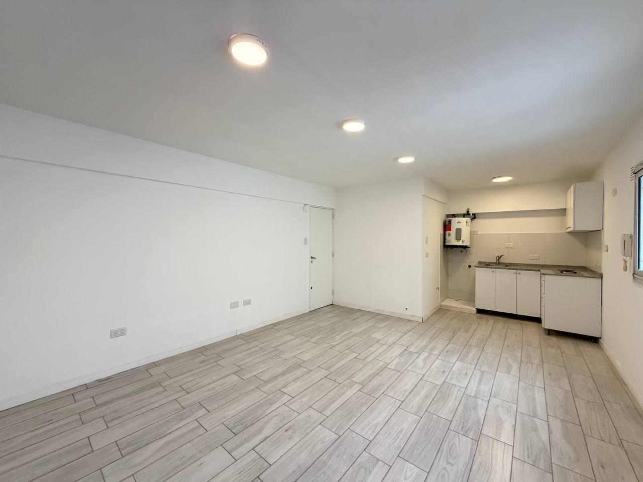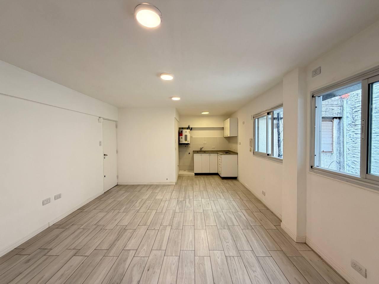 Descripción: Ingresamos al departamento y nos encontramos con un living comedor, integrado a la cocina con espacio para lavarropas y heladera. El ambiente cuenta con ventanas lo que permite el ingreso de luz natural, un dormitorio con placares y persianas y un baño completo con ducha. El departamento fue semi reciclado.