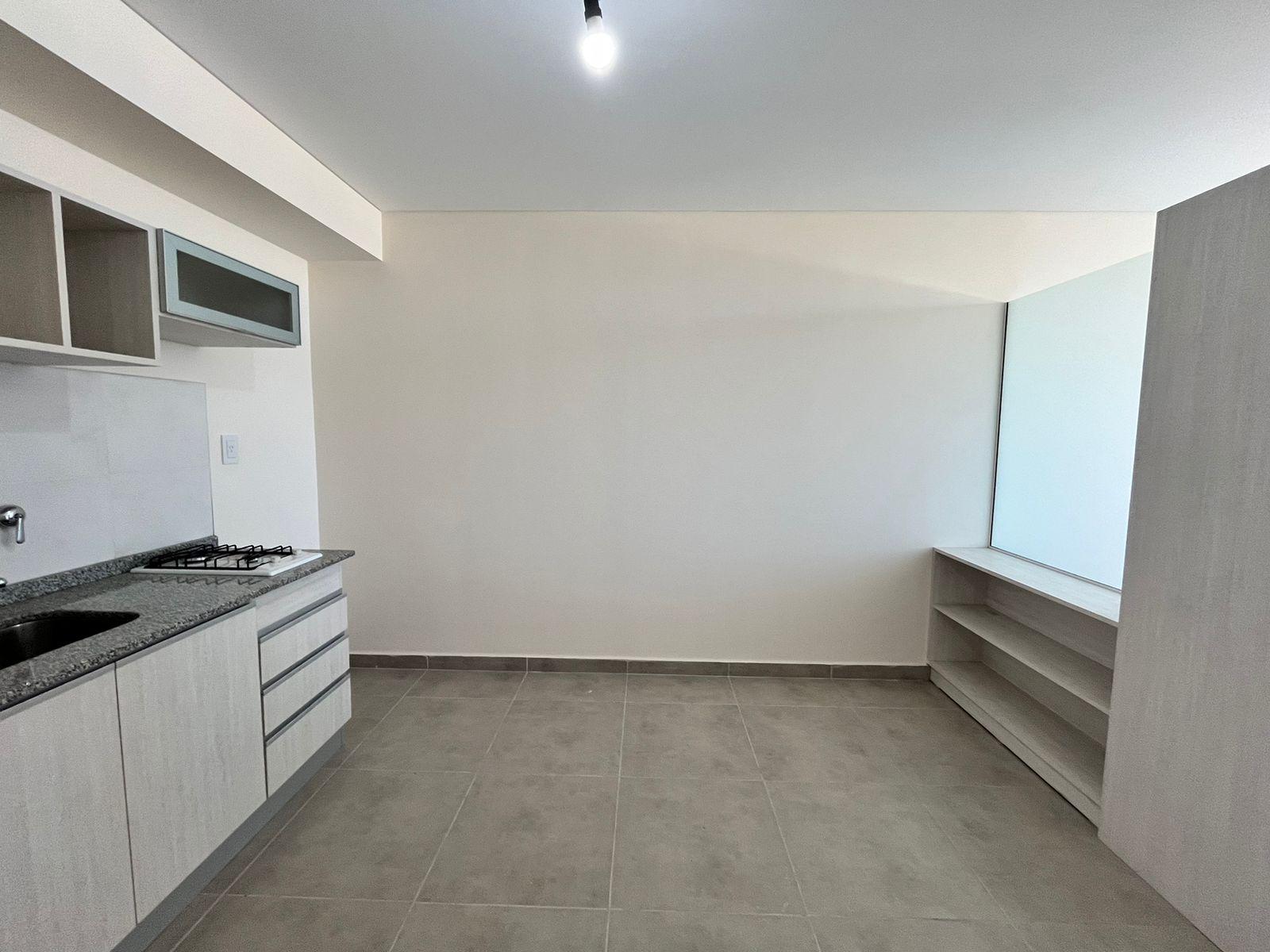 Descripción: Se ubica al contrafrente del noveno piso. Cuenta con doble balcón (uno interno y otro al contrafrente) y tiene ventilación cruzada. El balcón de atrás sirve además como lavadero y contiene el calefón. La cocina es a gas y cuenta con anafe empotrado a la mesada. El ambiente esta separado en living-comedor y dormitorio por un mueble separador de diseño, que además sirve como placar de guardado. El dormitorio tiene salida al balcón con vista despejada al este. Muy luminoso.