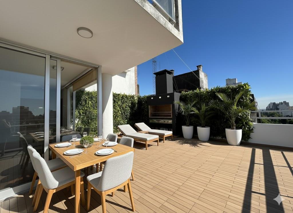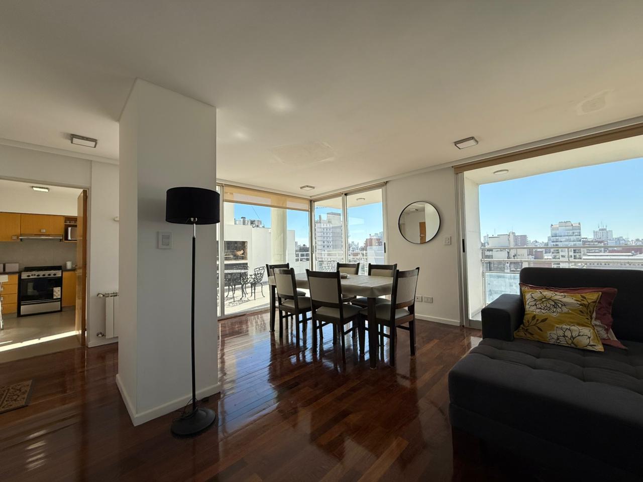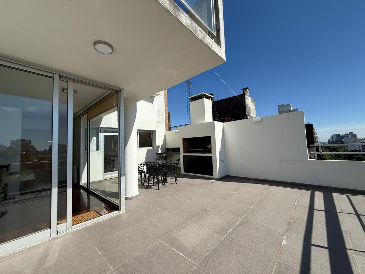 Descripción: Ubicado en el piso 11 (no último), este piso exclusivo ofrece amplitud, luminosidad y una excelente distribución. Al ingresar, nos recibe un living comedor con salida a una terraza de uso exclusivo, equipada con parrillero, mesada con bacha y una vista privilegiada al Boulevard Oroño.