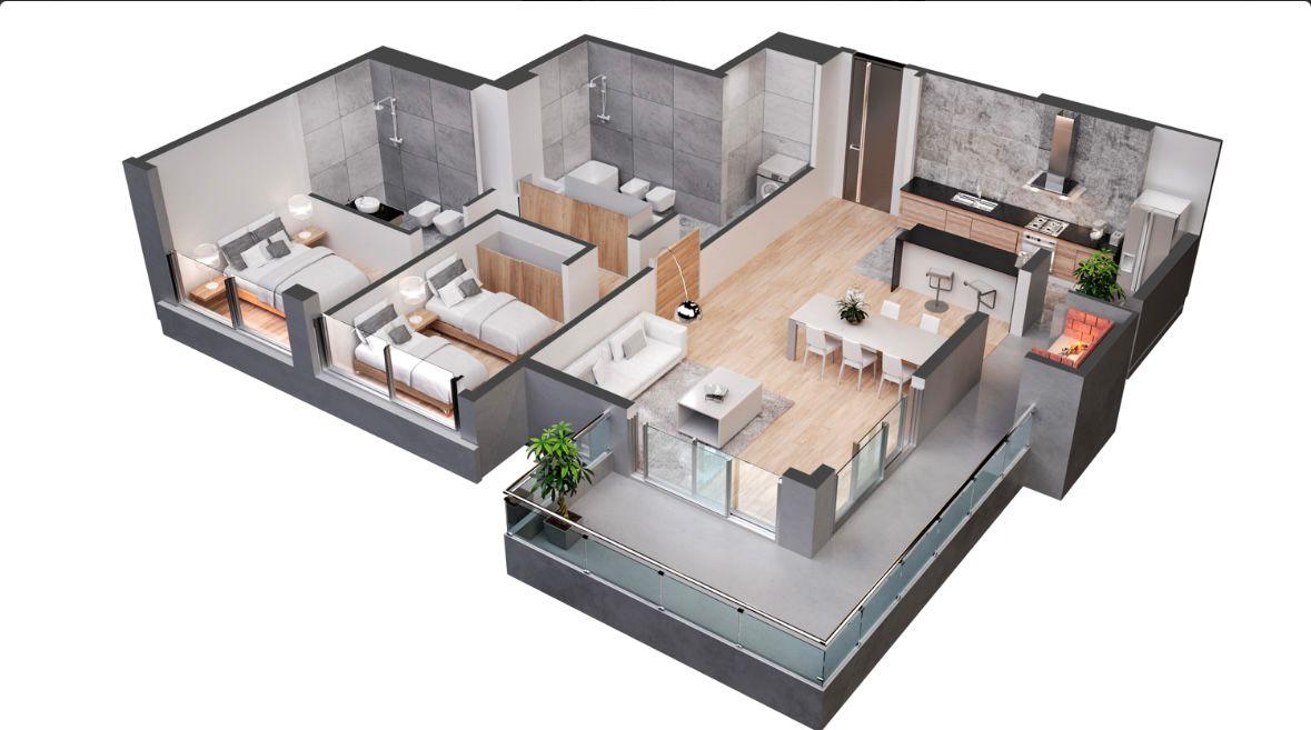Tipología: Departamento de dos dormitorios con cochera en Fisherton, Rosario