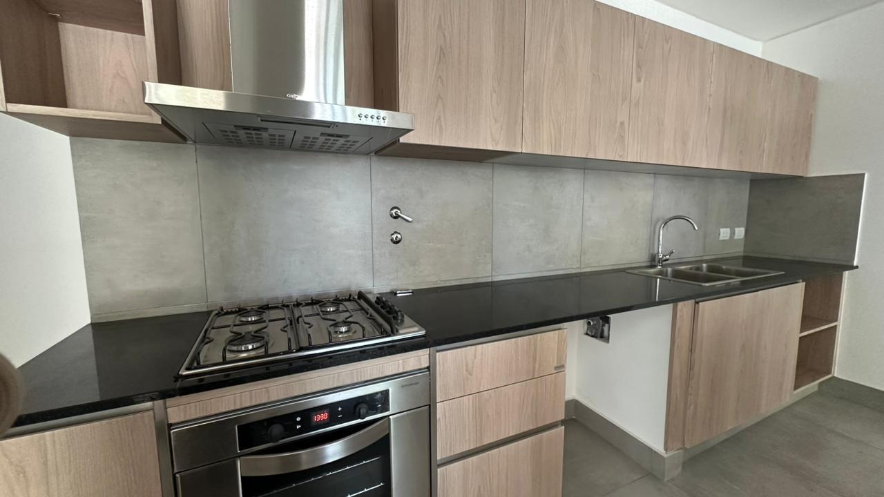 Descripción: Departamento moderno y luminoso, ubicado en un primer piso. Cuenta con cocina con amoblamientos premium integrada a un amplio living-comedor con salida a un gran balcón al frente con parrillero. La cocina está equipada con horno y gas natural y una barra desayunadora que aporta funcionalidad y espacio de apoyo. Ofrece la posibilidad de incorporar lavavajillas.