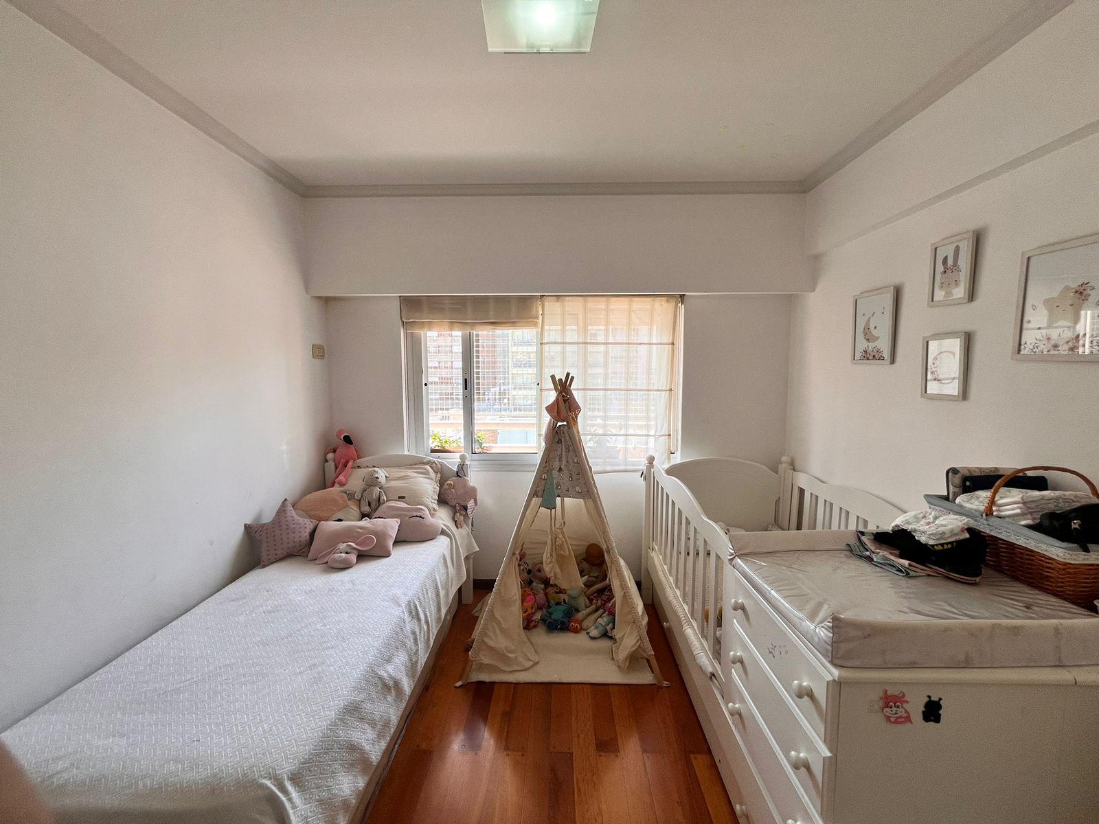 Descripción: Ubicado en la tercera planta, al contrafrente, ingresamos a este semipiso, pasando por un pasillo recibidor y un toilette de invitados. El ambiente principal es un living-comedor, con salida a un balcón corrido con orientación este. La cocina esta separada, con comedor diario, a gas y ventila hacia el aire luz del edificio. Desde la cocina se puede acceder al tercer dormitorio que actualmente se usa como escritorio/oficina pero fácilmente podría readaptarse a dormitorio con acceso desde el pasillo del íntimo. Hacia el íntimo nos encontramos con los dos dormitorios con salida al balcón, y placares empotrados. Además un baño completo con bañera, mampara y ventilación natural.