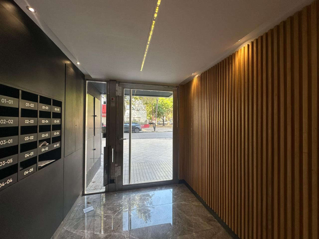 El edificio ofrece espacios comunes pensados para una vida urbana completa: SUM, sector de coworking, parrillero, laundry, bicicleteros, ascensor y sistema de seguridad monitoreada. Cuenta con servicios de gas y electricidad habilitados.