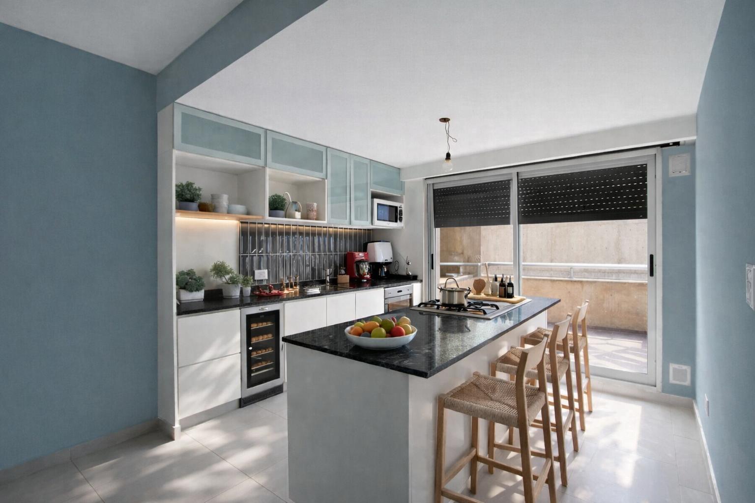 Departamentos de dos dormitorios diseñados con una impronta moderna y funcional, que priorizan la amplitud de los espacios y la luminosidad natural. La unidad se compone de un cómodo estar-comedor con cocina integrada, generando un ambiente social amplio y versátil.