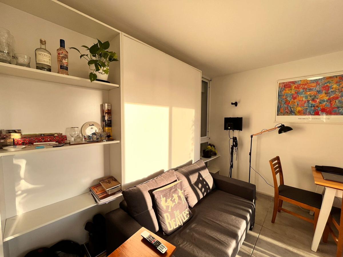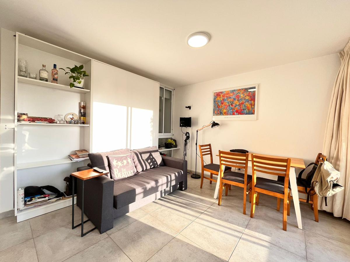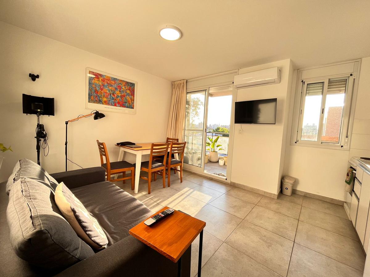 Descripción: Ingresamos al departamento de un dormitorio, ubicado en el 4to piso del edificio a un pasillo que comunica los distintos ambientes. Cuenta con un baño completo, un dormitorio de considerables medidas, y el ambiente principal con cocina eléctrica integrada y suficiente espacio como para mesa y sillón. Salida al balcón aterrazado al frente, con vista despejada.