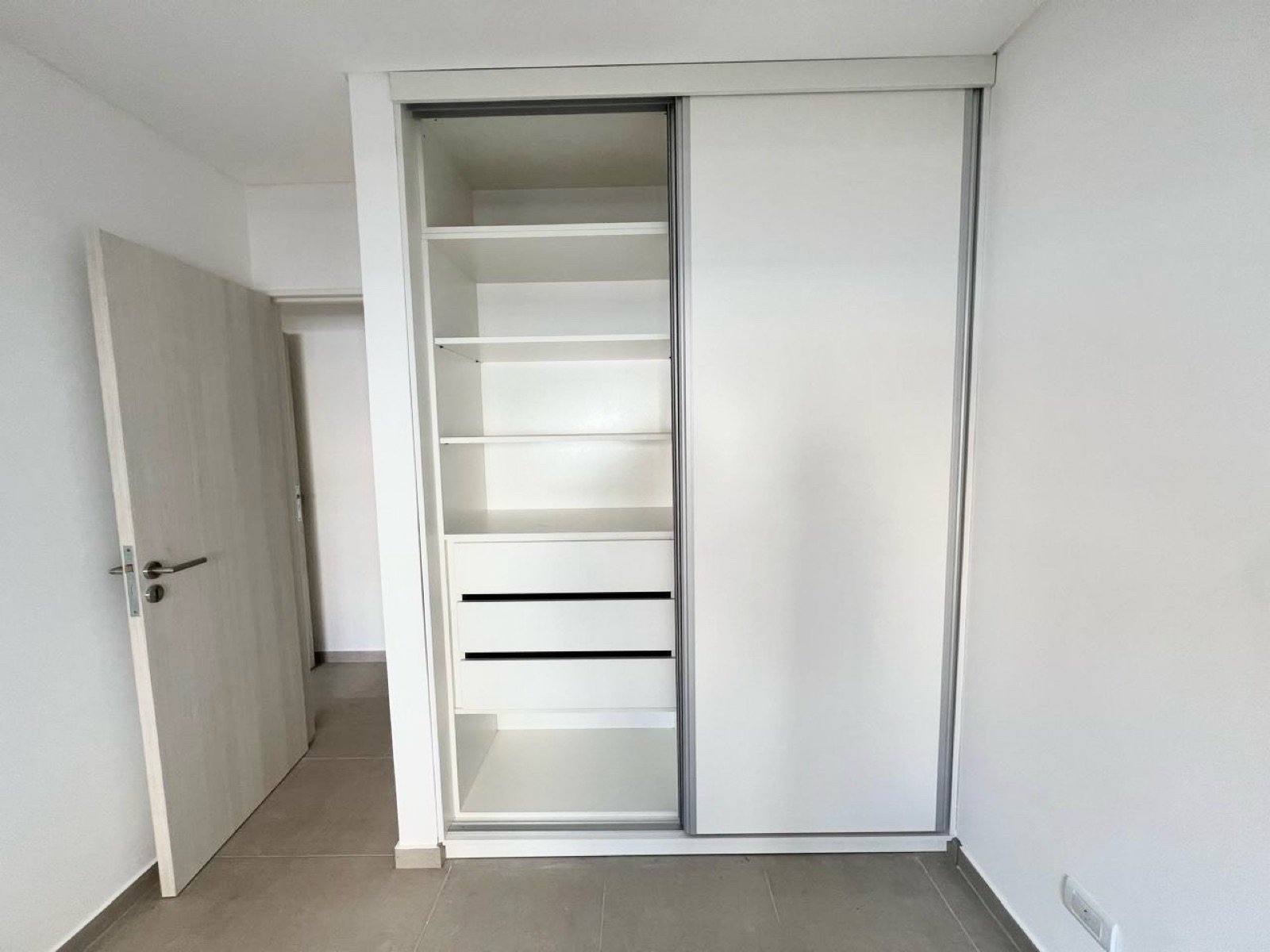Descripción: Ingresamos al departamento por un hall de distribución. Nos encontramos con la cocina sectorizada en el costado izquierdo. El living comedor tiene salida al balcón con orientación oeste. Al sector íntimo nos dirige un pasillo de distribución desde el cual tenemos acceso al toilette, los dormitorios y segundo baño completo. El departamento tiene la pre instalación de aire acondicionado F/C. y es totalmente eléctrico.