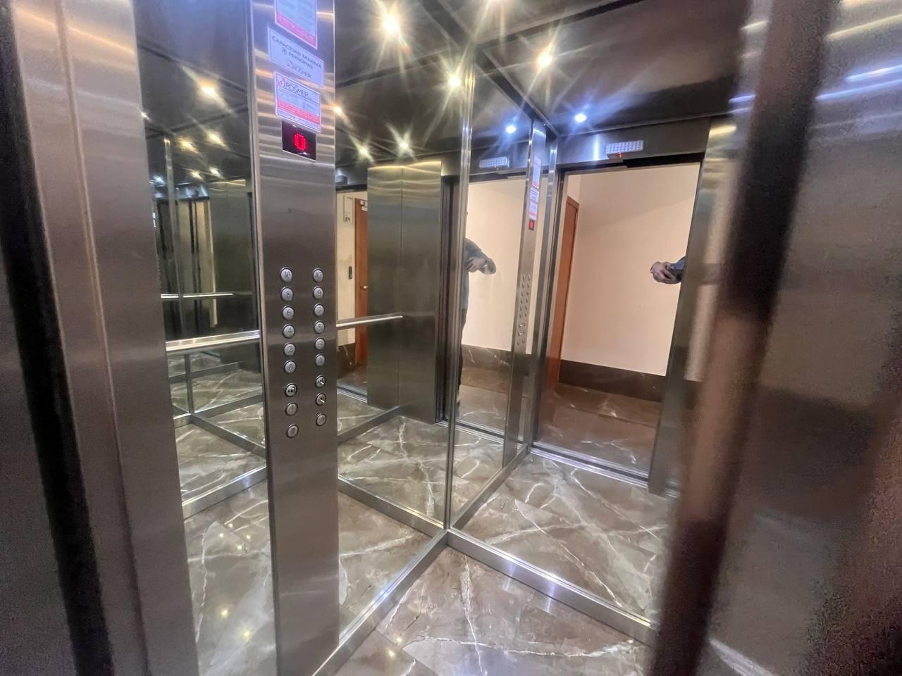 – Ascensor de acero inoxidable y piso de porcelanato con ingreso a través de chip de seguridad.
