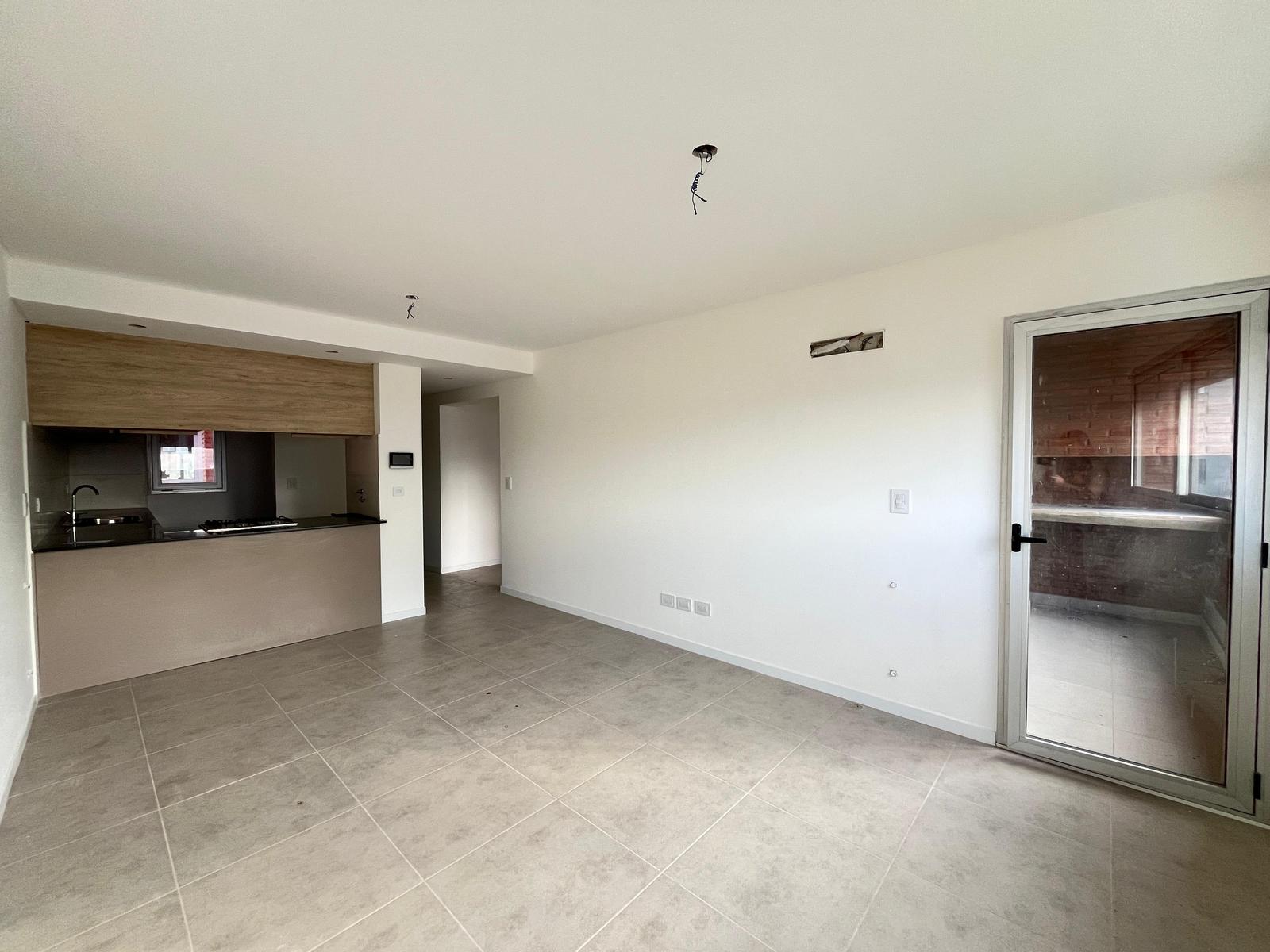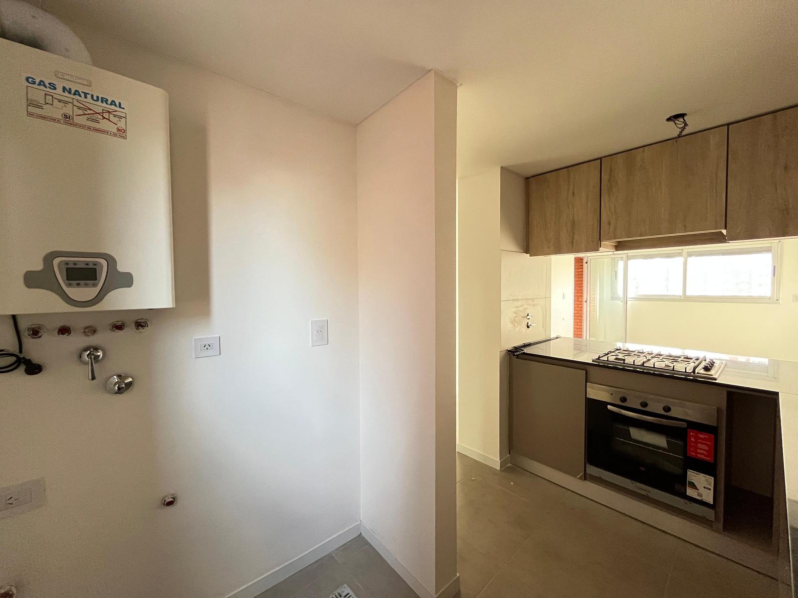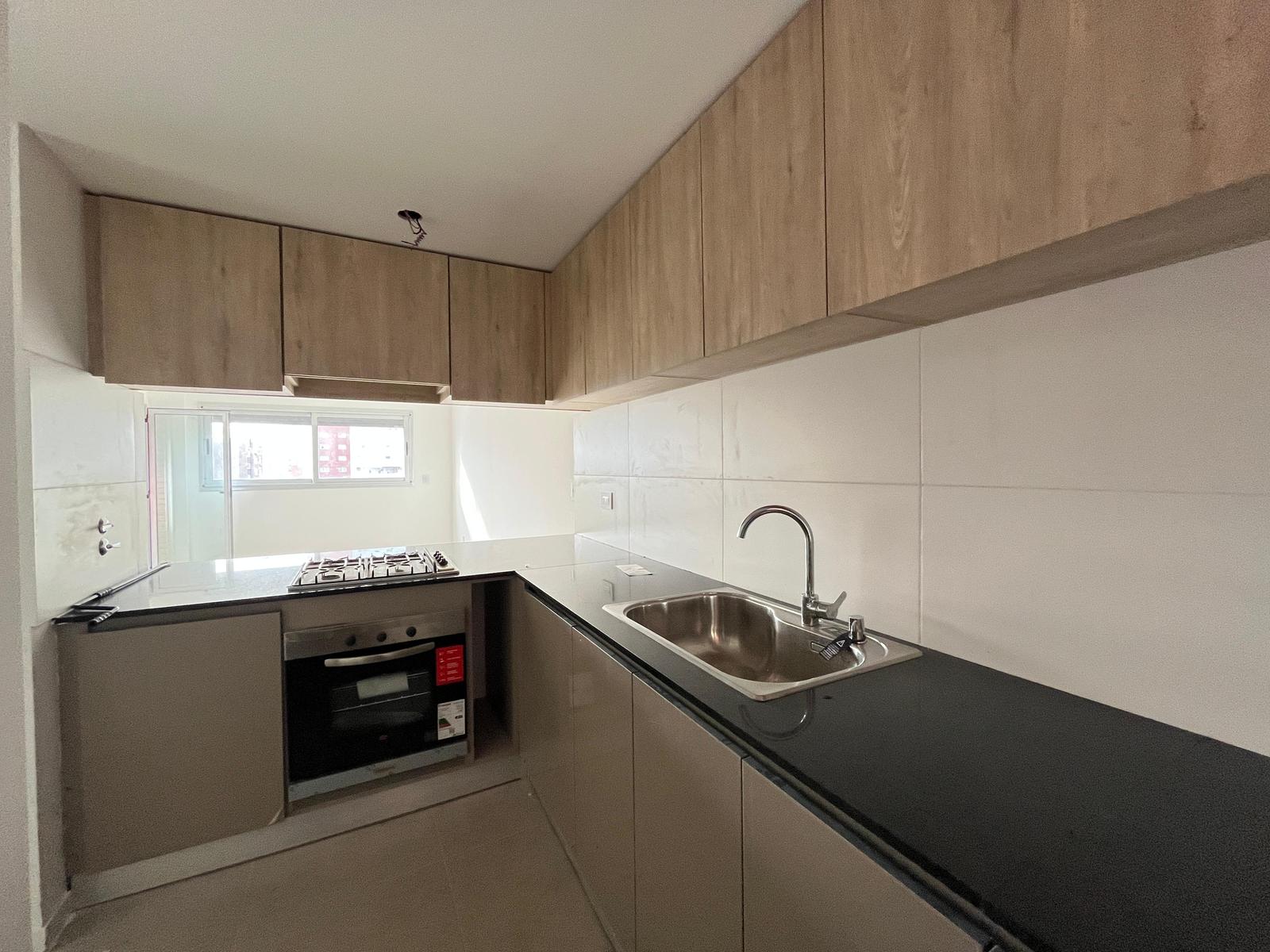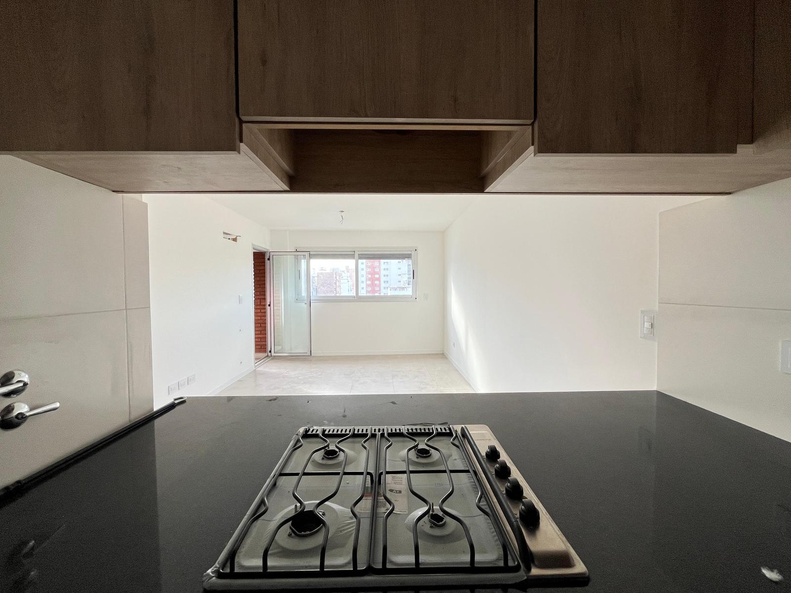 Descripción: Ingresamos al living comedor donde tenemos la cocina a la derecha. La misma cuenta con horno y anafes empotrados, mesada de mármol y amoblamiento con puertitas de cierre suave. A la izquierda está el baño y a continuación tenemos el comedor con ventanas que dan al contrafrente y un ingreso al balcón que se encuentra detrás del dormitorio. Desde el dormitorio también tenemos acceso al mismo.