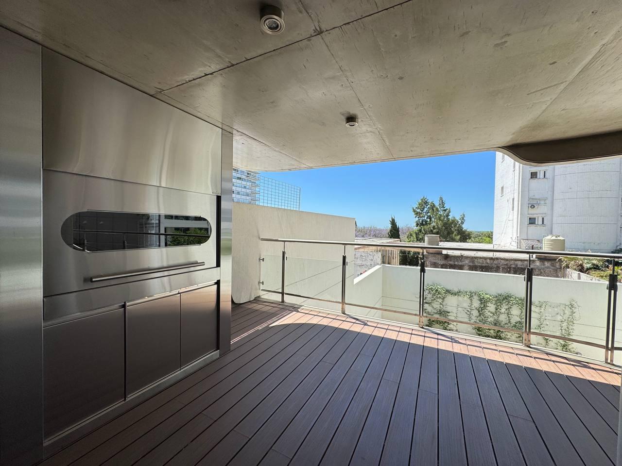 Descripción: Semipiso. Doble ingreso. Al ingresar al departamento nos encontramos con un living comedor de grandes dimensiones, cocina separada totalmente equipada con una isla flotante, ambos ambientes con salida al balcón terraza con parrillero. Toilette de recepción, lavadero independiente con balcón para el tender. Siguiendo por un pasillo distribuidor con lugares de guardado, se encuentran los tres dormitorios, el principal en suite con hidromasaje, vestidor y salida a un balcón al frente, un baño completo con ducha para los dos dormitorios secundarios.