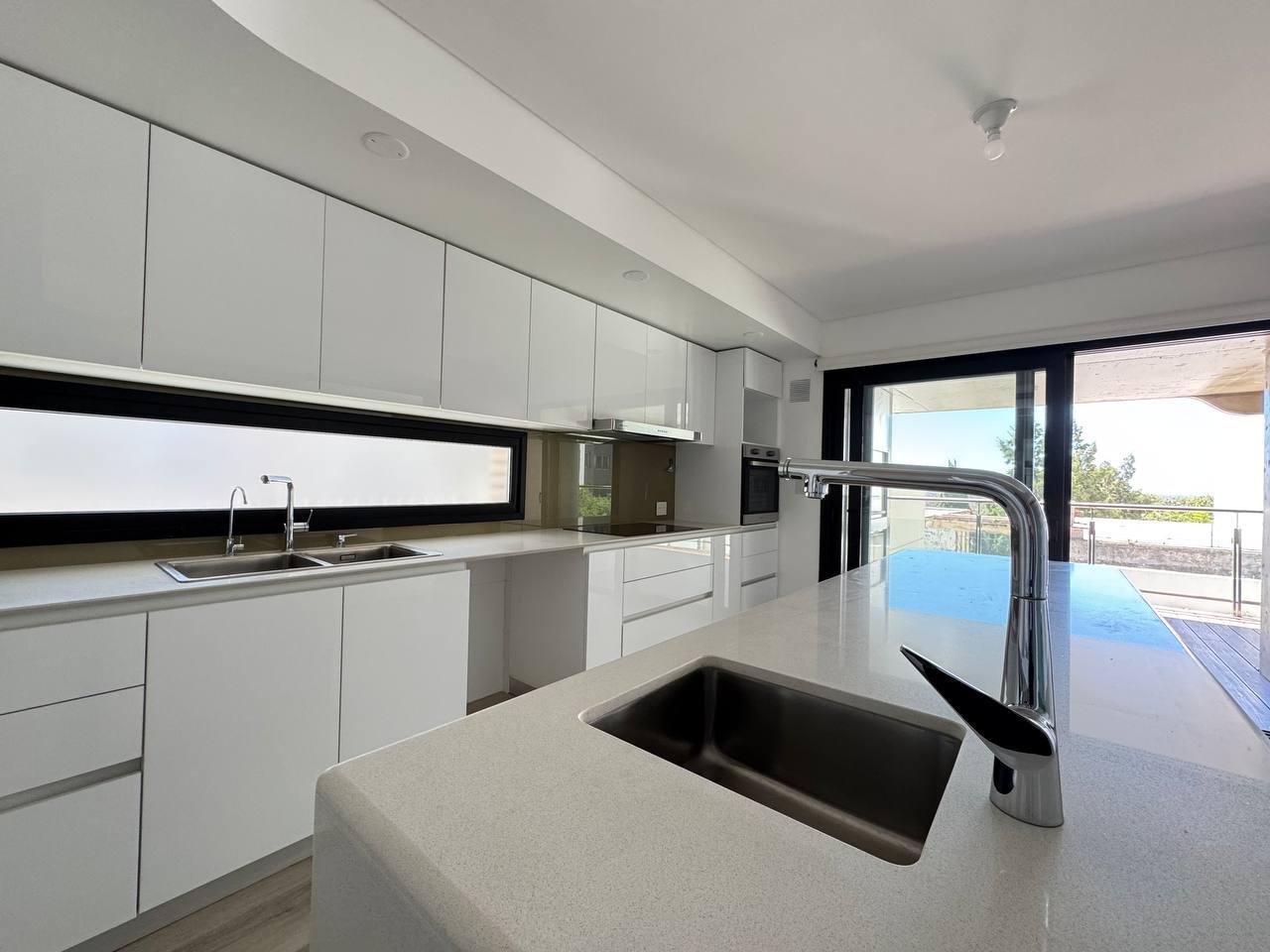 – Cocinas con alacena y bajo mesadas completas, espacio técnico para heladera y lavaplatos, mesada de silestone con pileta triple