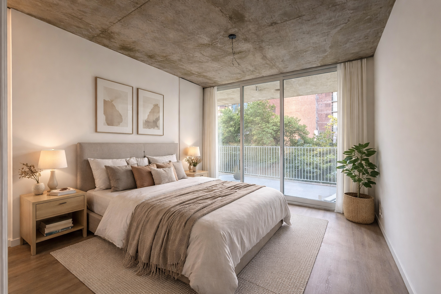 En el intimo un dormitorio con placard y salida al balcón + un baño completo.