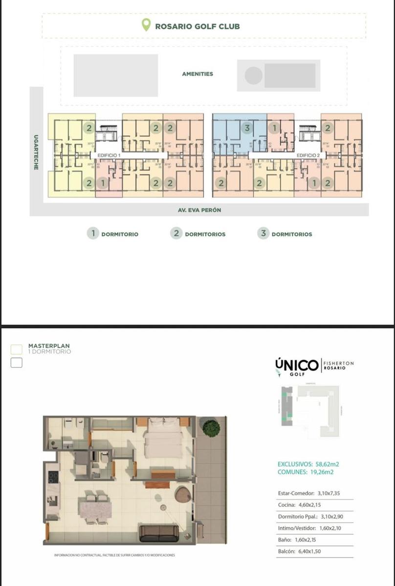 Proyecto: Unico Golf es un proyecto de calidad premium, situado en uno de los barrios más emblemáticos y deseados de Rosario, Fisherton, que te ofrece un estilo de vida sereno y natural. Cuenta con espacios verdes y de recreación, y la cercanía al Rosario Golf Club proporciona vistas únicas, el cual se transforma en un lugar ideal para relajarse y disfrutar de la naturaleza. Posee 56 unidades, de 1, 2 y 3 dormitorios, así como locales comerciales en la planta baja, brindando comodidad y accesibilidad.