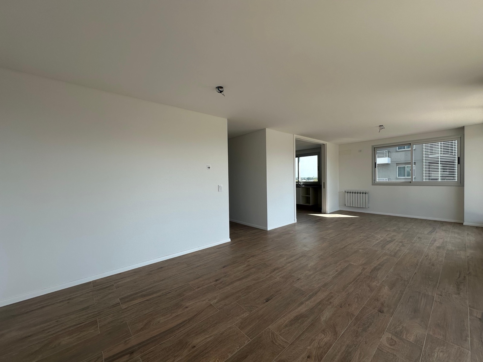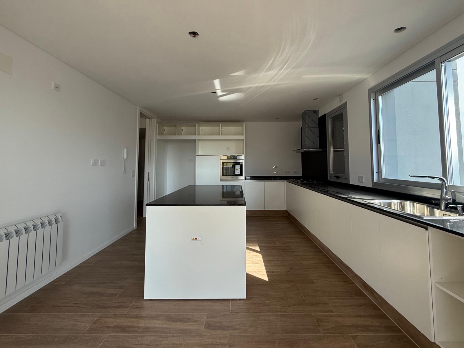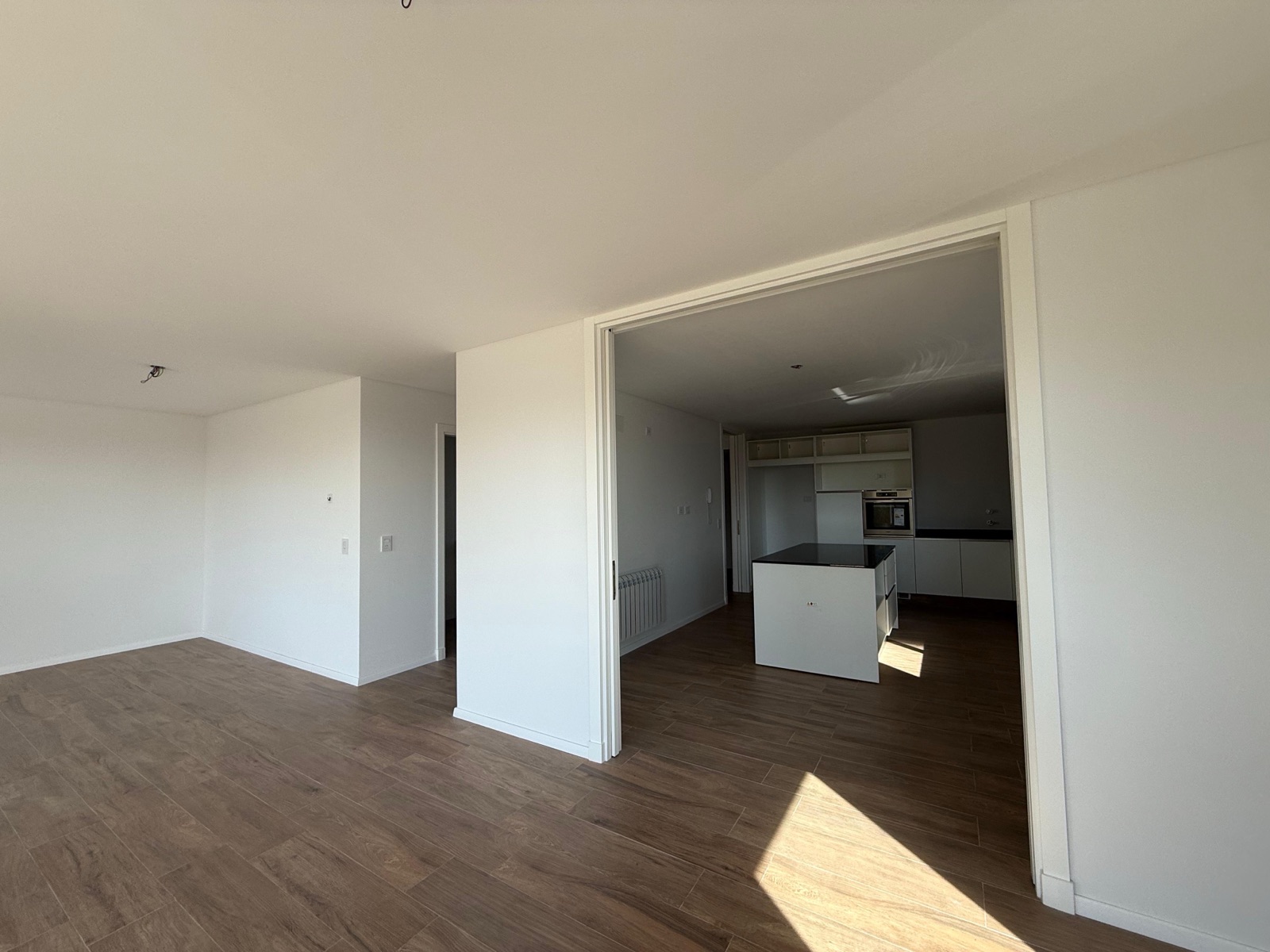 Al ingresar, nos encontramos con un espacioso living-comedor con salida a un balcón corrido al frente, que cuenta con parrillero y una destacada vista al río. La cocina, de generosas dimensiones, se encuentra separada mediante grandes puertas corredizas que permiten integrarla al sector social. Está completamente equipada, con anafe a gas, horno eléctrico y una amplia isla central.