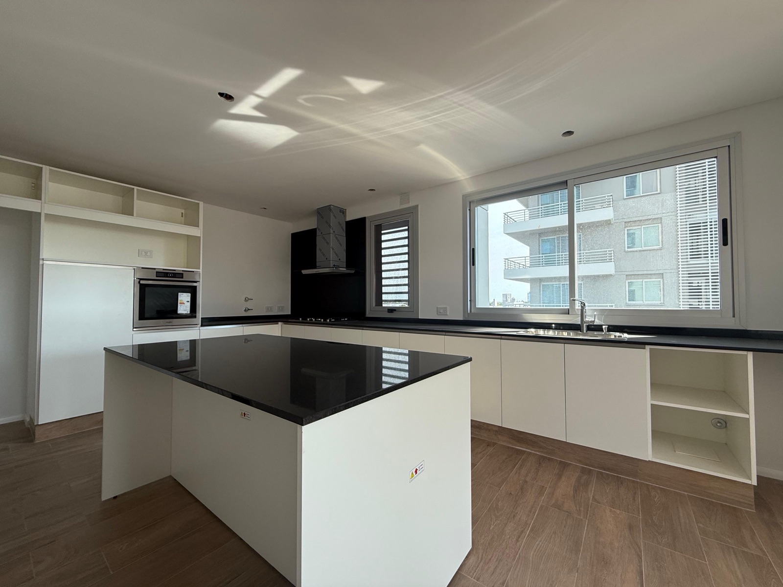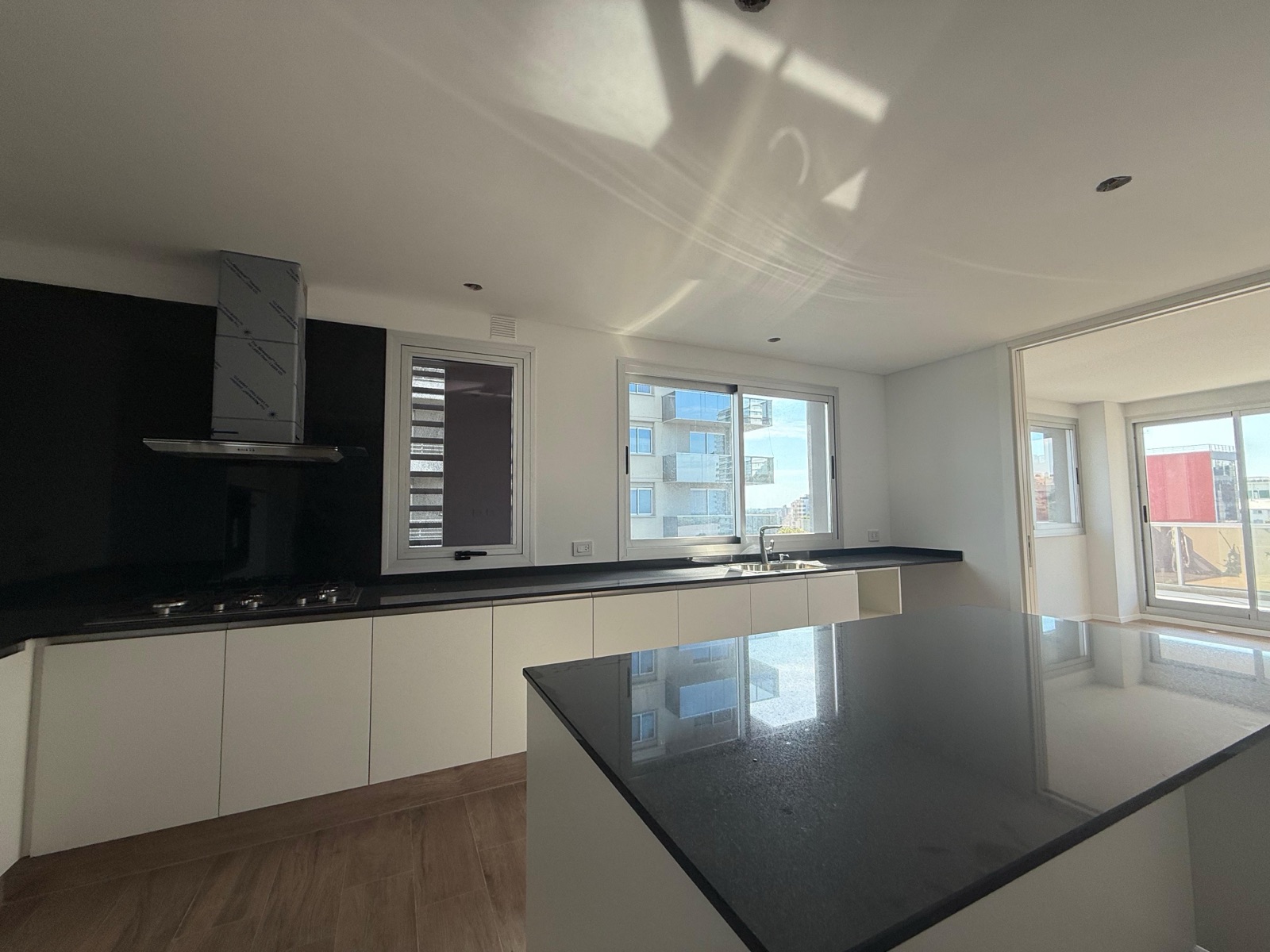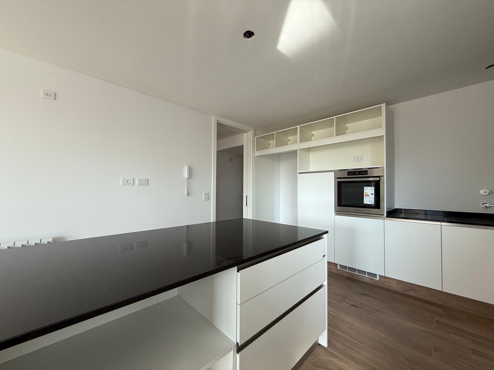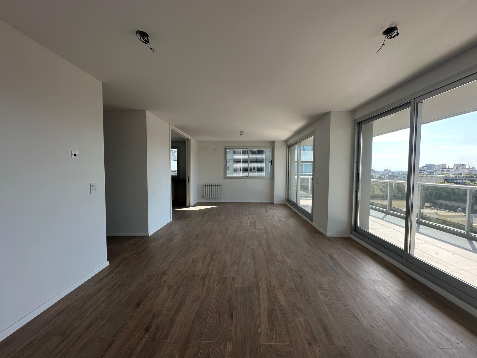 Al ingresar, nos encontramos con un espacioso living-comedor con salida a un balcón corrido al frente, que cuenta con parrillero y una destacada vista al río. La cocina, de generosas dimensiones, se encuentra separada mediante grandes puertas corredizas que permiten integrarla al sector social. Está completamente equipada, con anafe a gas, horno eléctrico y una amplia isla central.