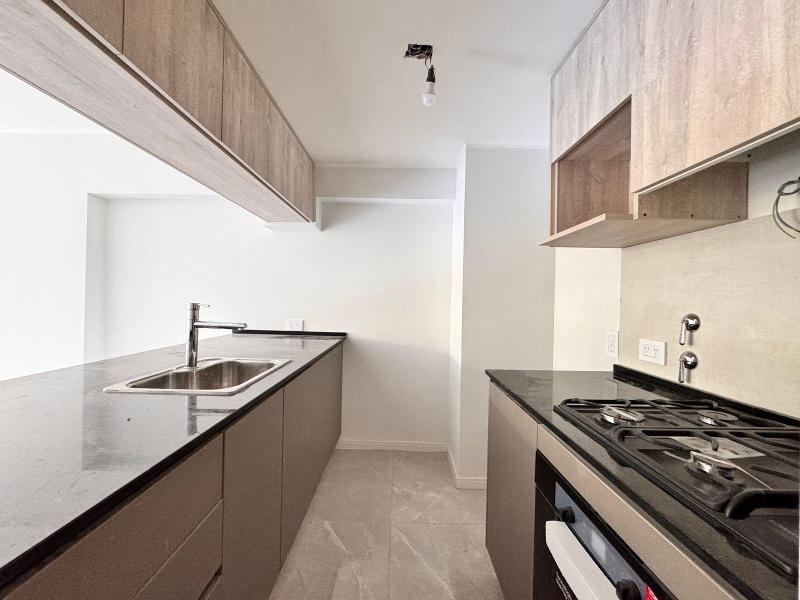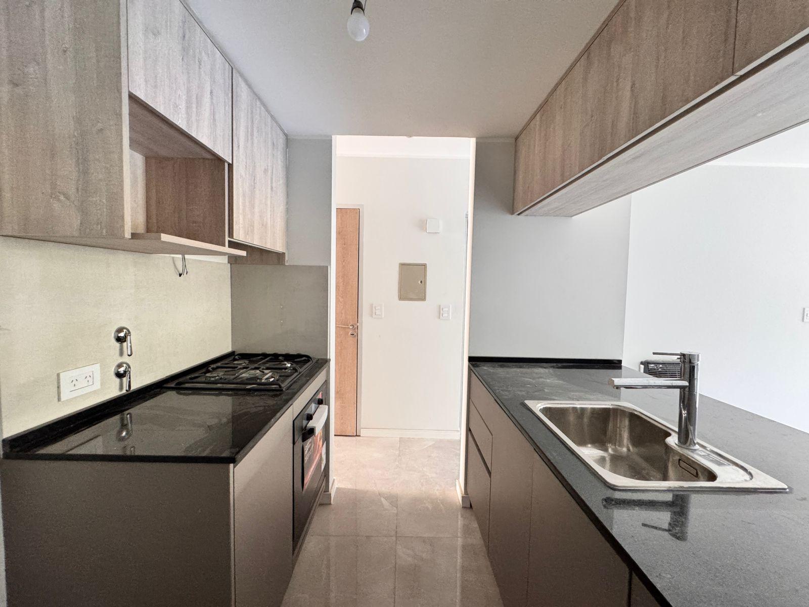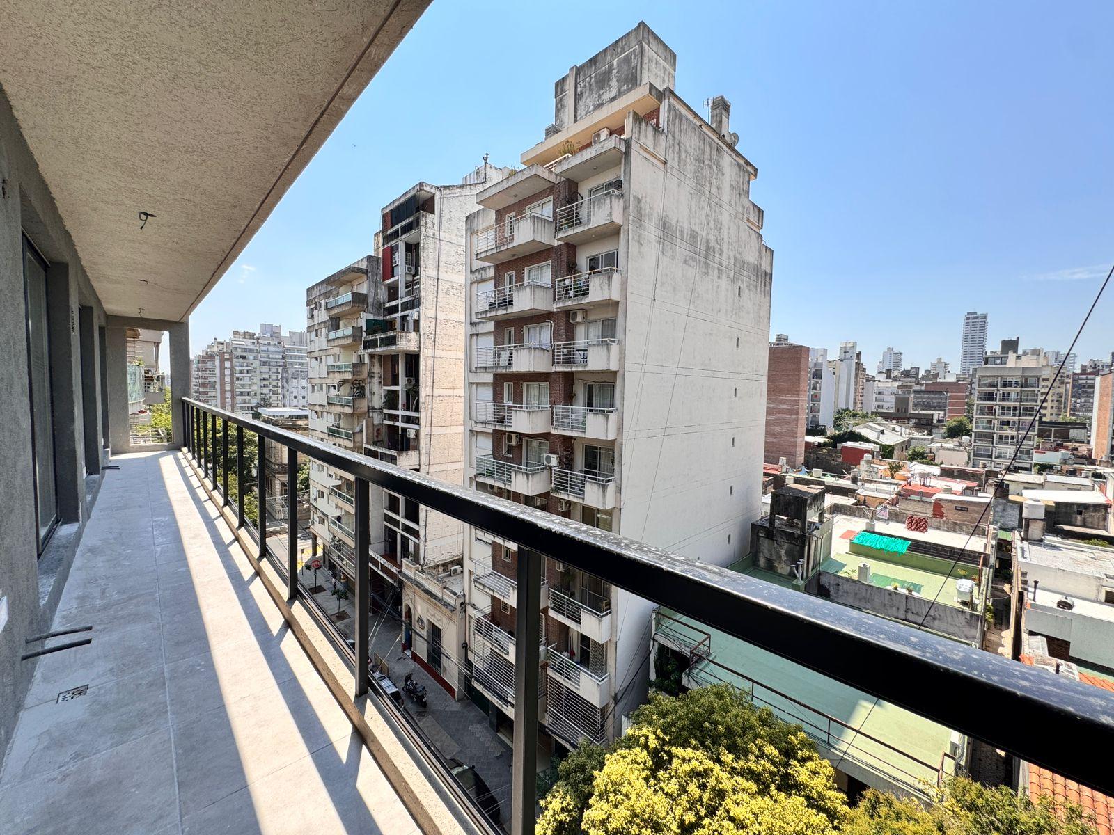 Descripción: Departamento de dos dormitorios con ventilación cruzada en un 6to piso y balcón al norte. Living comedor de generosas dimensiones, con salida al balcón, con cocina integrada, e imponente mesada que los divide. A gas, con horno y anafe. Mucho lugar de guardado. Baño de recepción con ducha + baño completo en el íntimo. Dos dormitorios al contrafrente, ambos con placares empotrados.