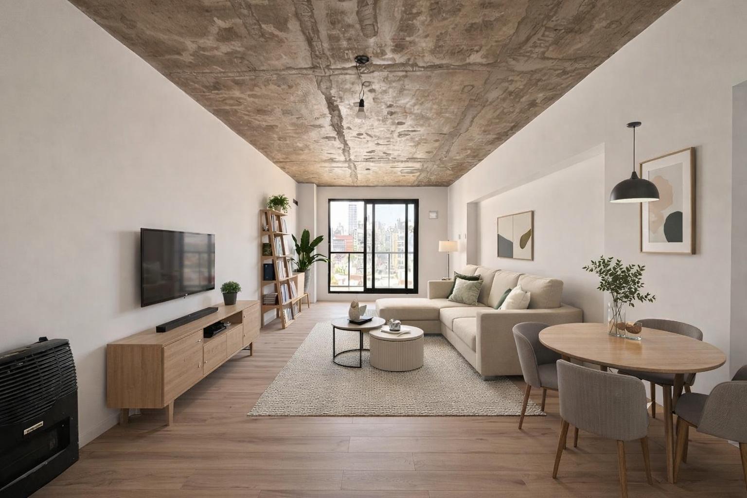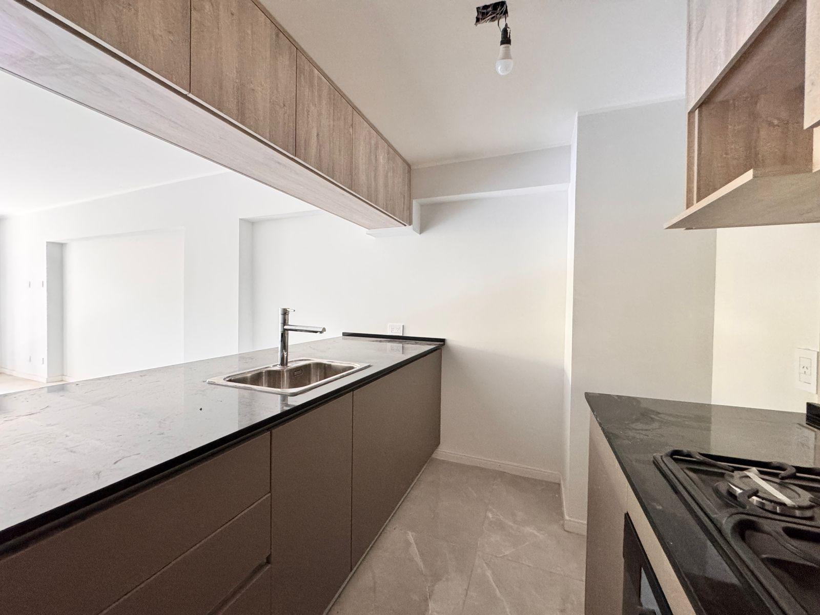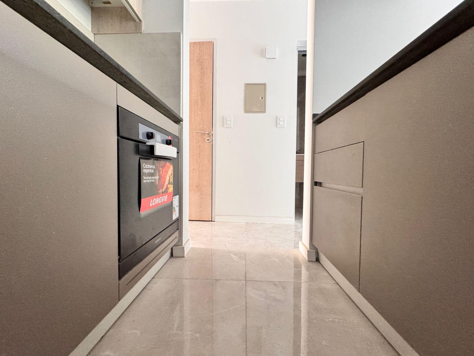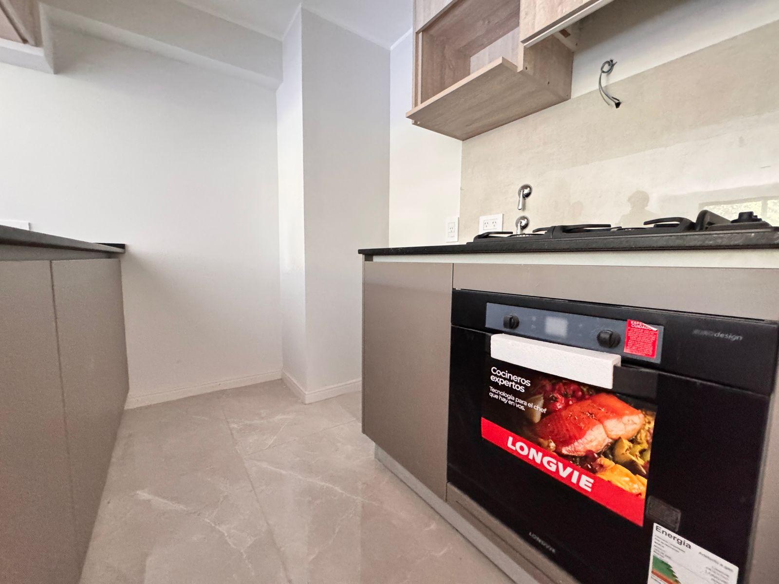 Descripción: Departamento de dos dormitorios con ventilación cruzada en un 6to piso y balcón al norte. Living comedor de generosas dimensiones, con salida al balcón, con cocina integrada, e imponente mesada que los divide. A gas, con horno y anafe. Mucho lugar de guardado. Baño de recepción con ducha + baño completo en el íntimo. Dos dormitorios al contrafrente, ambos con placares empotrados.