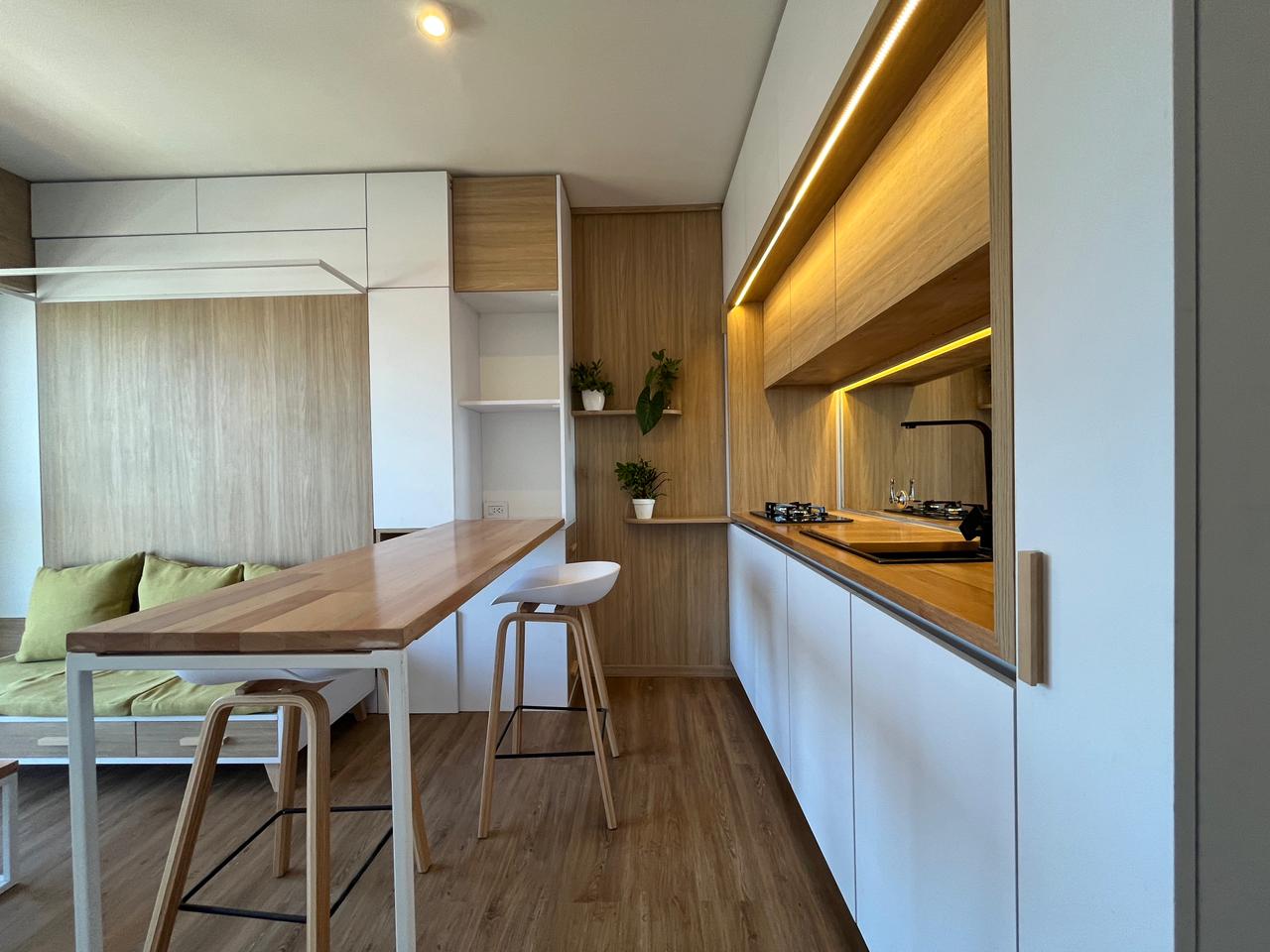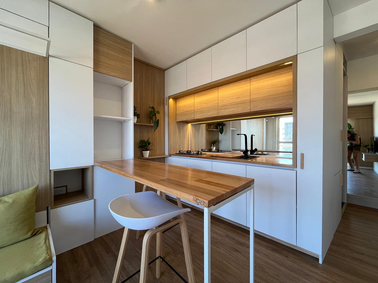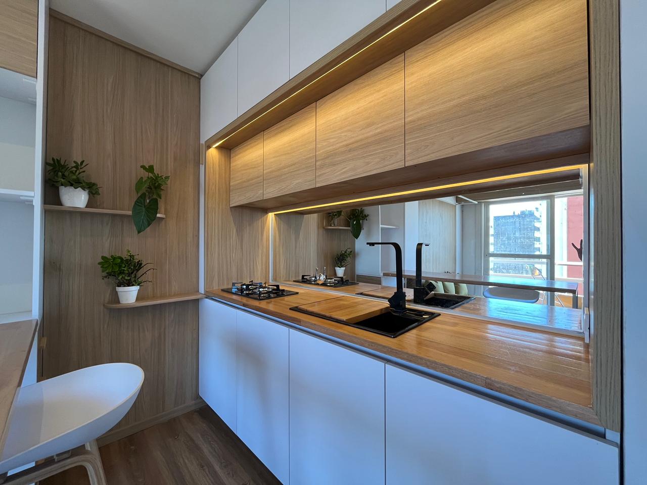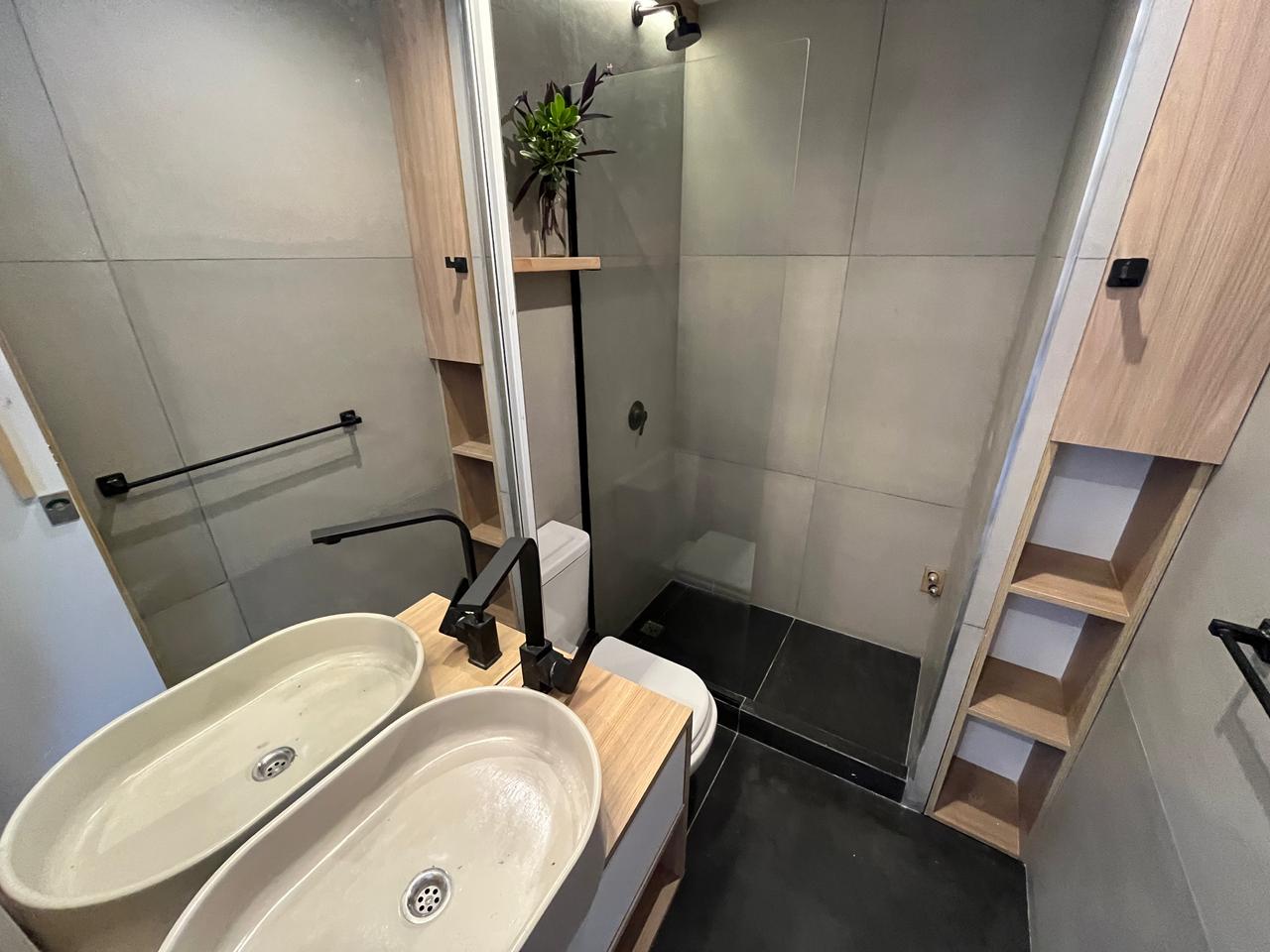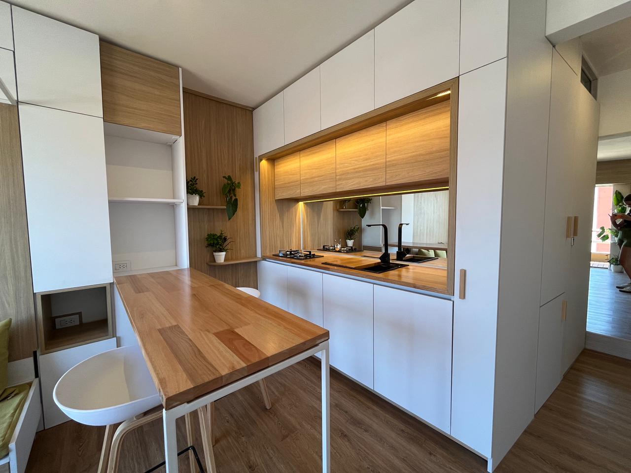 Descripción: Ingresamos al departamento donde nos encontrarnos con un espacio luminoso, totalmente renovado. El departamento tiene cambiado los caños de gua fría, caliente y desagues, también la instalación eléctrica y el gas. Se ha aprovechado cada espacio para tener lugar de guardado dándole una excelente funcionalidad. Cuenta con una cocina de anafe empotrado, miroondas dentro de los muebles y heladera tipo minibar. Tanto la mesa como la cama son rebatibles para poder provechar el espacio cuando no se usan. En el balcón tiene un deck y vista al frente despejada. El baño tiene un aspecto moderno con mampara de doble acristalamiento. Porcelanatos a tono y vañitory con bacha y canilla monocomando. También cuenta con un duchdor al lado del inodoro.