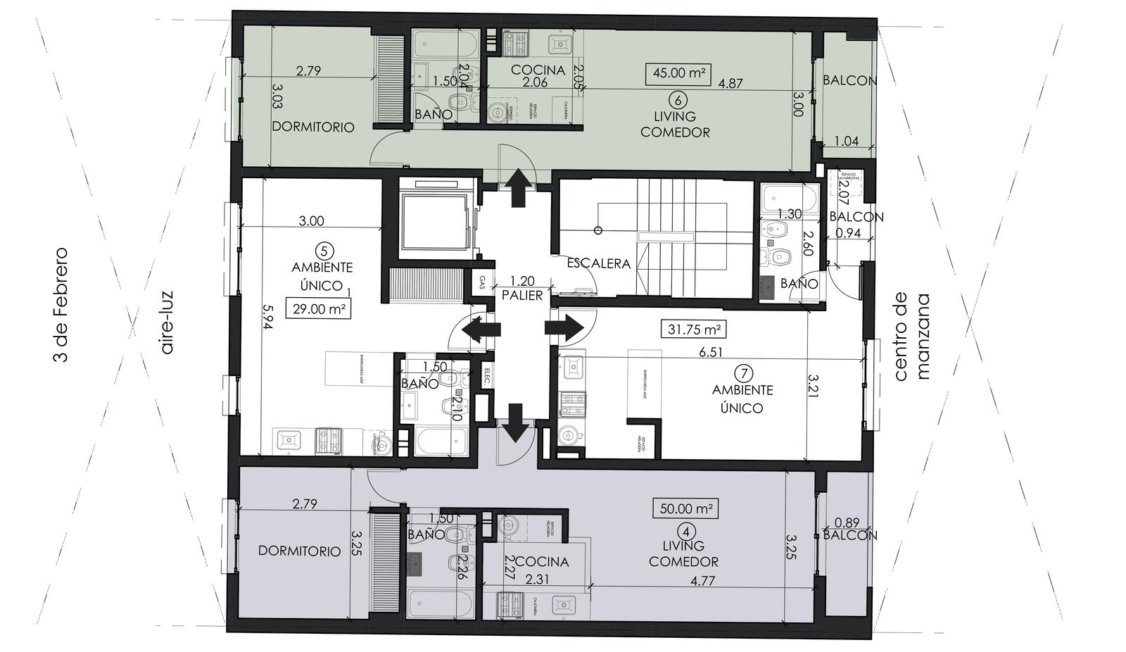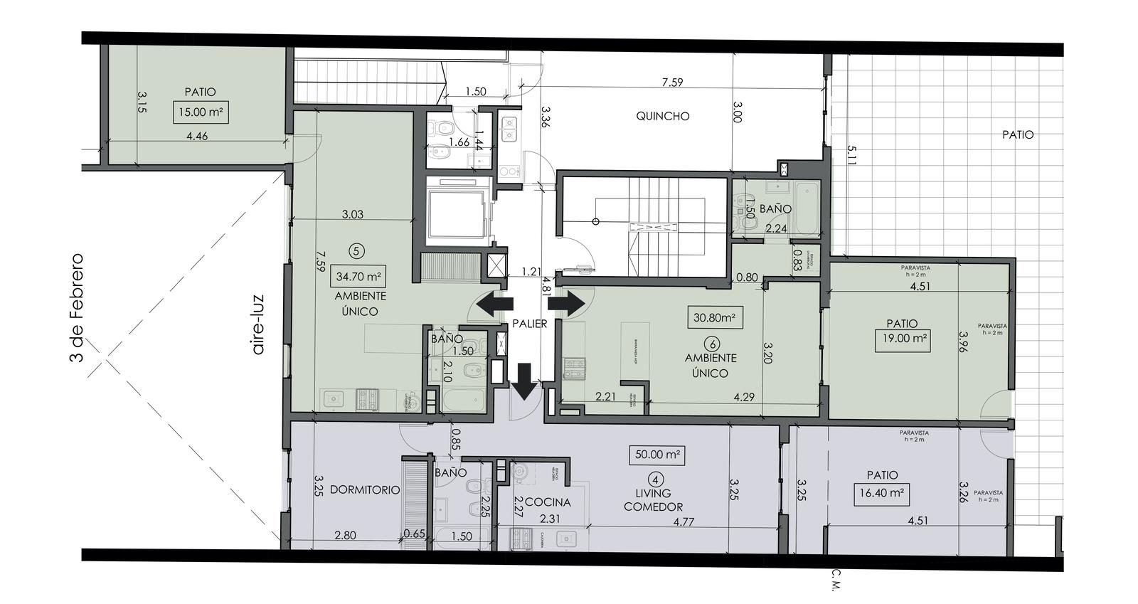 Piso 1 Dto – 37,1 m2 I Monoambiente contrafrente 30,8 m2 + Patio 19 m2 I 58.000 USD