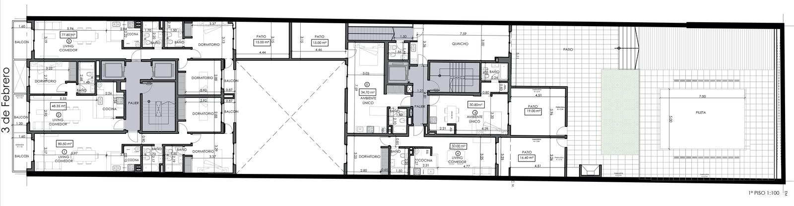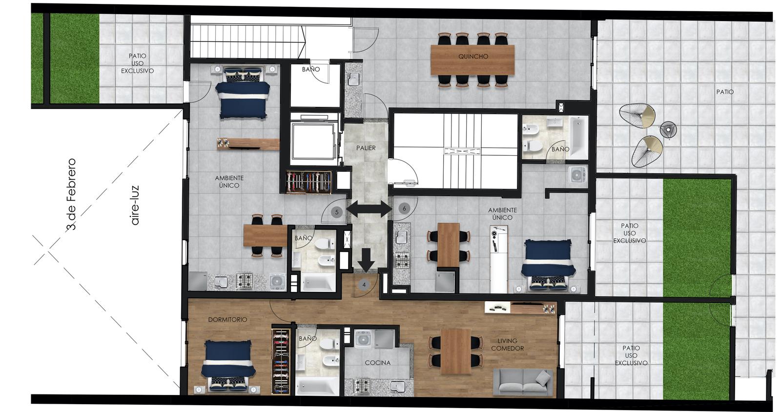 Piso 1 Dto – 39,7 m2 I Monoambiente al Aire Luz 34,7 m2 + Patio 15 m2 I 62.000 USD